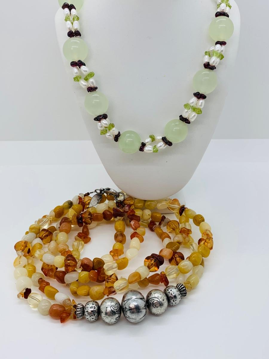 LOT 182J:  Cold Water Creek Amber Beaded Necklace & Green & Black Beaded Necklace