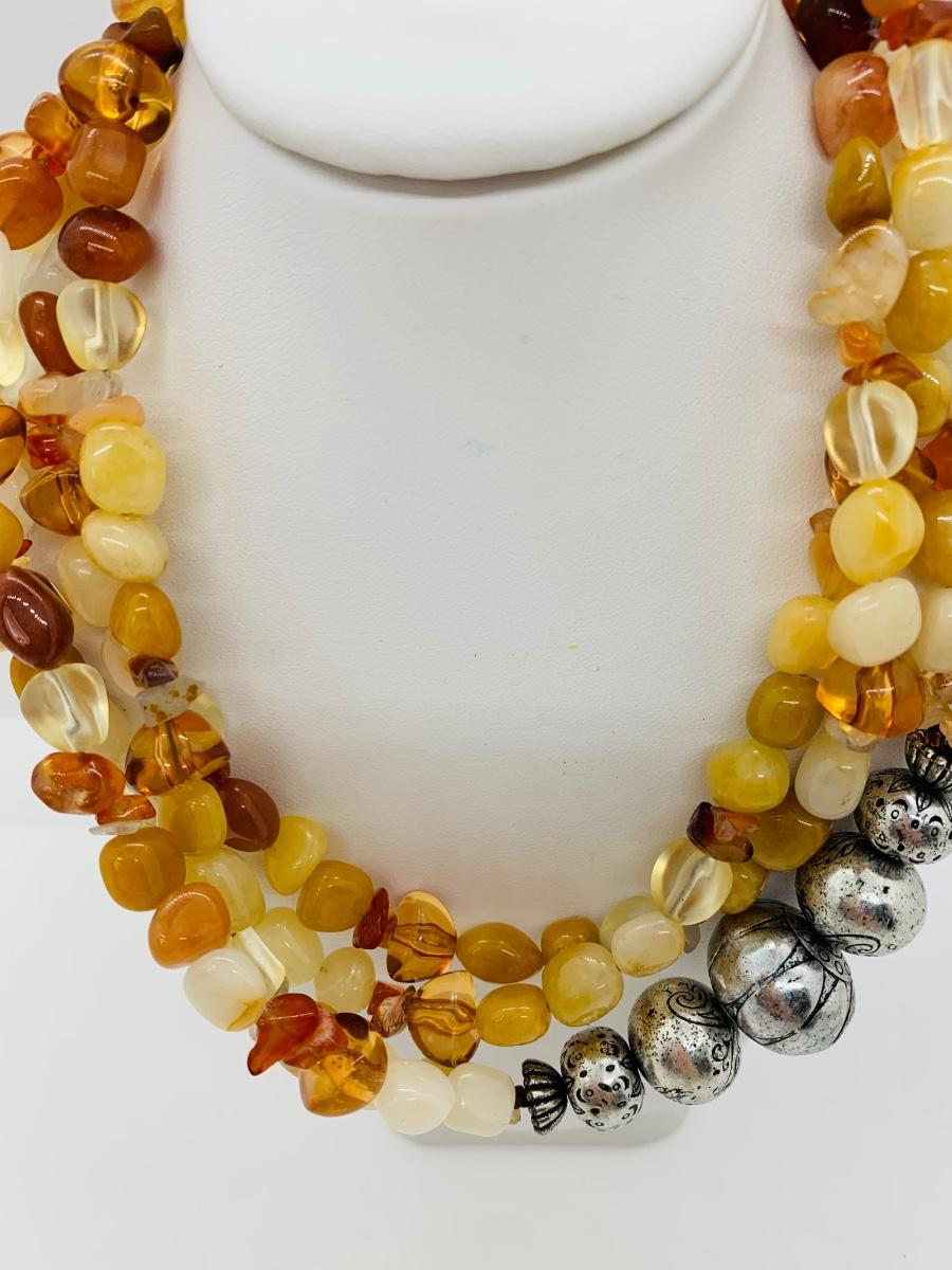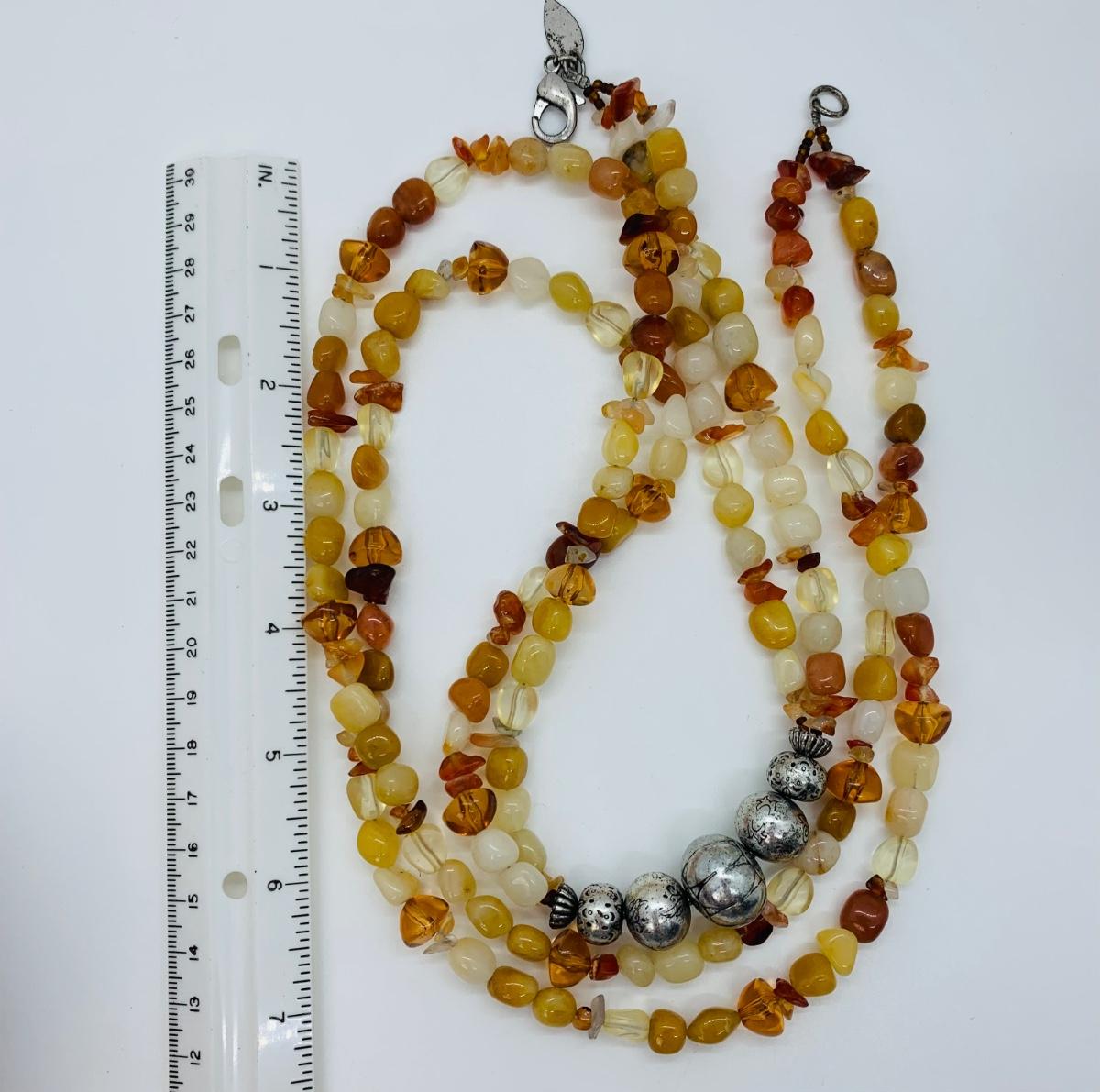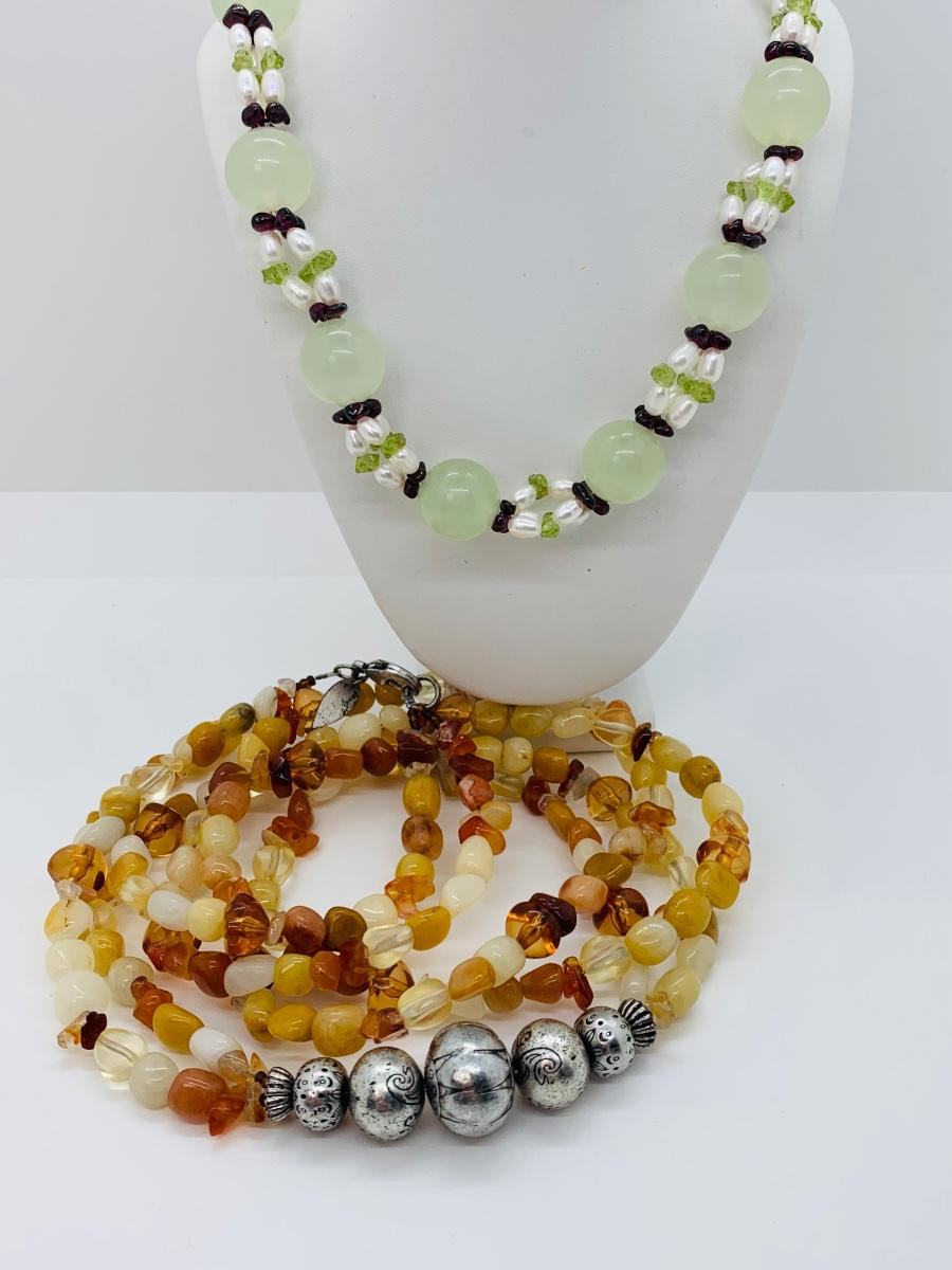 LOT 182J: Cold Water Creek Amber Beaded Necklace & Green & Black Beaded Necklace