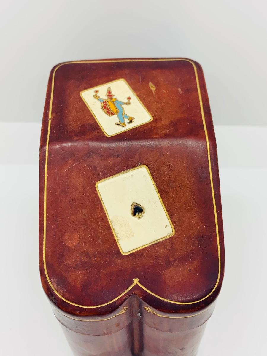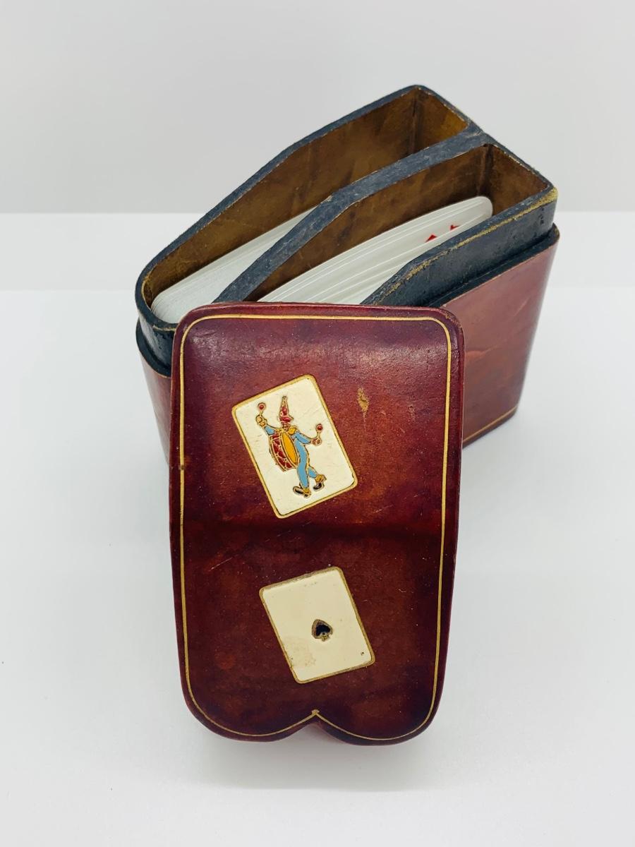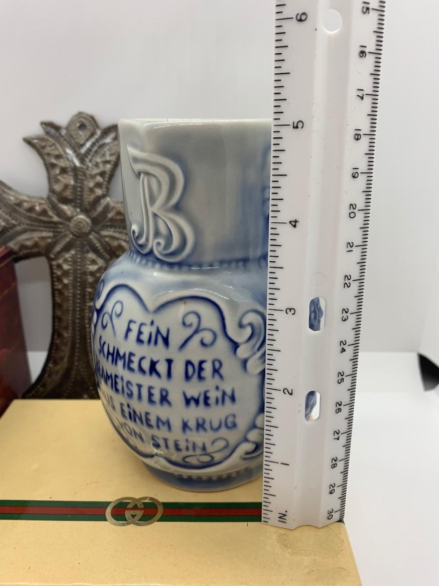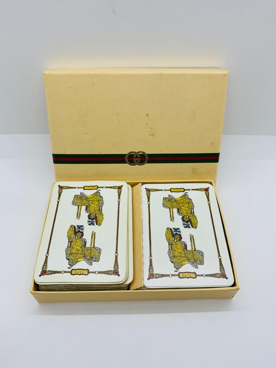 LOT 175J: Gucci Playing Cards, Leather Playing Card Case w/Cards W.Germany Salt Glaze Pitcher & Metal Cross