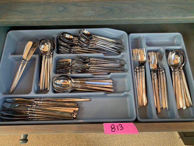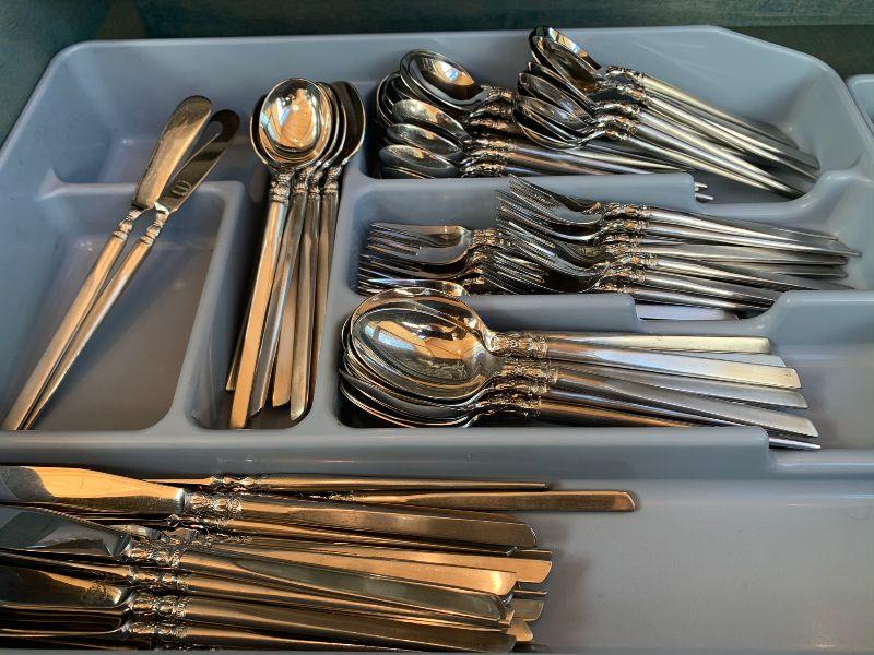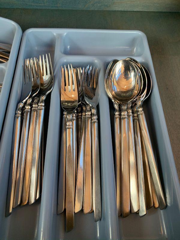 Ever brite Premier 18-8 Silverware Japan Stainless 24 knives, 24 tablespoons, 49 teaspoons, 2 butter knives, 21 dinner forks, 22 salad forks, 142 pieces total