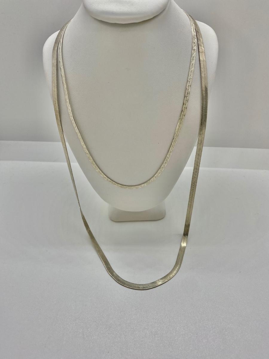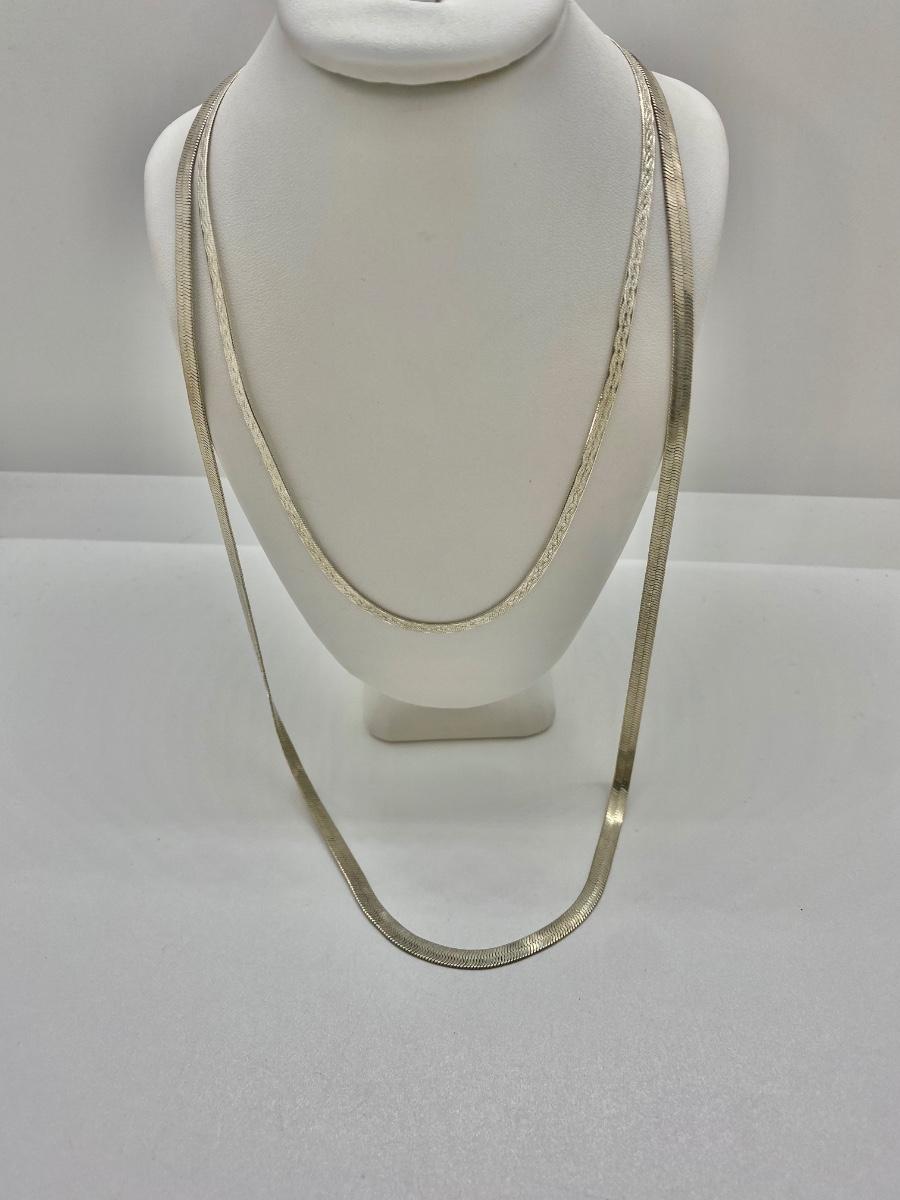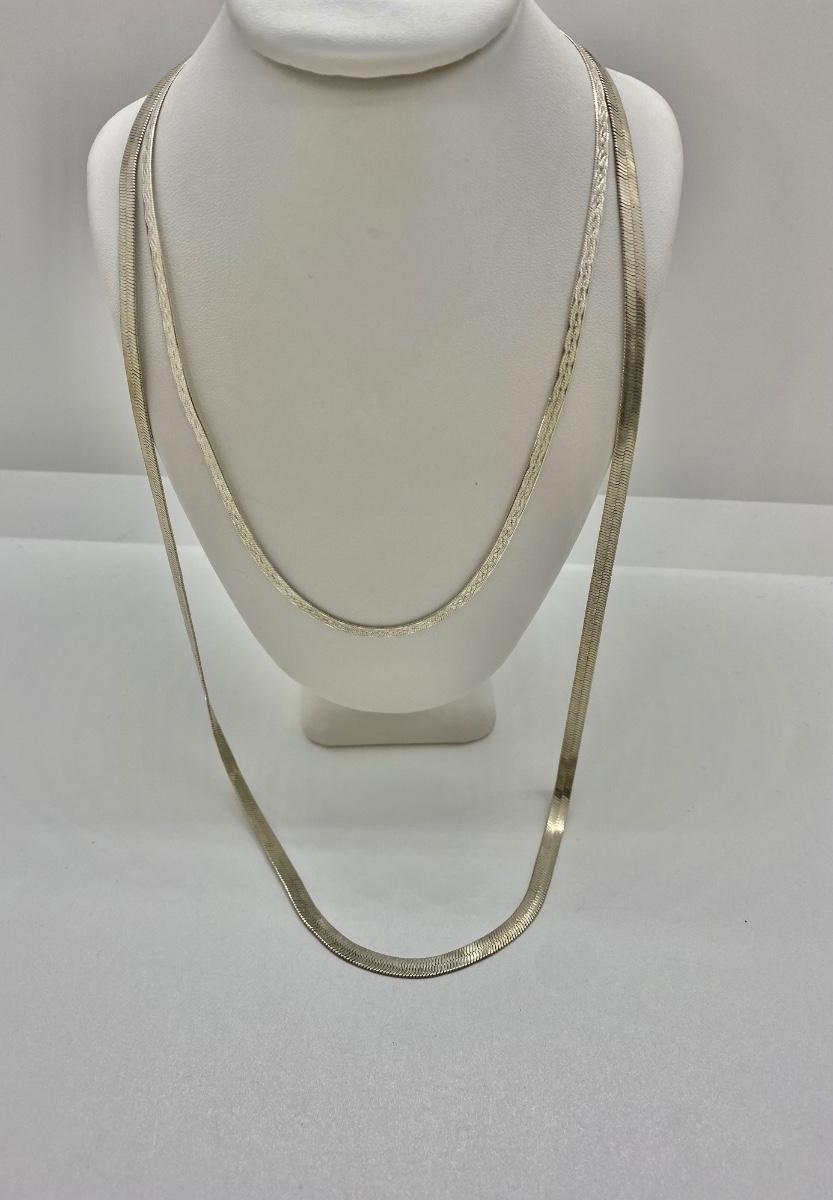 LOT 27C: 16” Silver Italian Necklace & 24” Herringbone Necklace