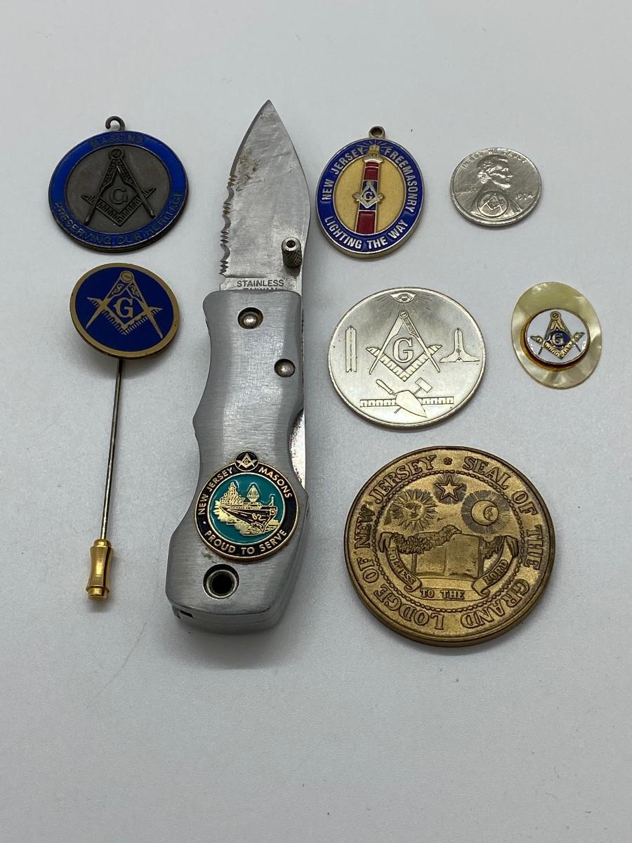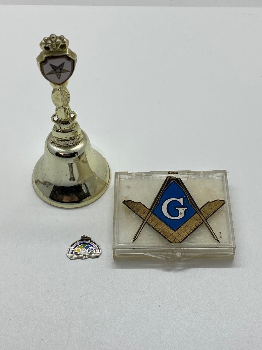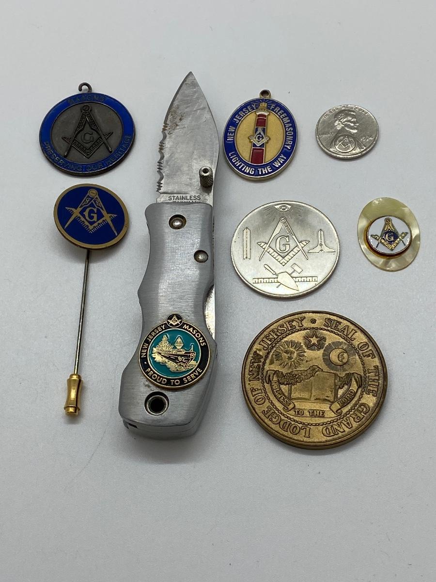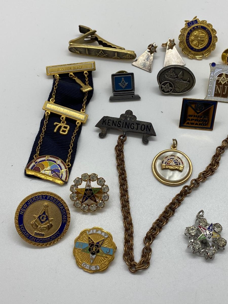 LOT 29C: Large Masonic Collection of Pins, Paperweight, Tie Tacs  and More