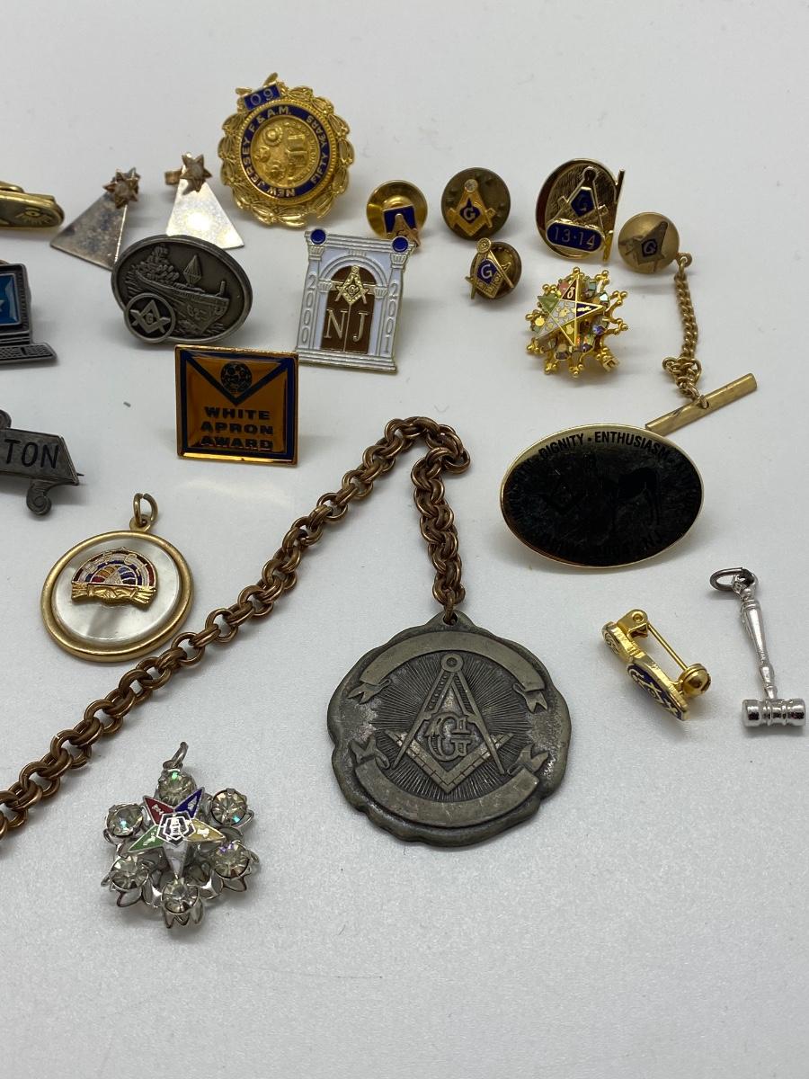 LOT 29C: Large Masonic Collection of Pins, Paperweight, Tie Tacs and More