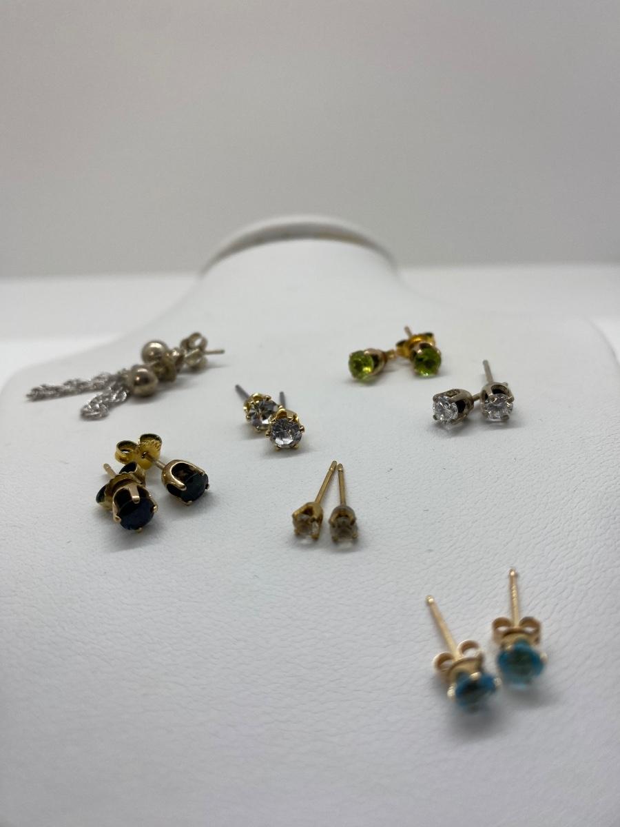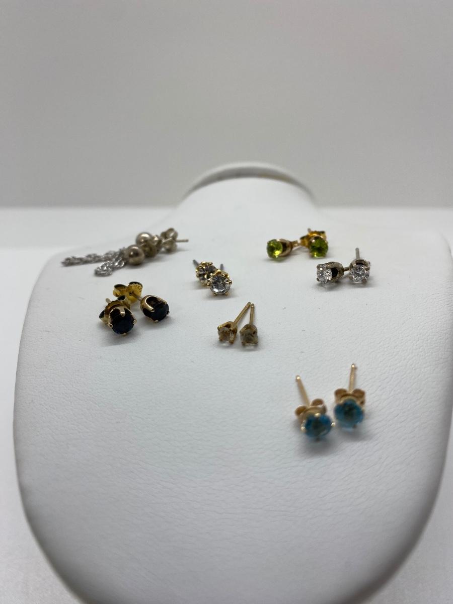 LOT 35C: 10K Blue Topaz Posts, Sterling Silver Ball &Chain Earrings & More