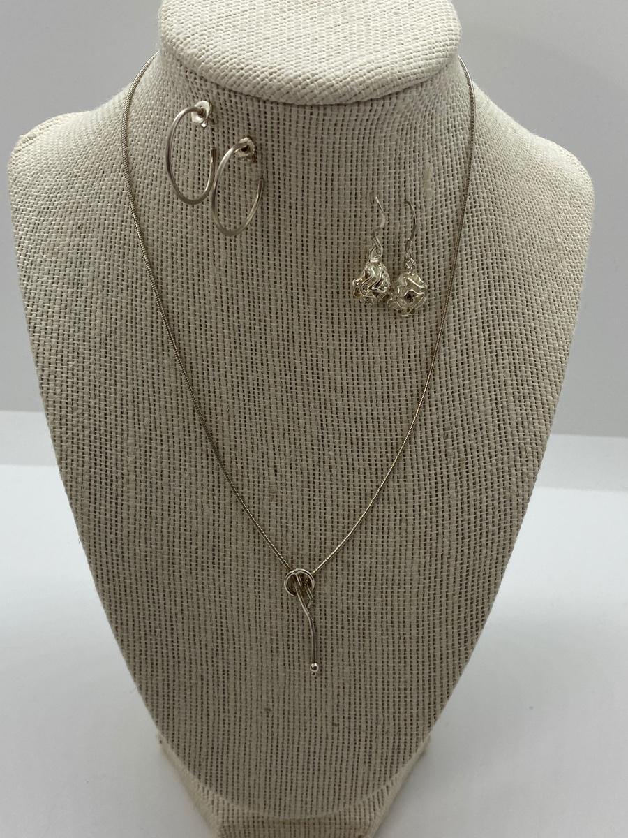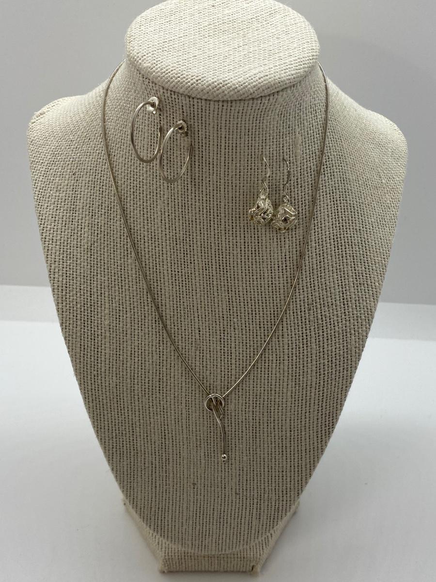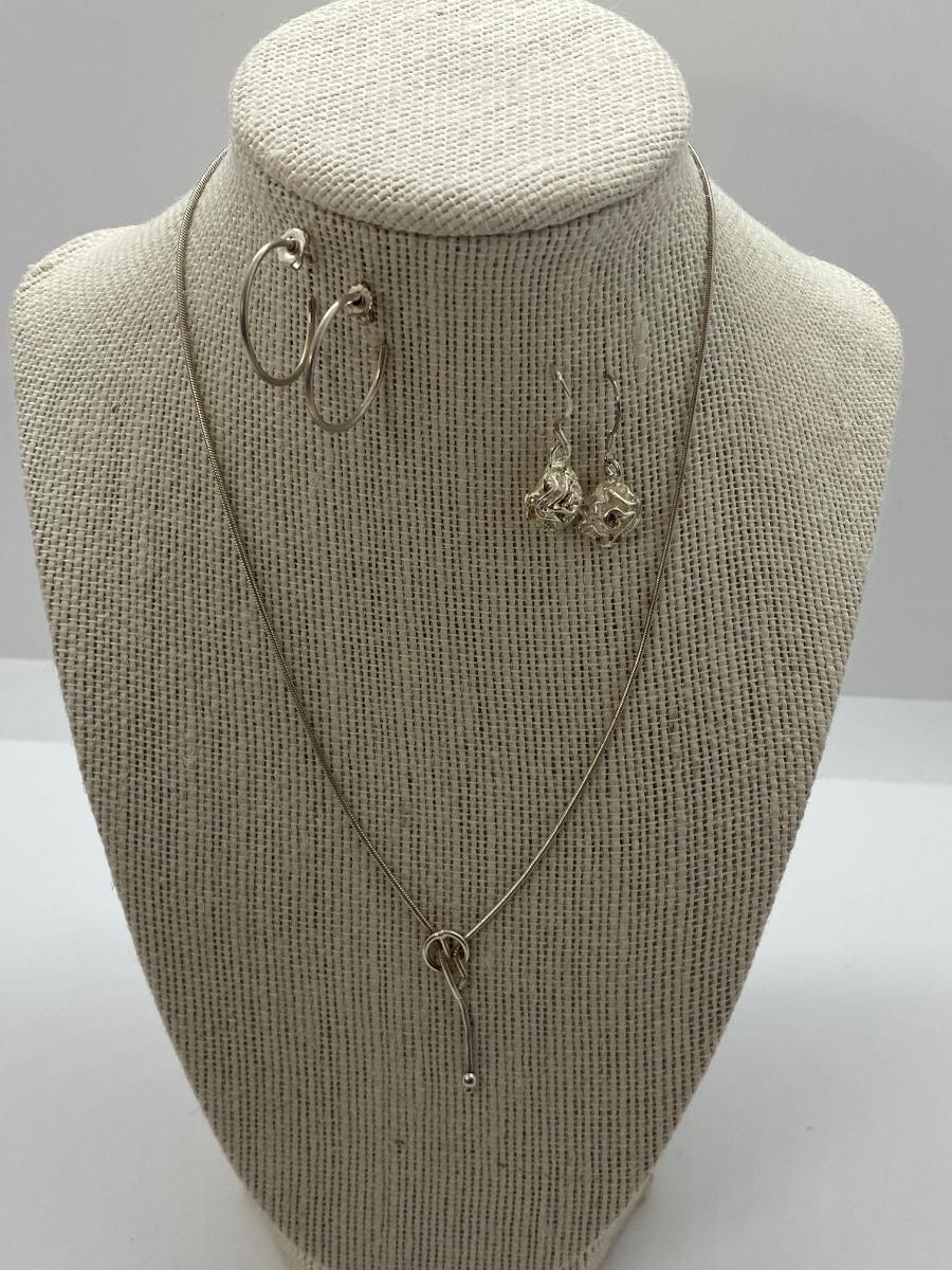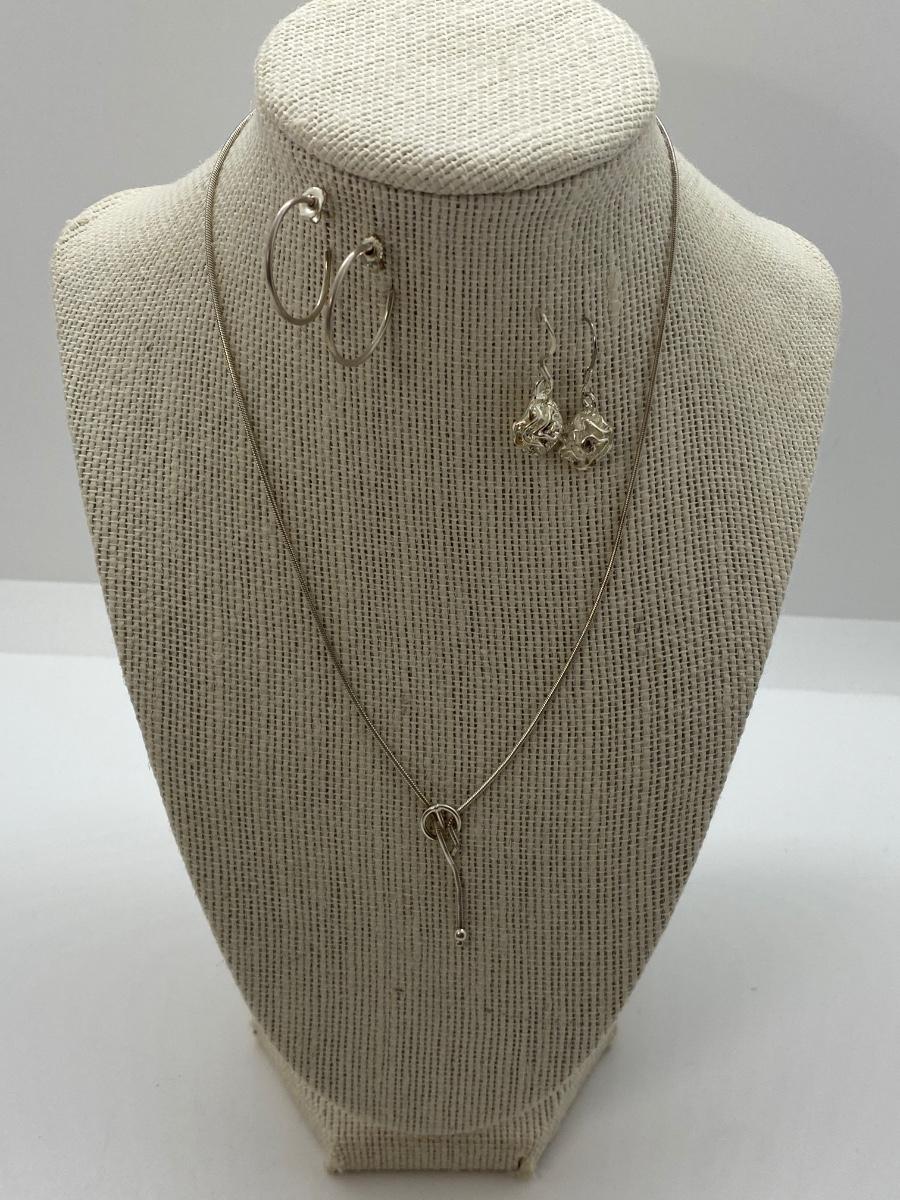LOT 36: 16” Italian Silver Chain & Two Pair of Earrings