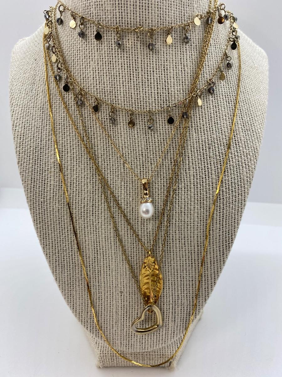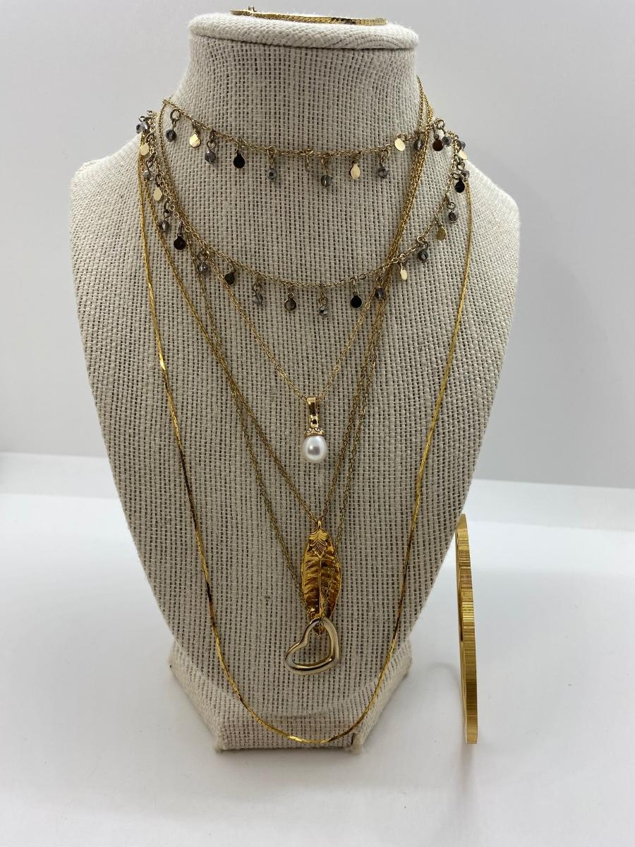 LOT 38: Five Gold Tone Necklaces & Two Gold Tone Bracelets