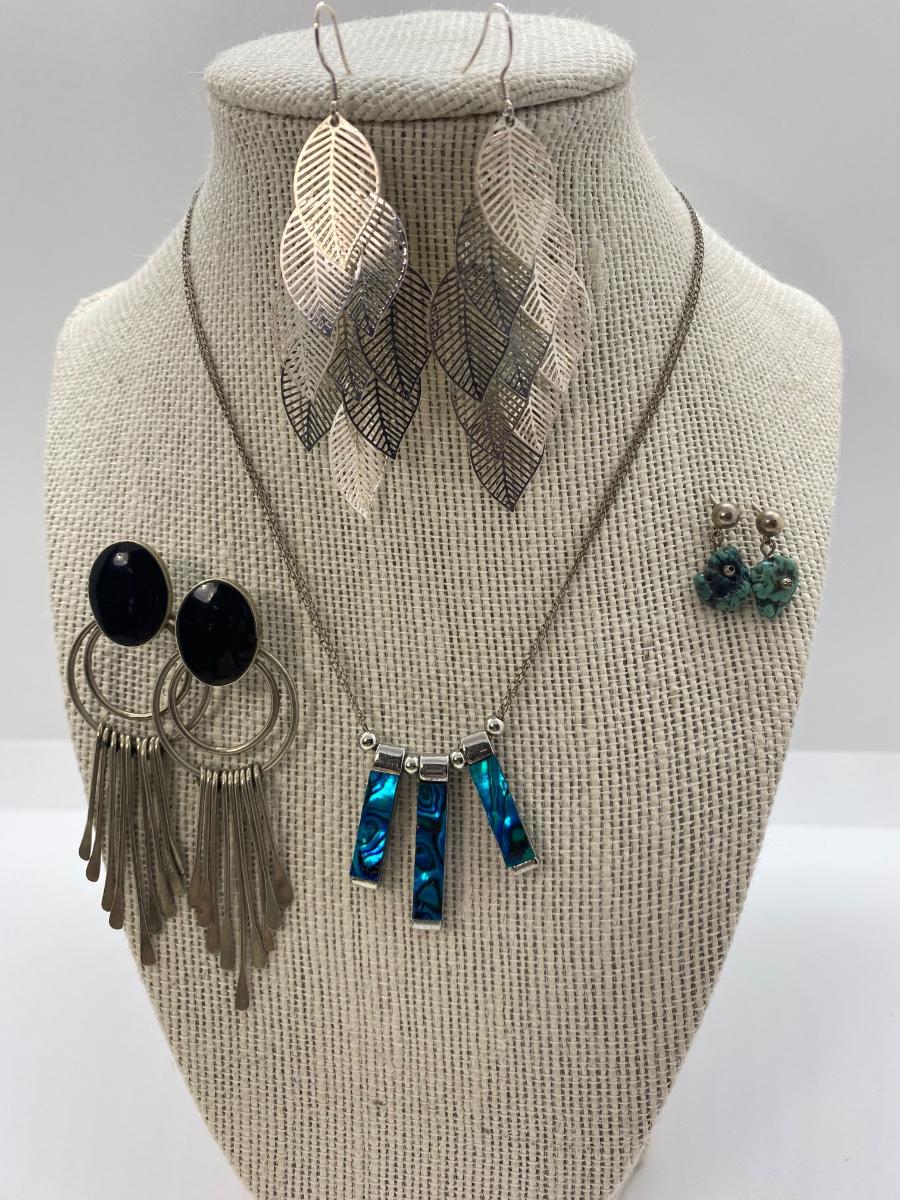 LOT 39: 15” Sterling Necklace 3 Pair of Earrings