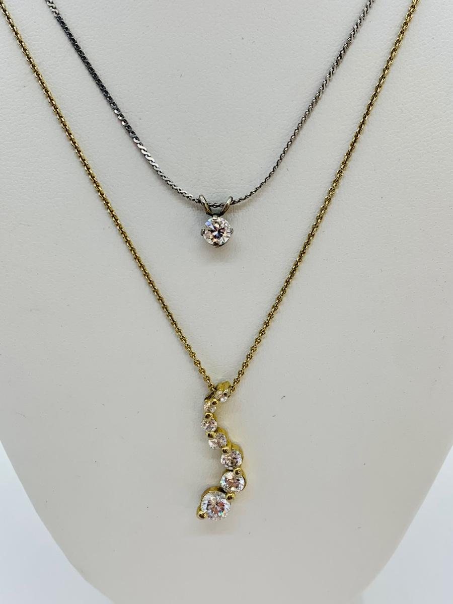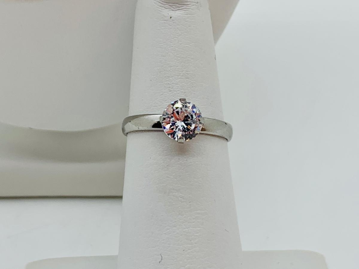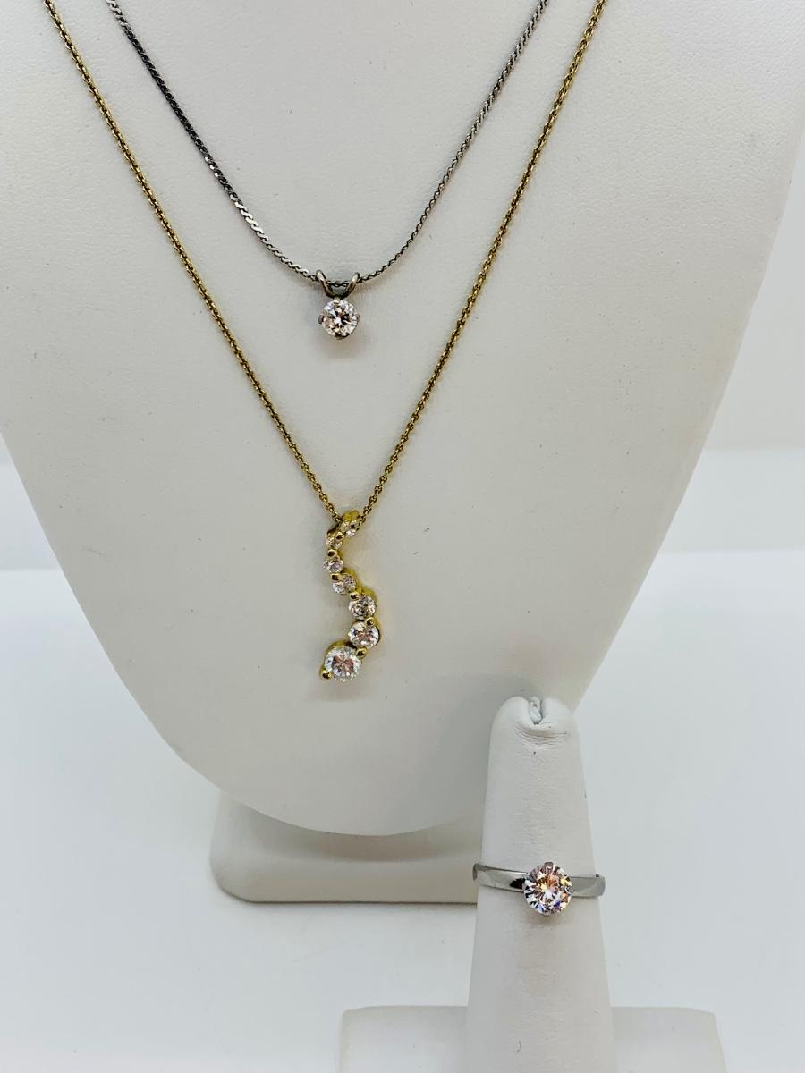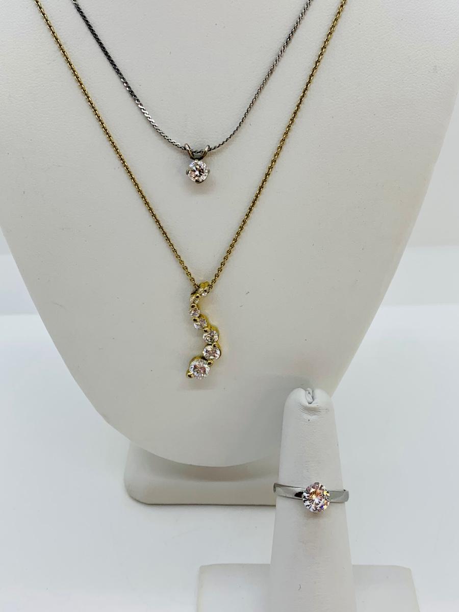 LOT 41R: Solitaire CZ w/Sterling Silver Chain, Goldtone CZ Necklace & Solitaire CZ Ring