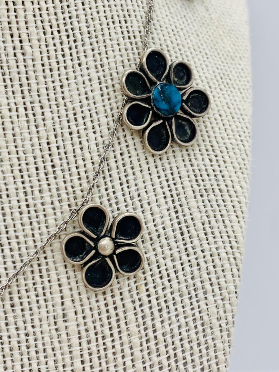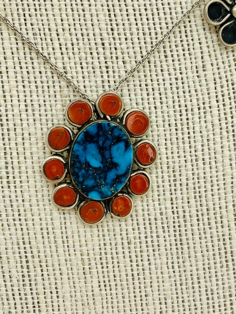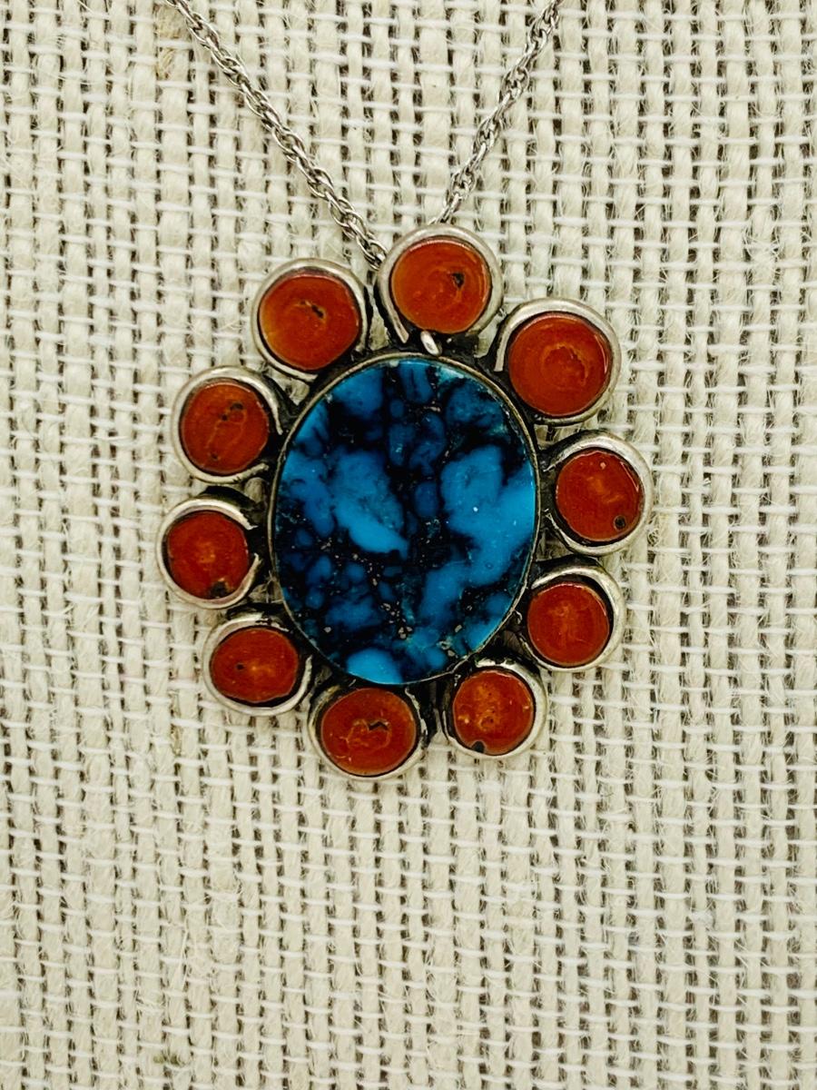 LOT 51R: Handcrafted 15" Sterling Silver Necklace w/Inlaid Turquoise & Coral, 25g TW