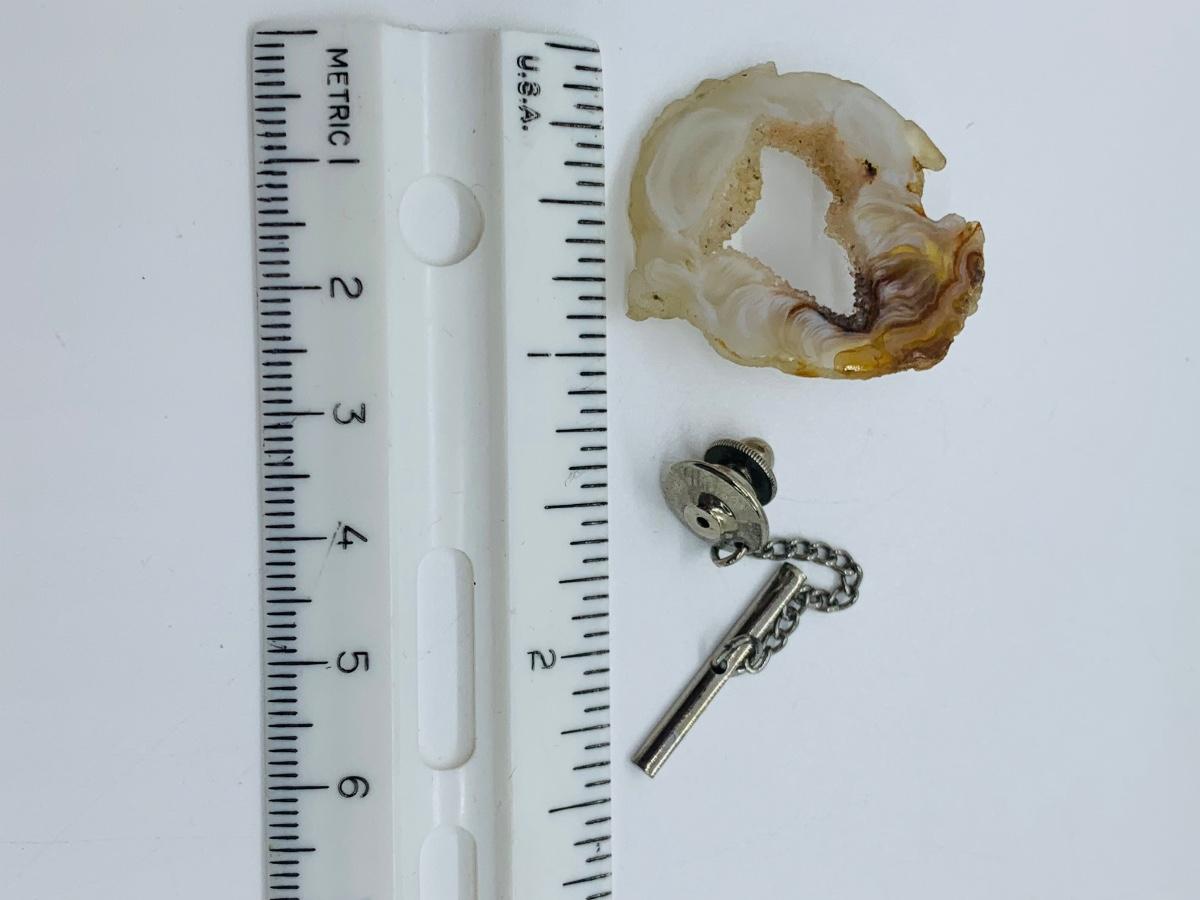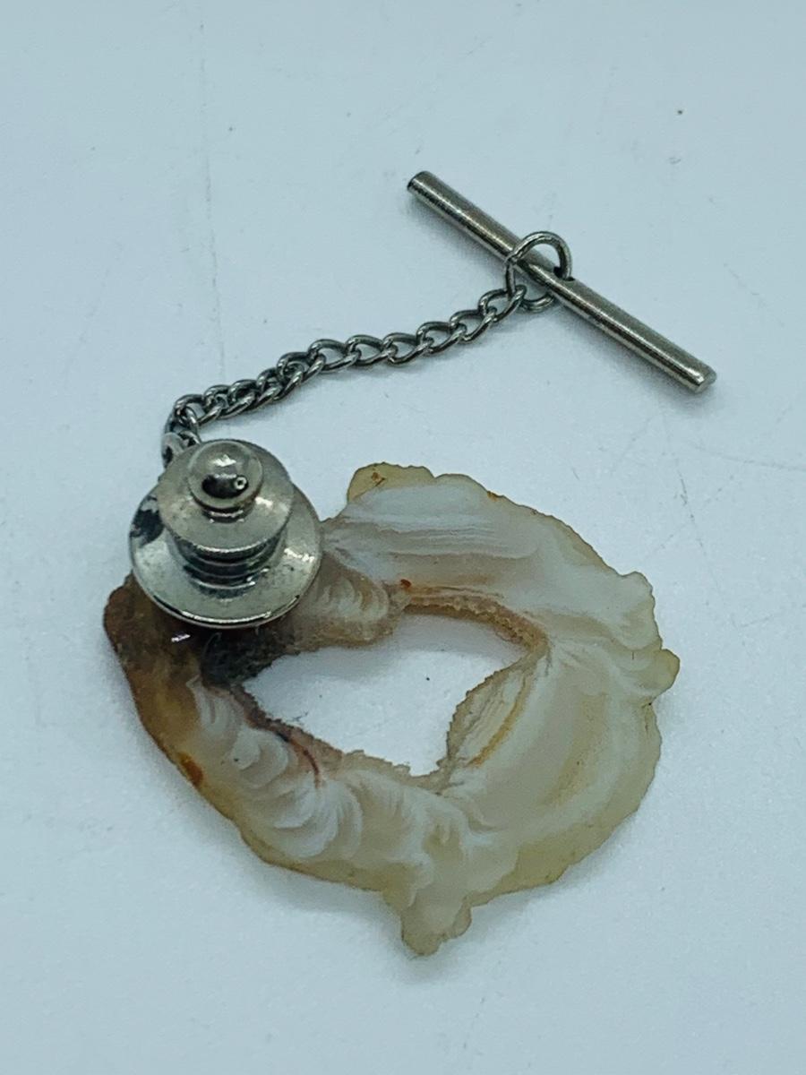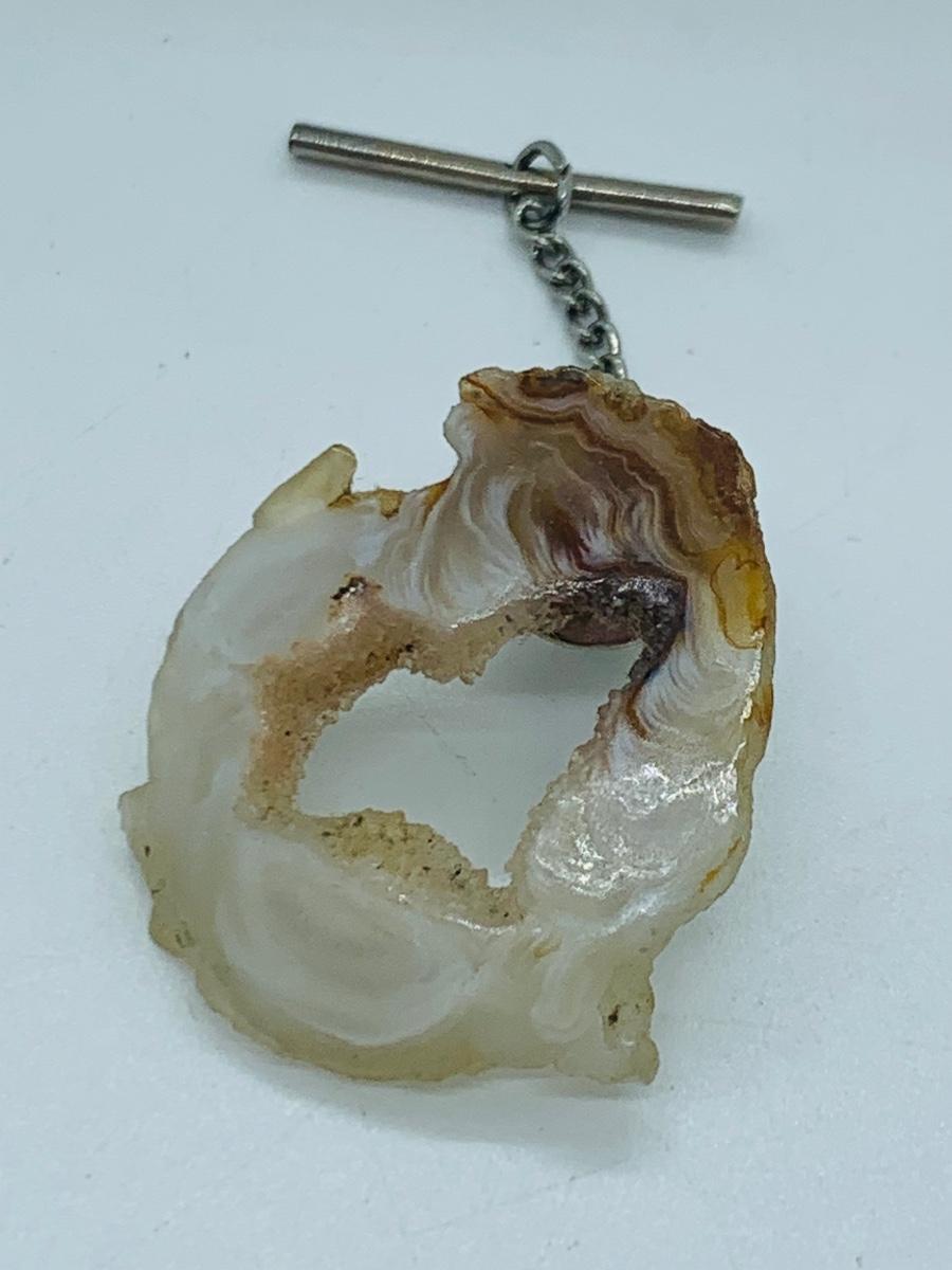 LOT 59R: Talon Pendant on 26" Sterling Chain &  Agate Slice Tie Tack