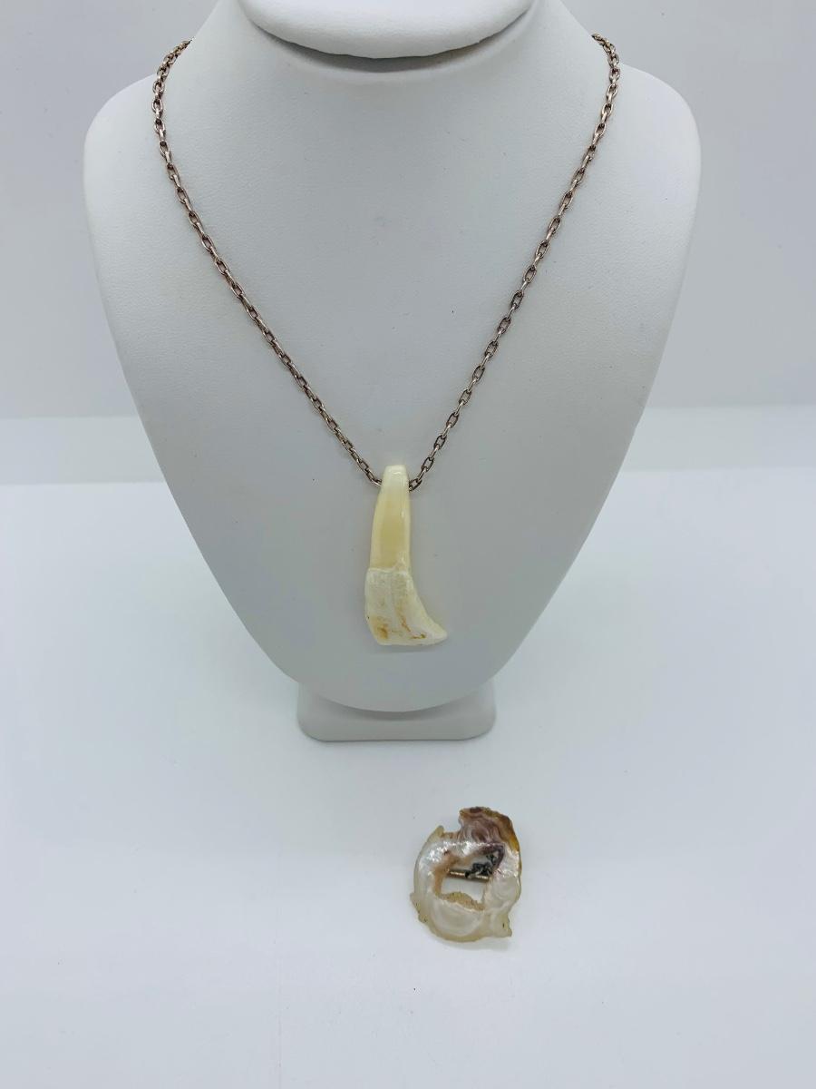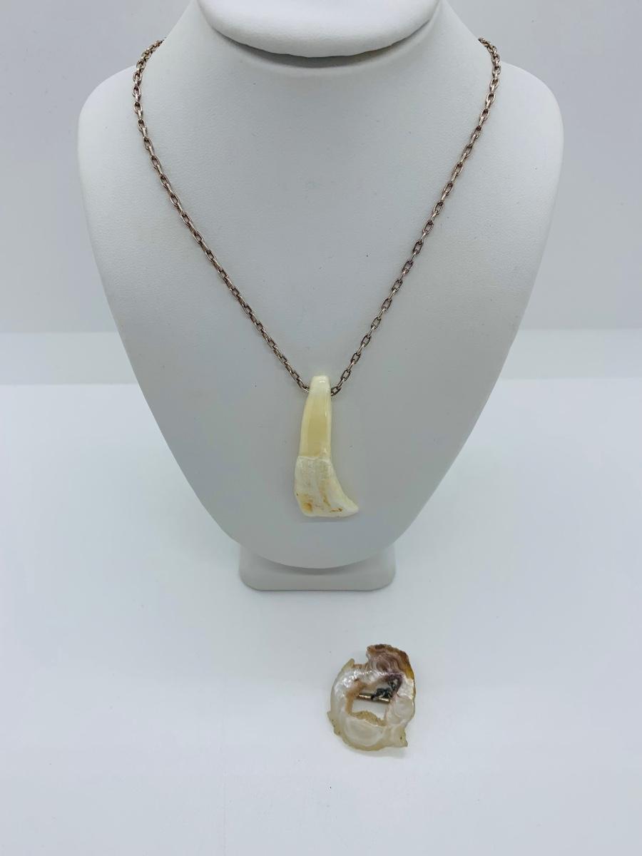 LOT 59R: Talon Pendant on 26" Sterling Chain & Agate Slice Tie Tack