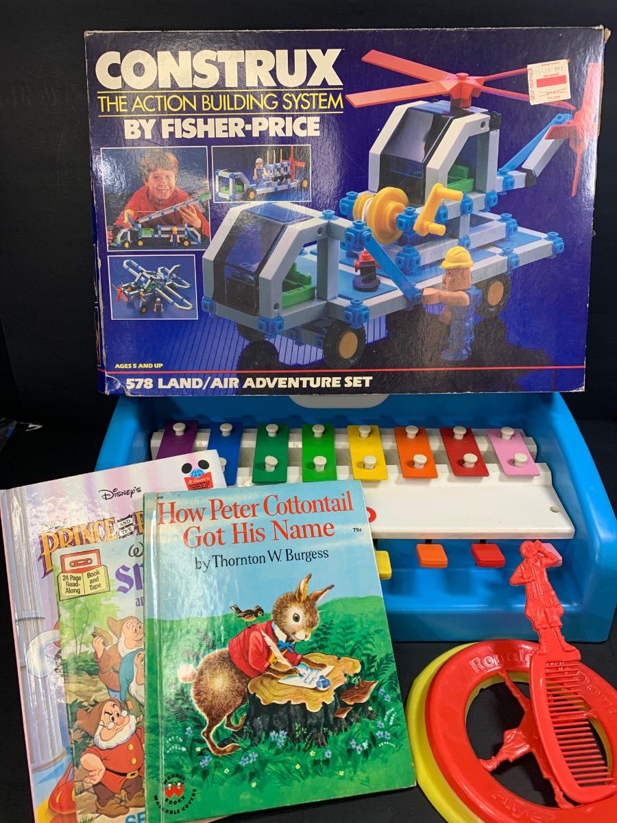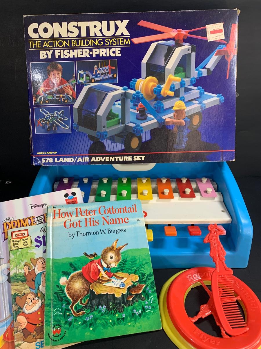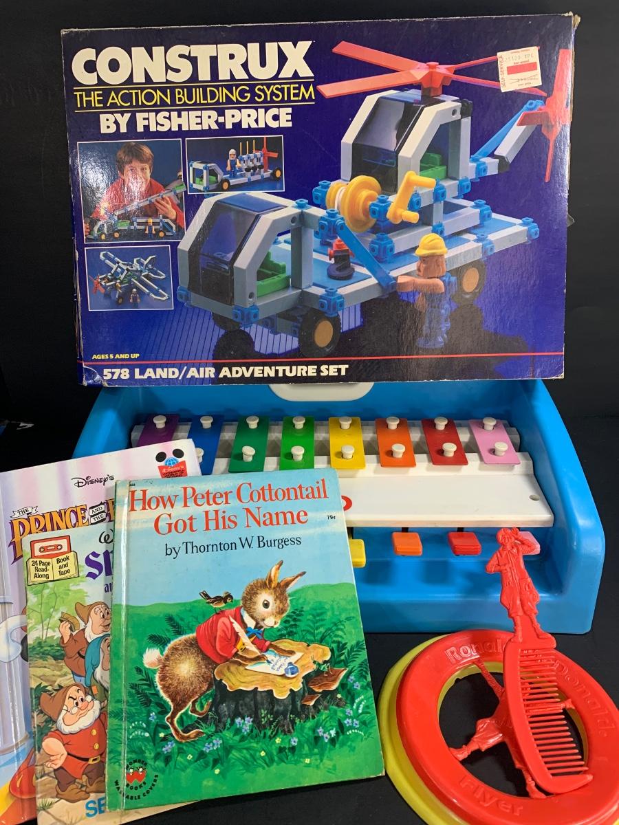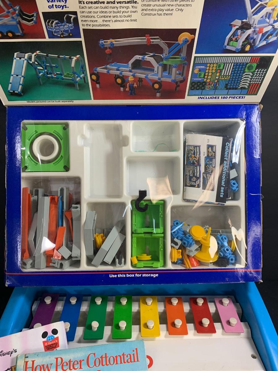 LOT 65R: Vintage 1985 Little Tikes Tap a Tune Piano Xylophone Blue Musical Toy, Fisher Price Vintage Construx & More