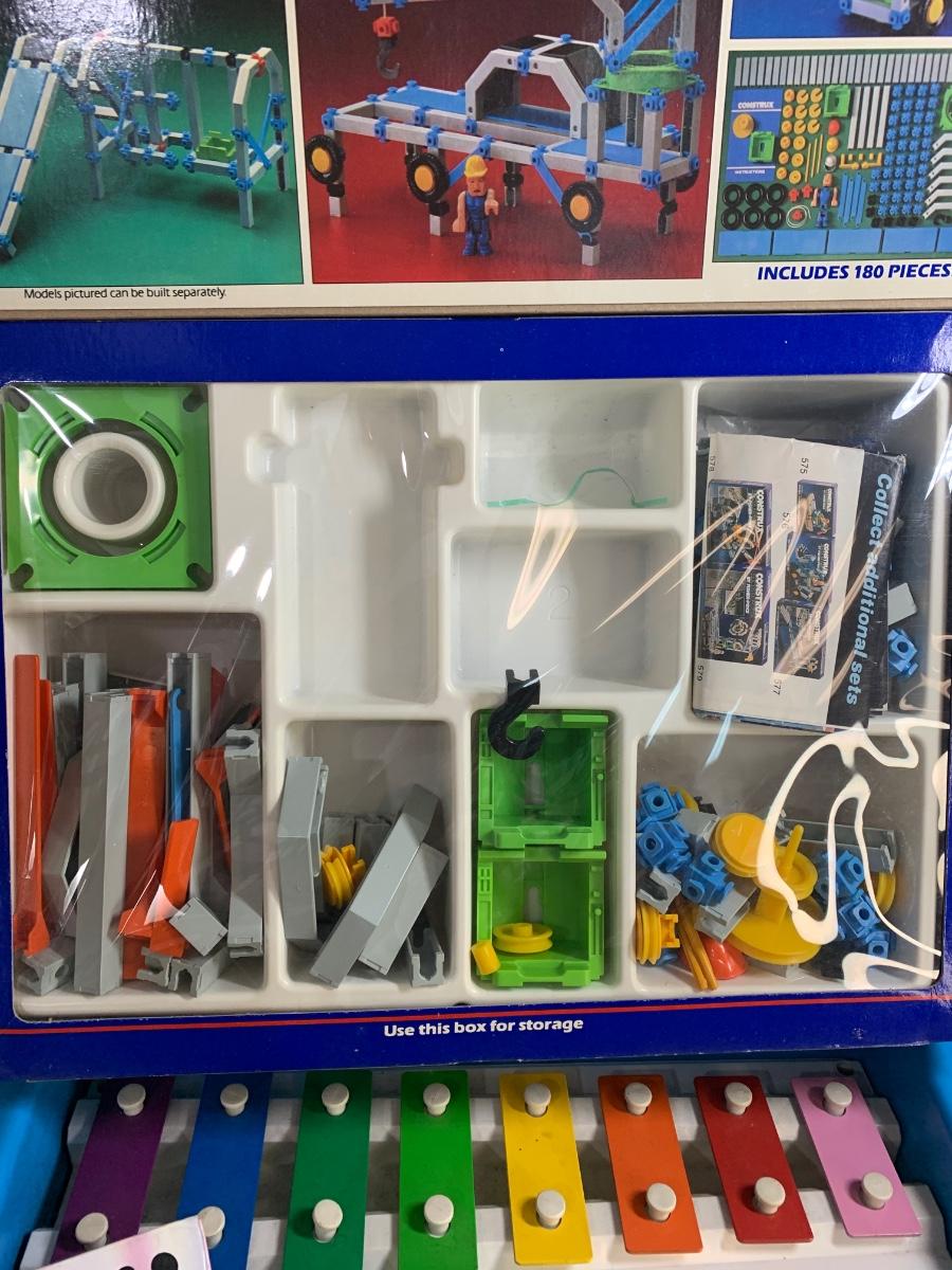 LOT 65R: Vintage 1985 Little Tikes Tap a Tune Piano Xylophone Blue Musical Toy, Fisher Price Vintage Construx  & More