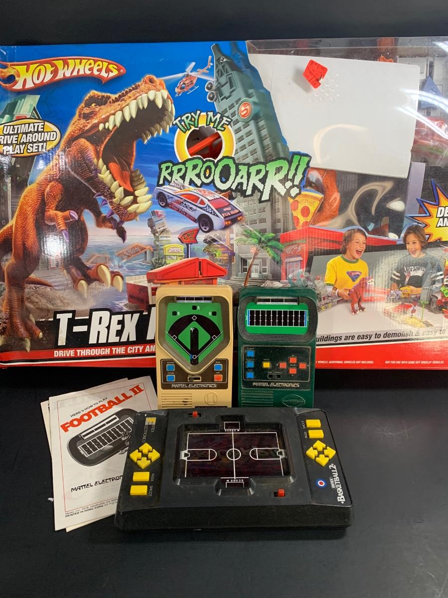 LOT 68R: Hot Wheels T-Rex & Vintage Hand Held Games