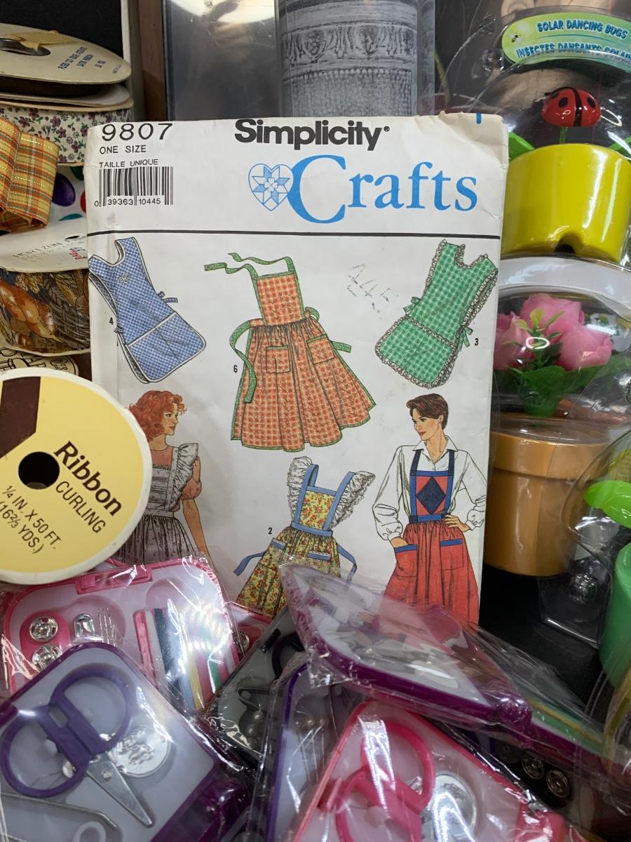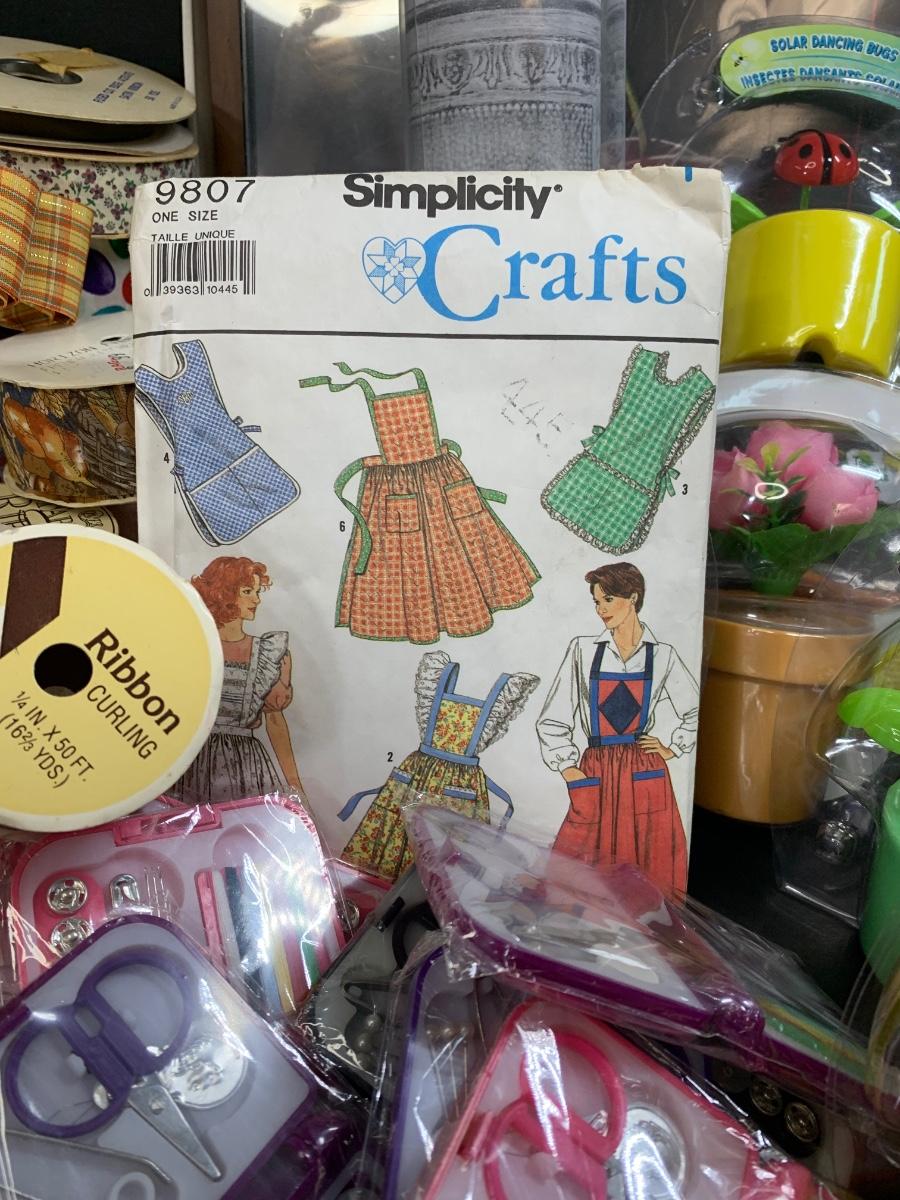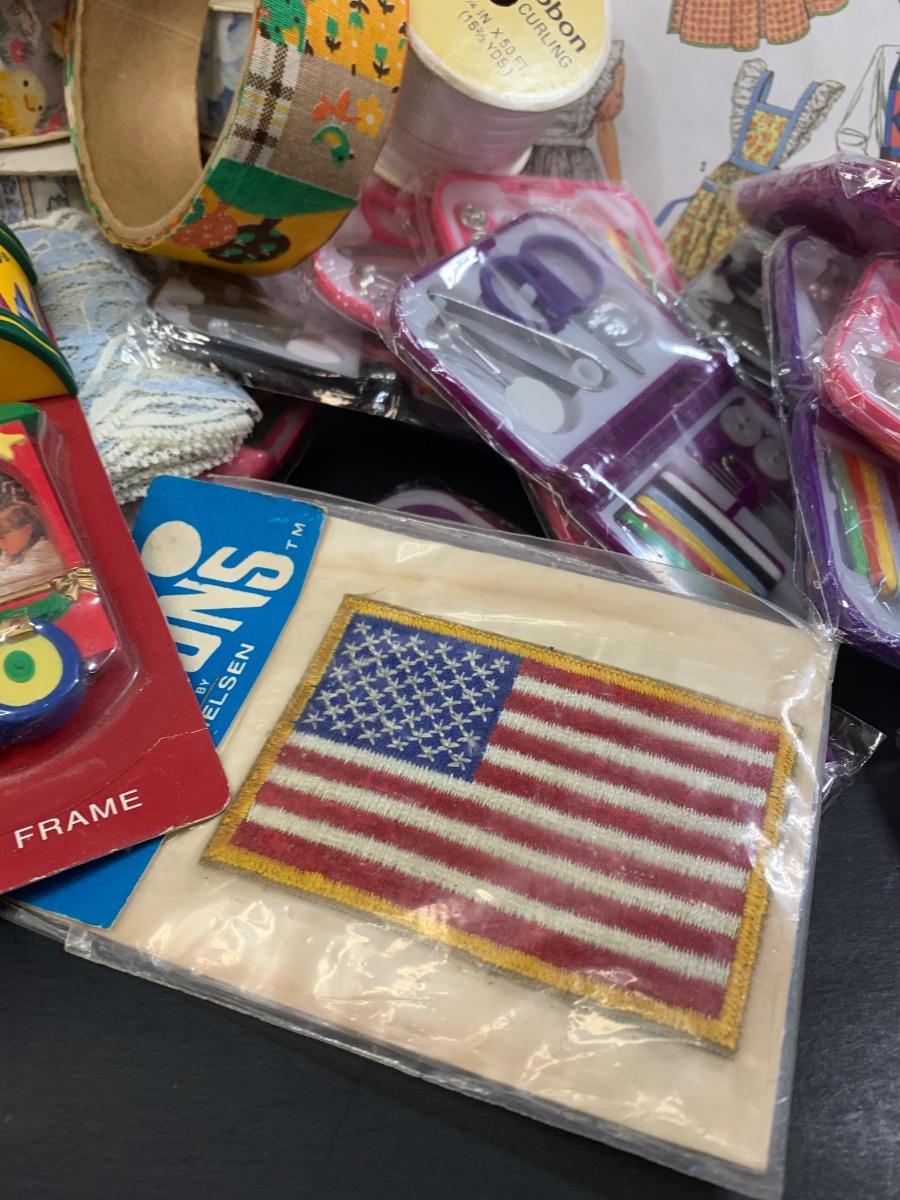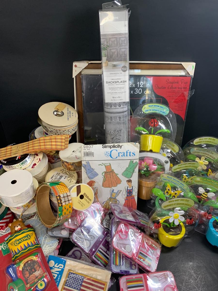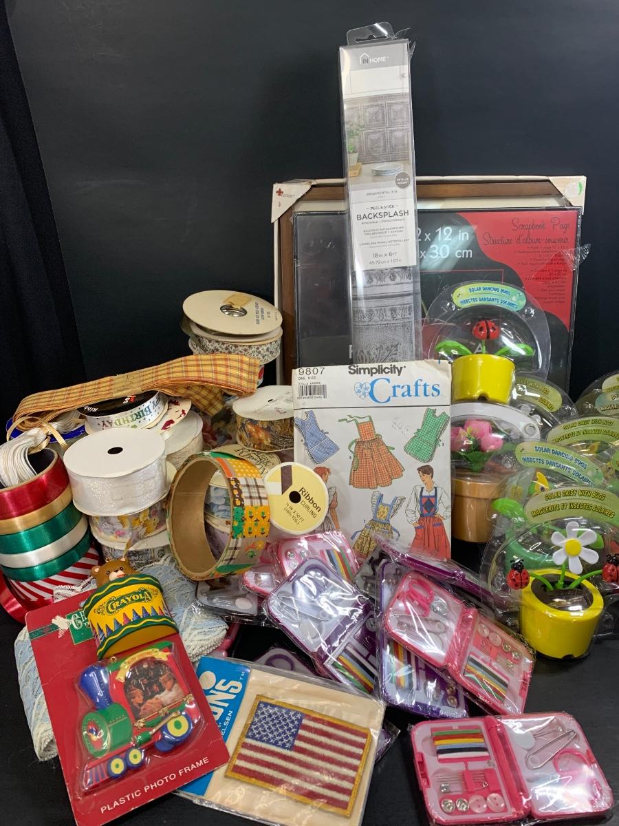 LOT 75R: Crafty Lot: Ribbons, Sewing Kits, Solar Flowers Apron Pattern, 12 x 12 Frames