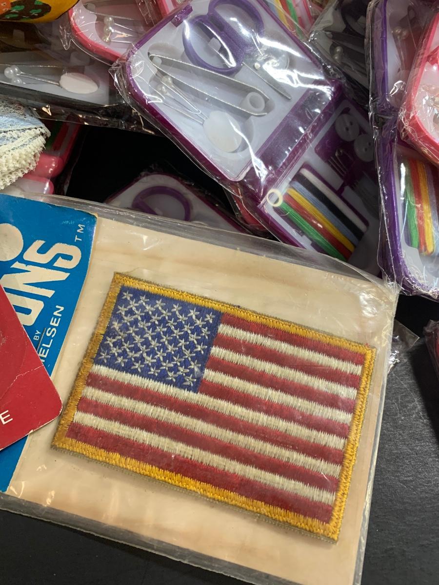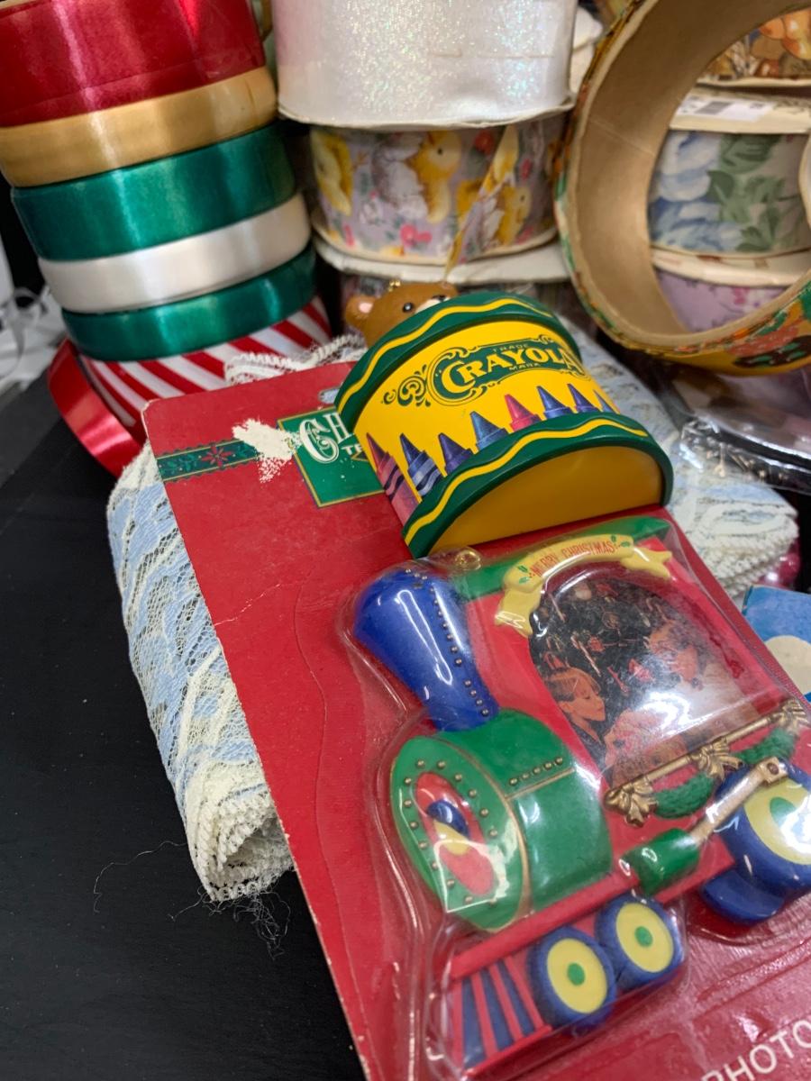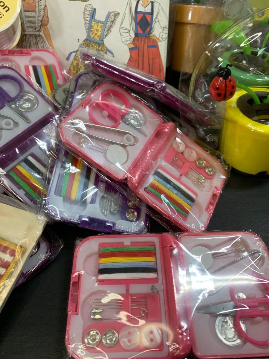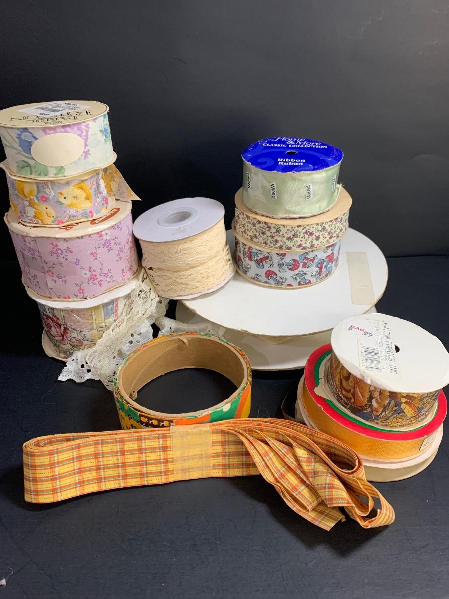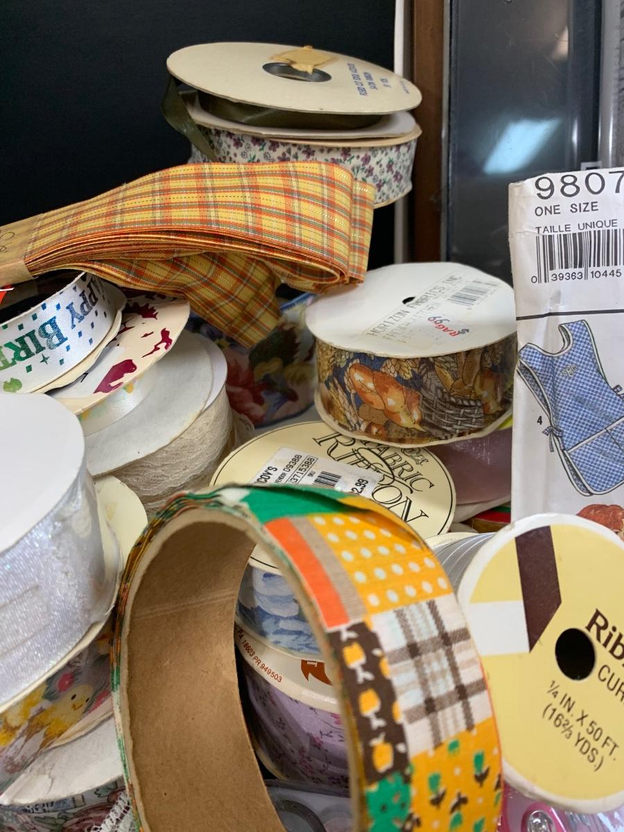 LOT 75R: Crafty Lot: Ribbons, Sewing Kits, Solar Flowers Apron Pattern, 12 x 12 Frames