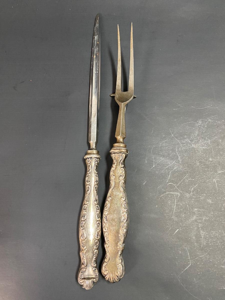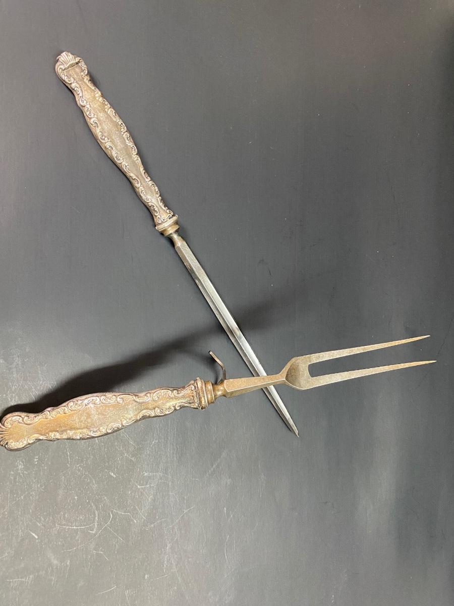 LOT 80: Vintage Silverplate Serving Fork and Knife Sharpener MARKED GERMANY on fork