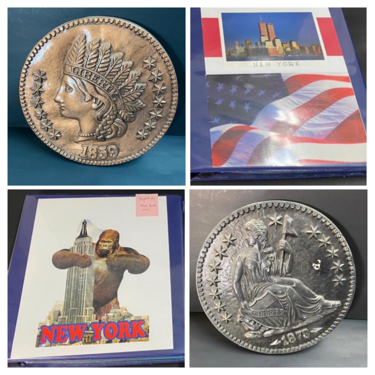 LOT 82: Two Binders of NYC Photographs and Coin Plaques