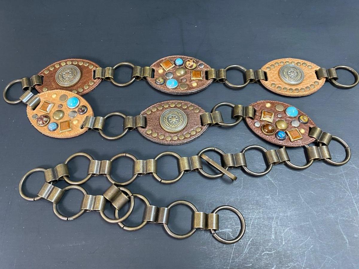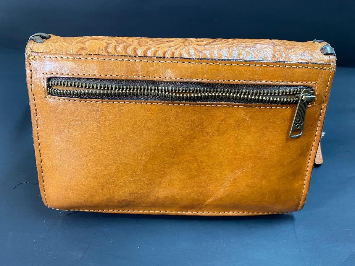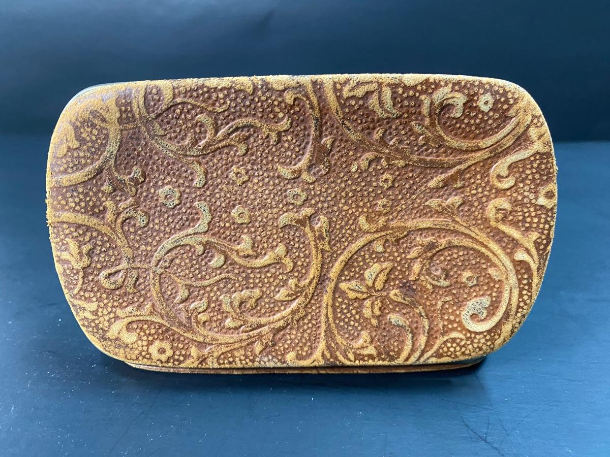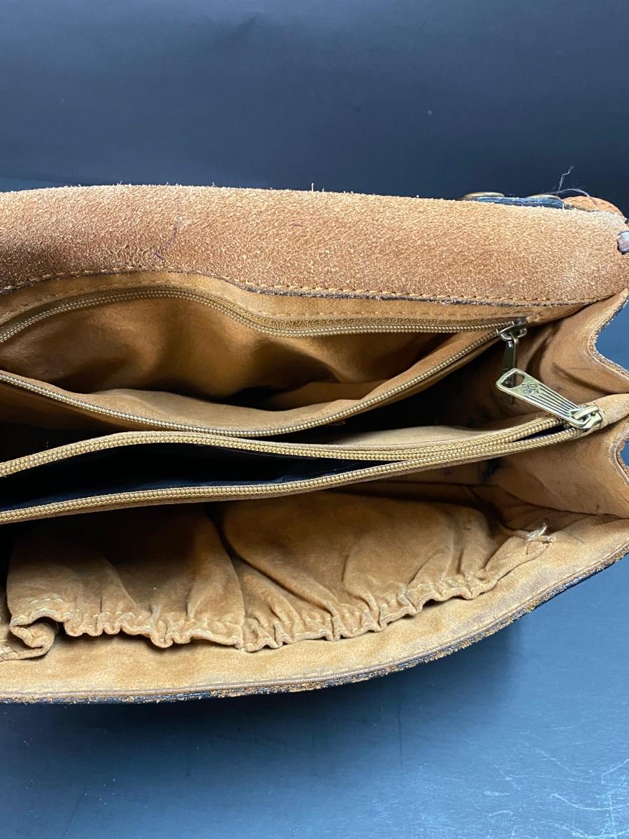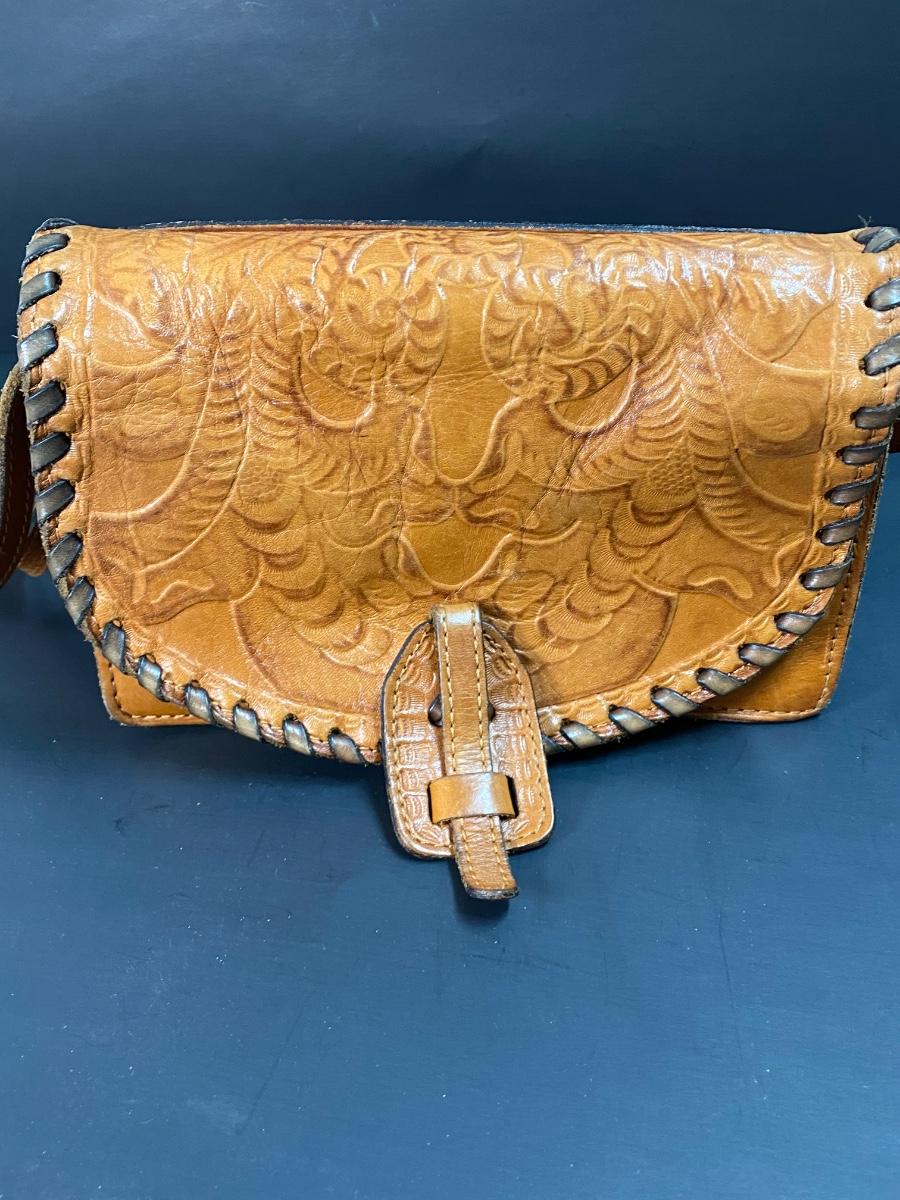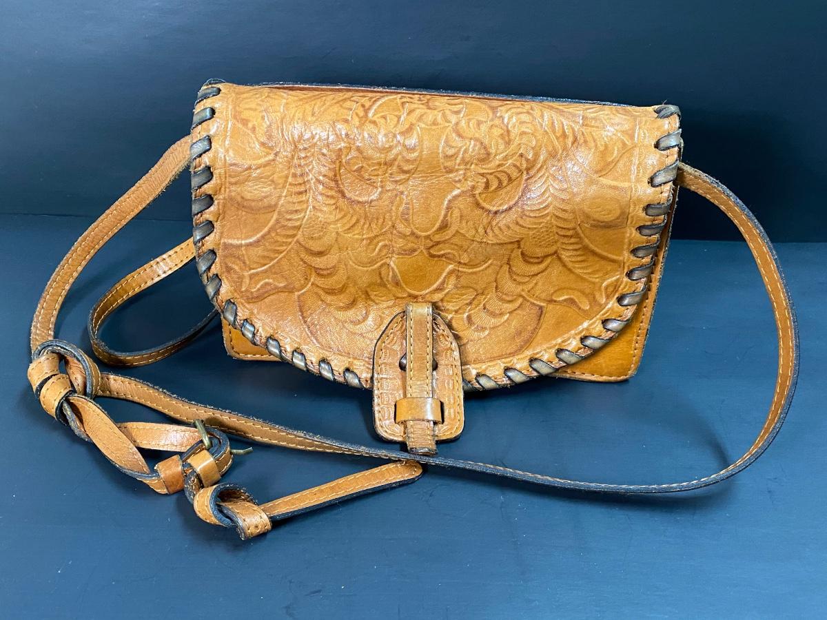 LOT 89: Leather Handbag, Sewing Kit Case, Belt & Jewelry