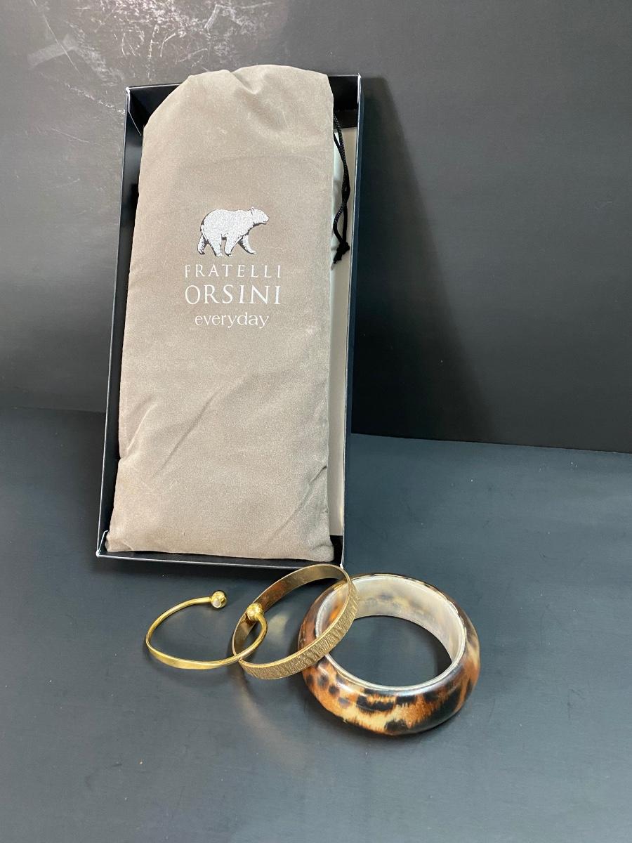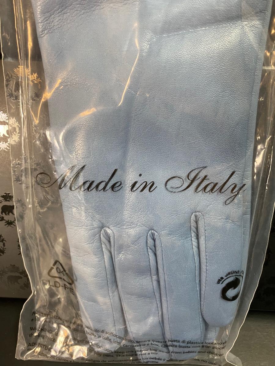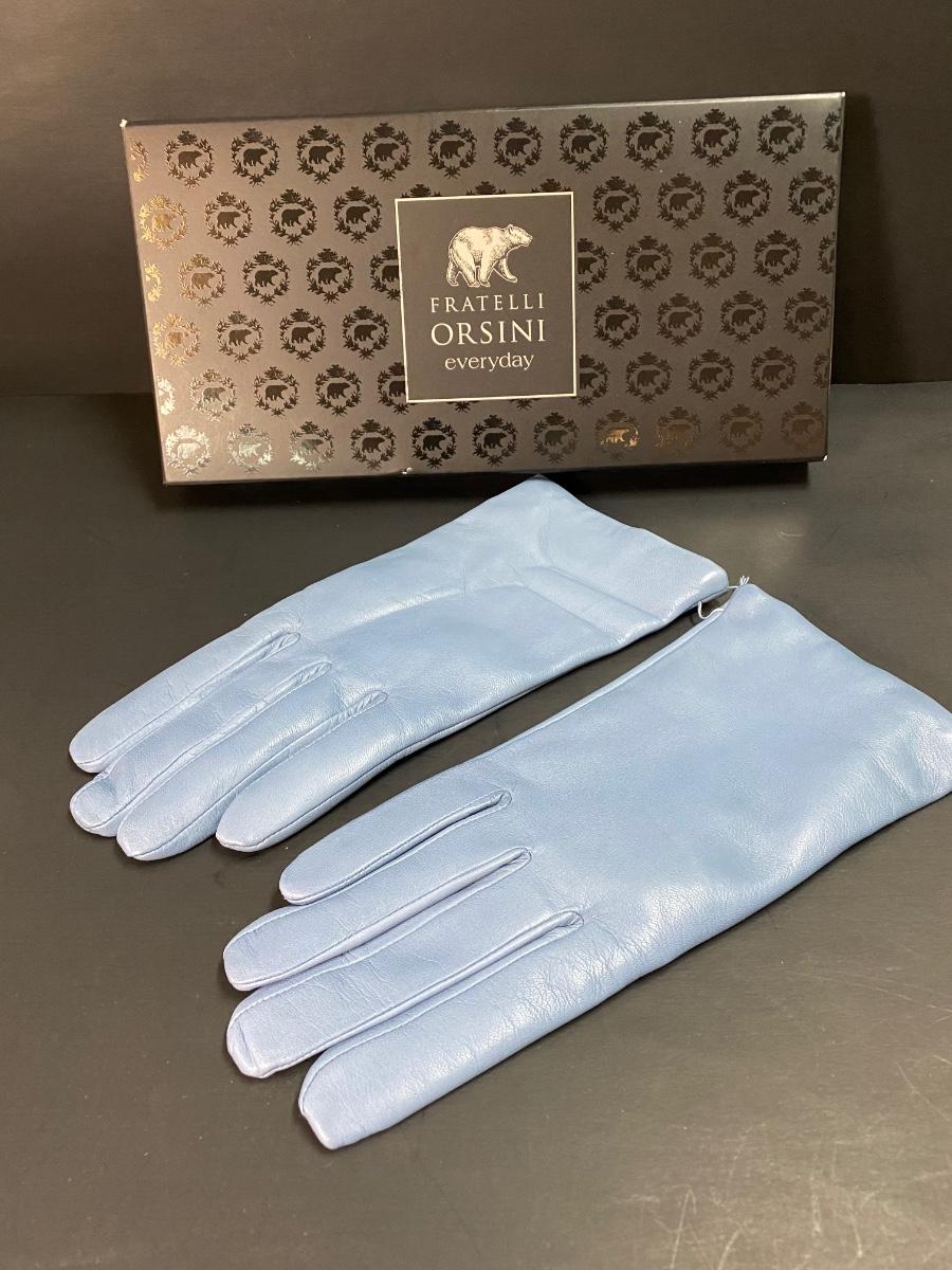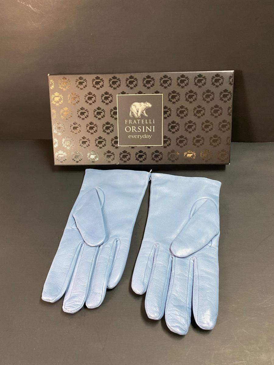 LOT 90: New Ice Blue Italian Leather Fratelli Orsini Gloves sz. Lg & Bangle Bracelets