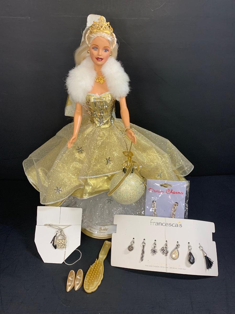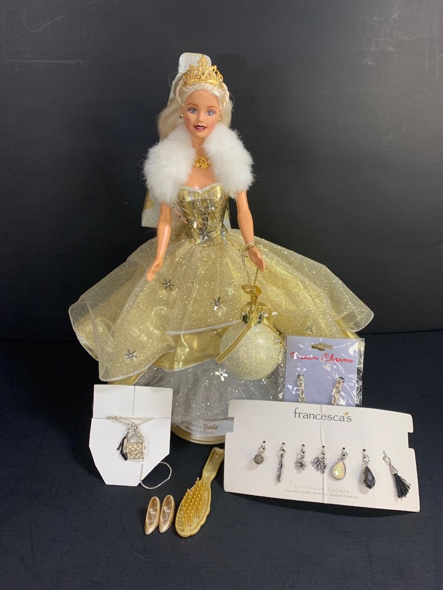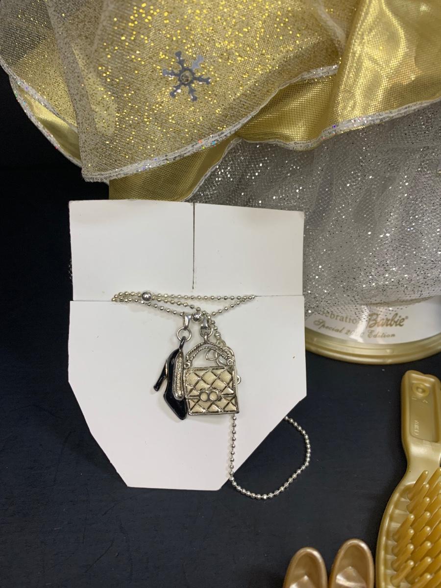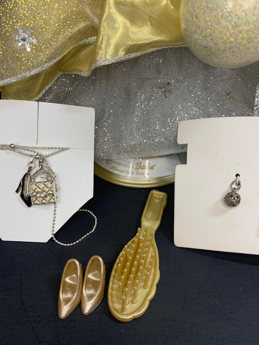 Lot 93R: 2000 Special Edition Celebration Barbie, Costume Jewelry Necklace, Charm Bracelet & Francesa's Charms