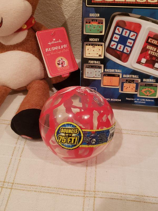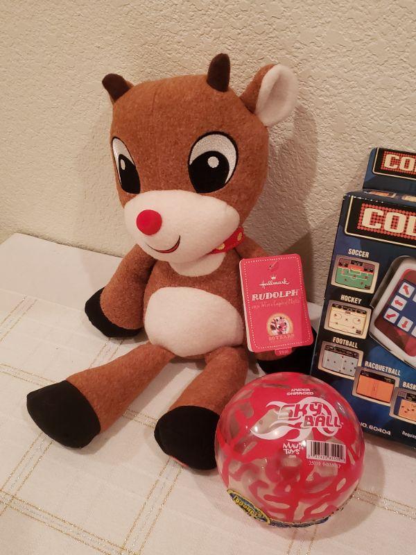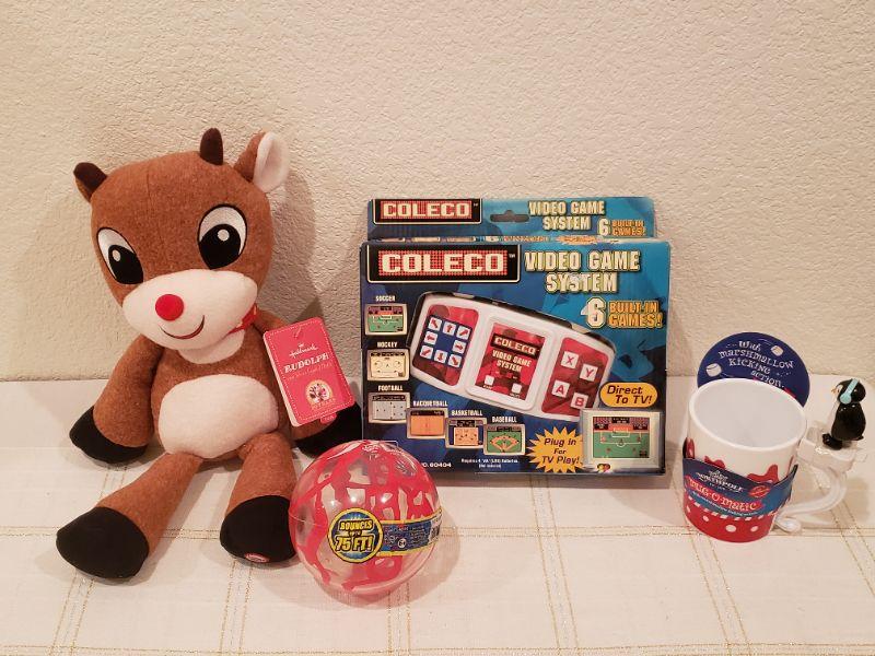 Lot 814: New Video Game, Bouncy Ball, Hot Cocoa Cup and Reindeer Plushie