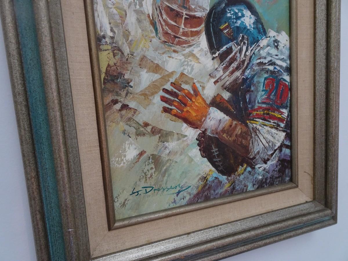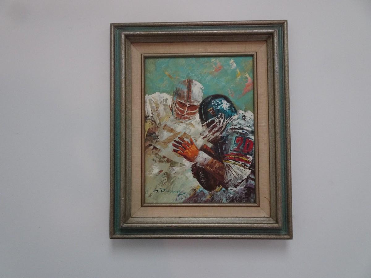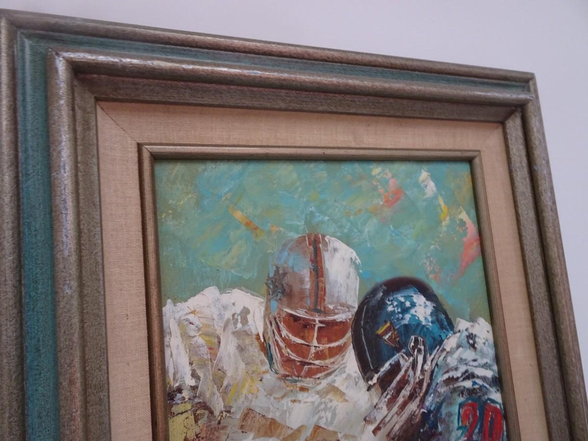 LOT 815 FOOTBALL OIL ON CANVAS FRAMED PAINTING