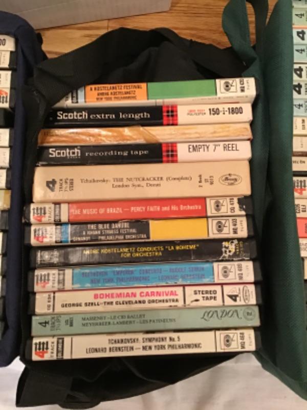 TANDBERG REEL TO REEL DECK model 74, AND MANY TAPES TO GO WITH IT, CASE ALSO INCLUDED