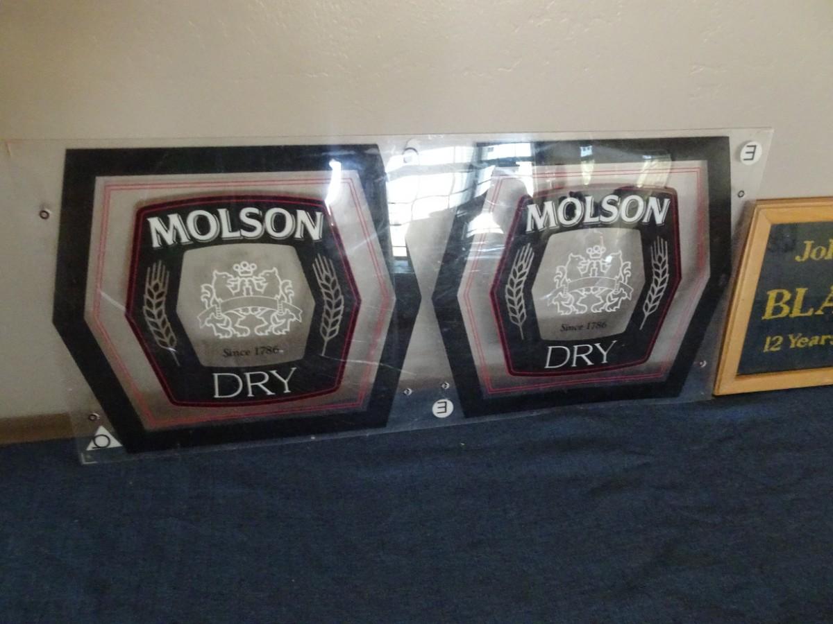 LOT 818. MOLSON DRY PLASTIC SIGN AND JOHNNY WALKER WALL DECOR
