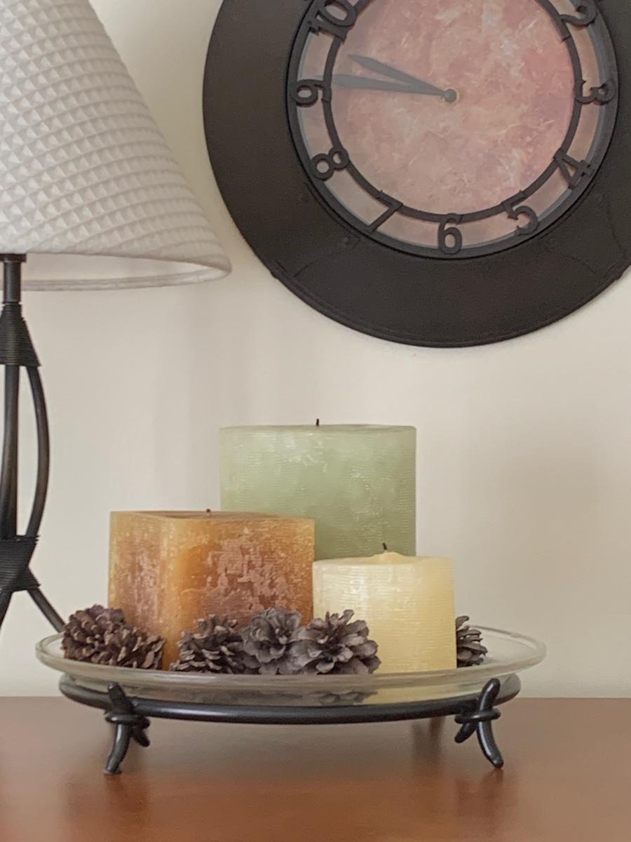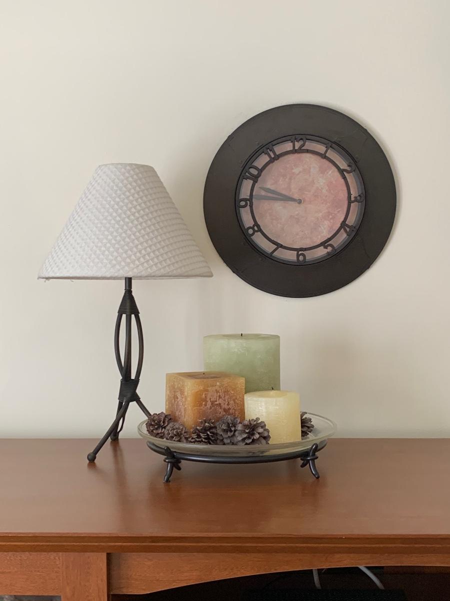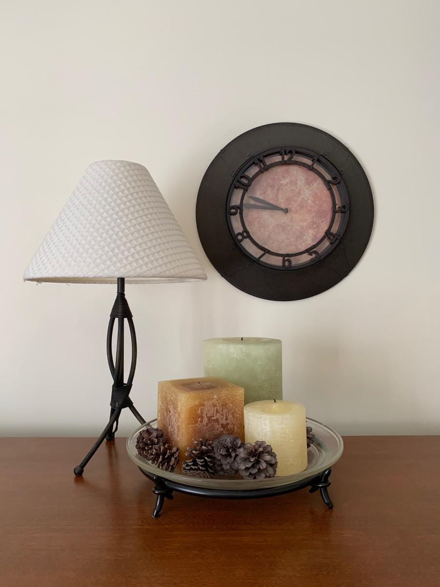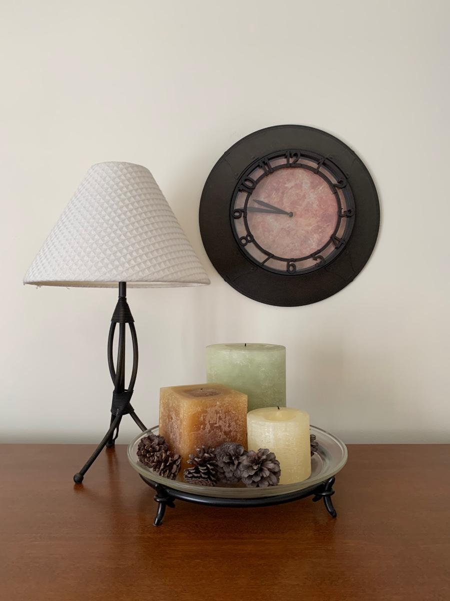 LOT 8R: Home Decor Collection:Metal Accent Lamp, Clock & Candles