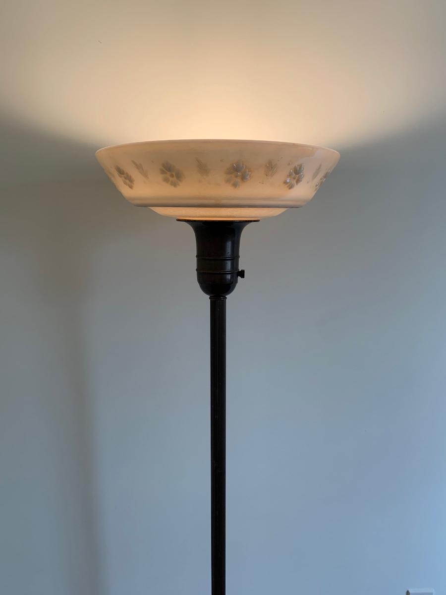 LOT 12R: Brass Floor Lamp w/Glass Shade