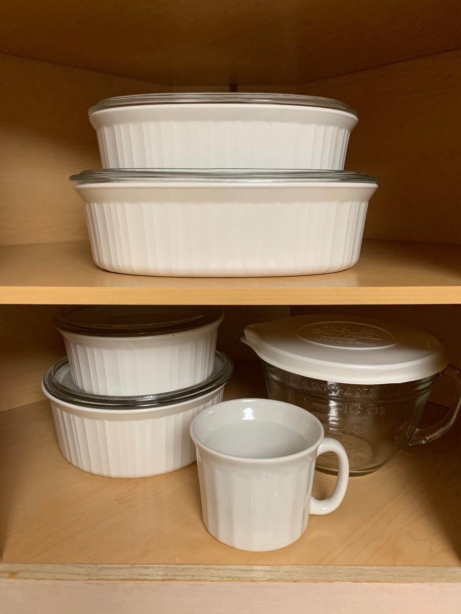 Corning Ware: 1.6 Liter, 1.8 Liter 2.5 Liter, 2.8 Liter,