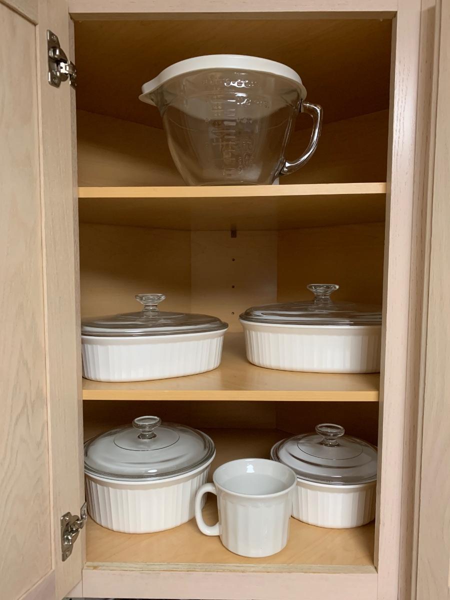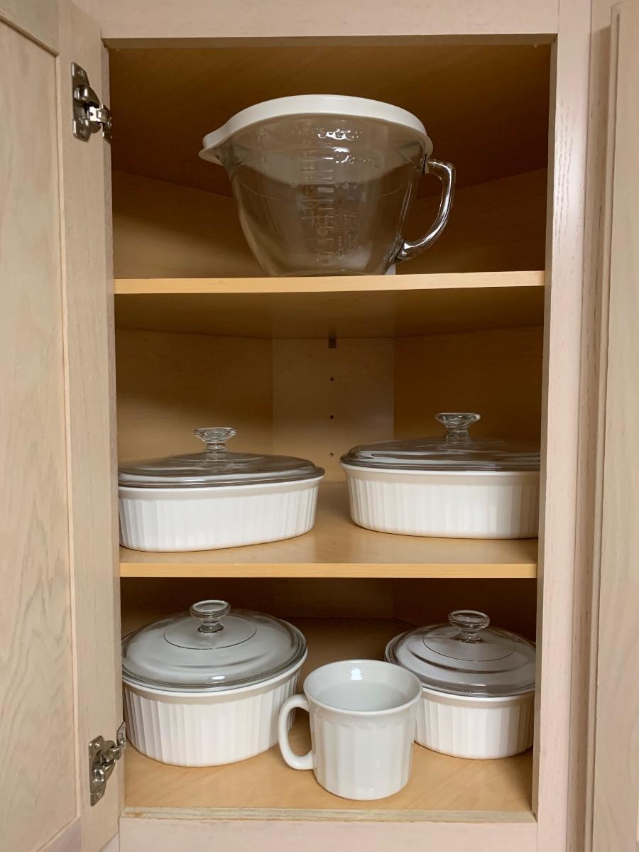 LOT 17R: Pampered Chef Glass Measuring Pitcher w/Lid, Corningware Casserole Dishes w/Lids