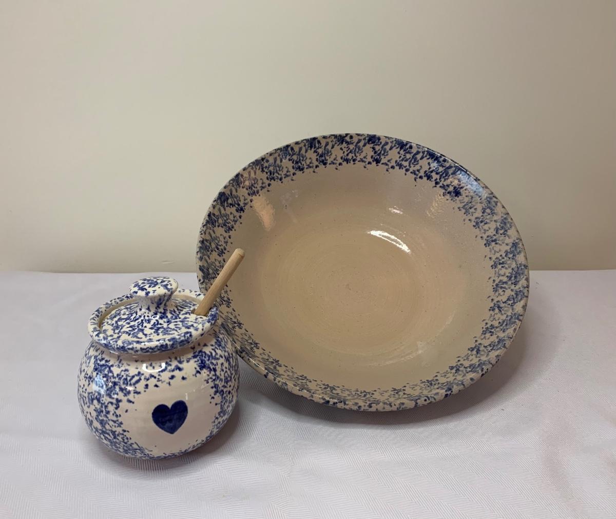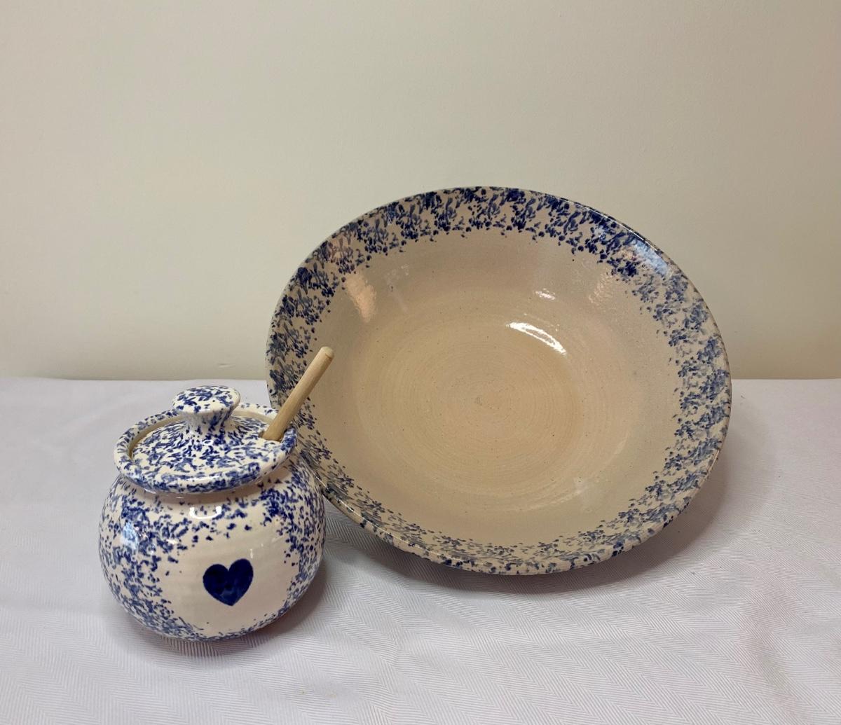 LOT 21R: Handmade,Signed Pottery Bowl & Honey Pot/Sugar Bowl