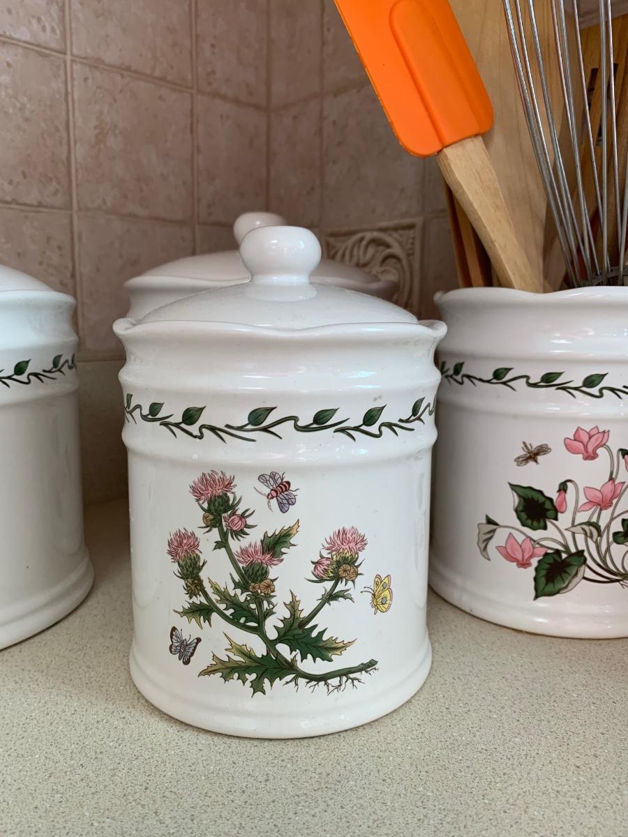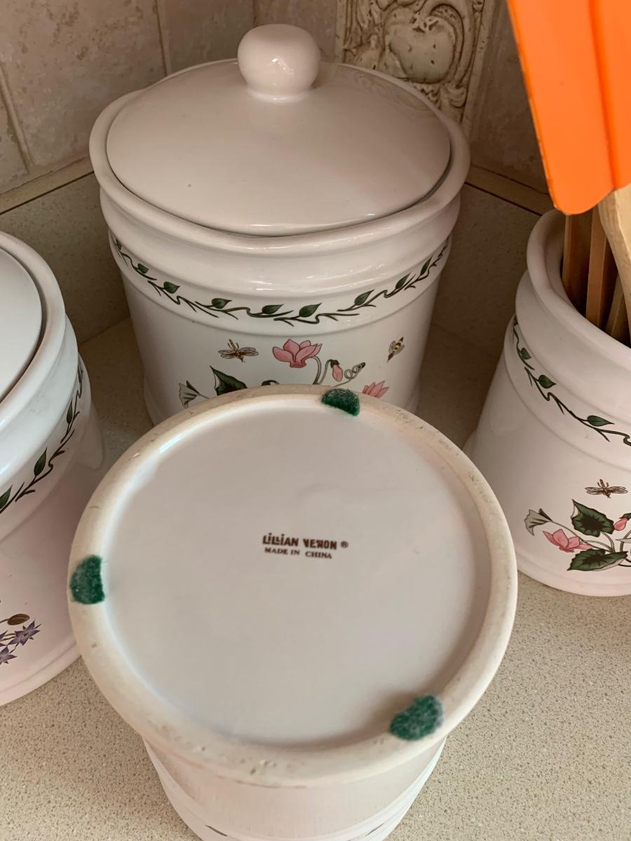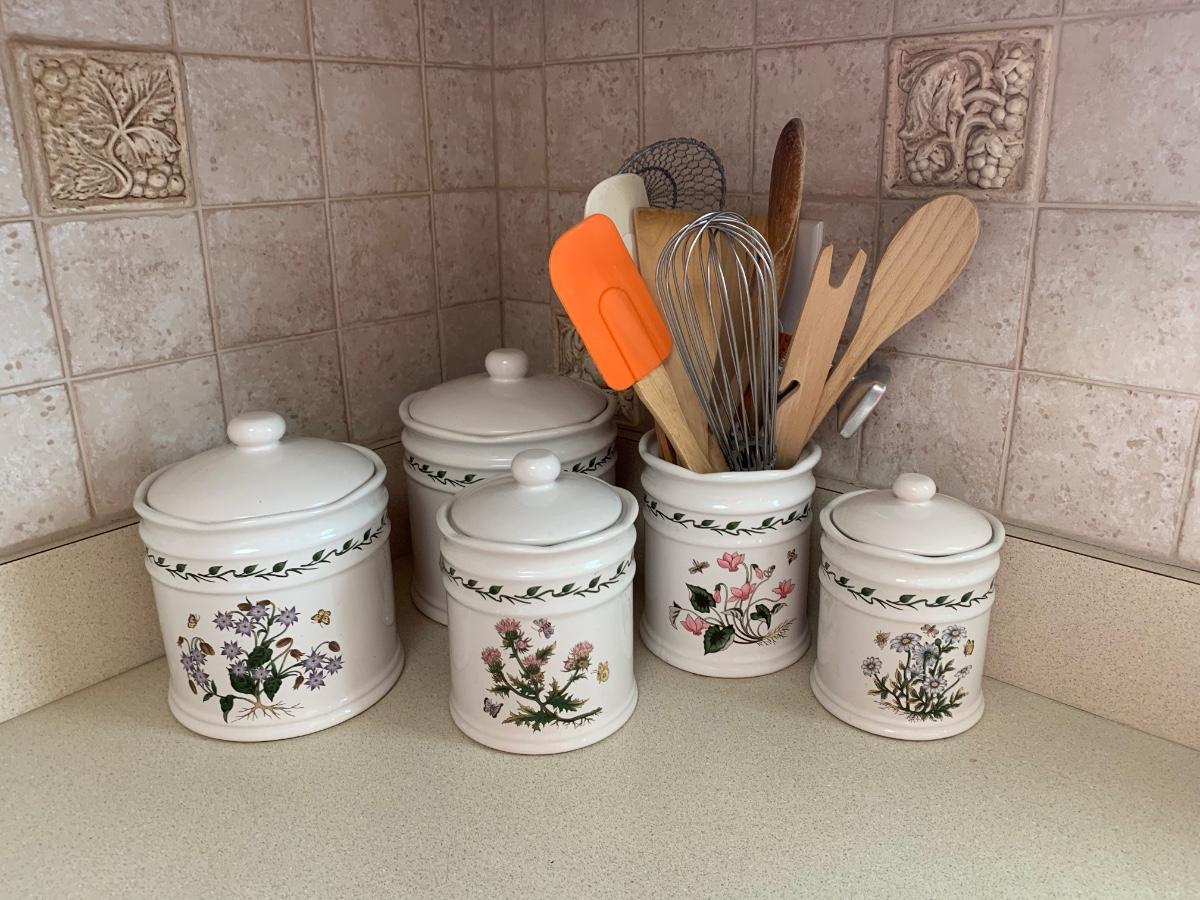 LOT 27R: Vintage Lillian Vernon Botanical Garden Kitchen Storage Canisters, Utensil Holder & More