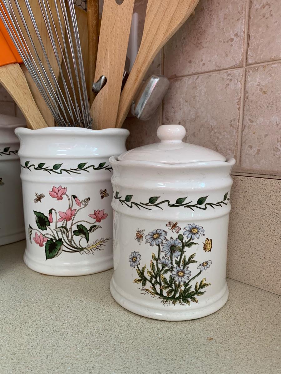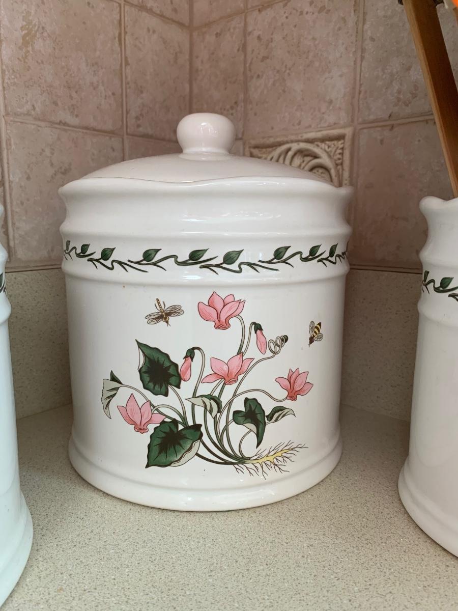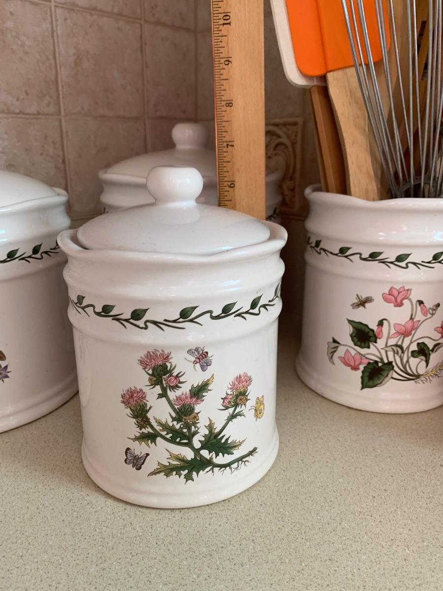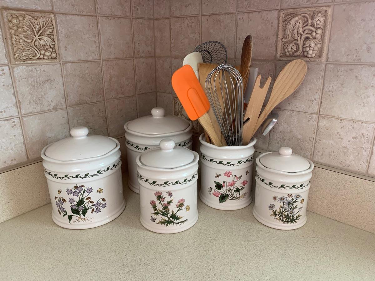 LOT 27R: Vintage Lillian Vernon Botanical Garden Kitchen Storage Canisters, Utensil Holder & More