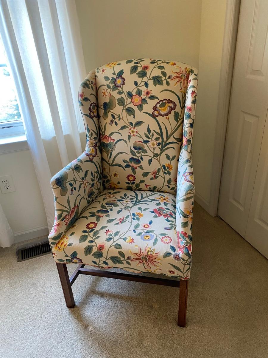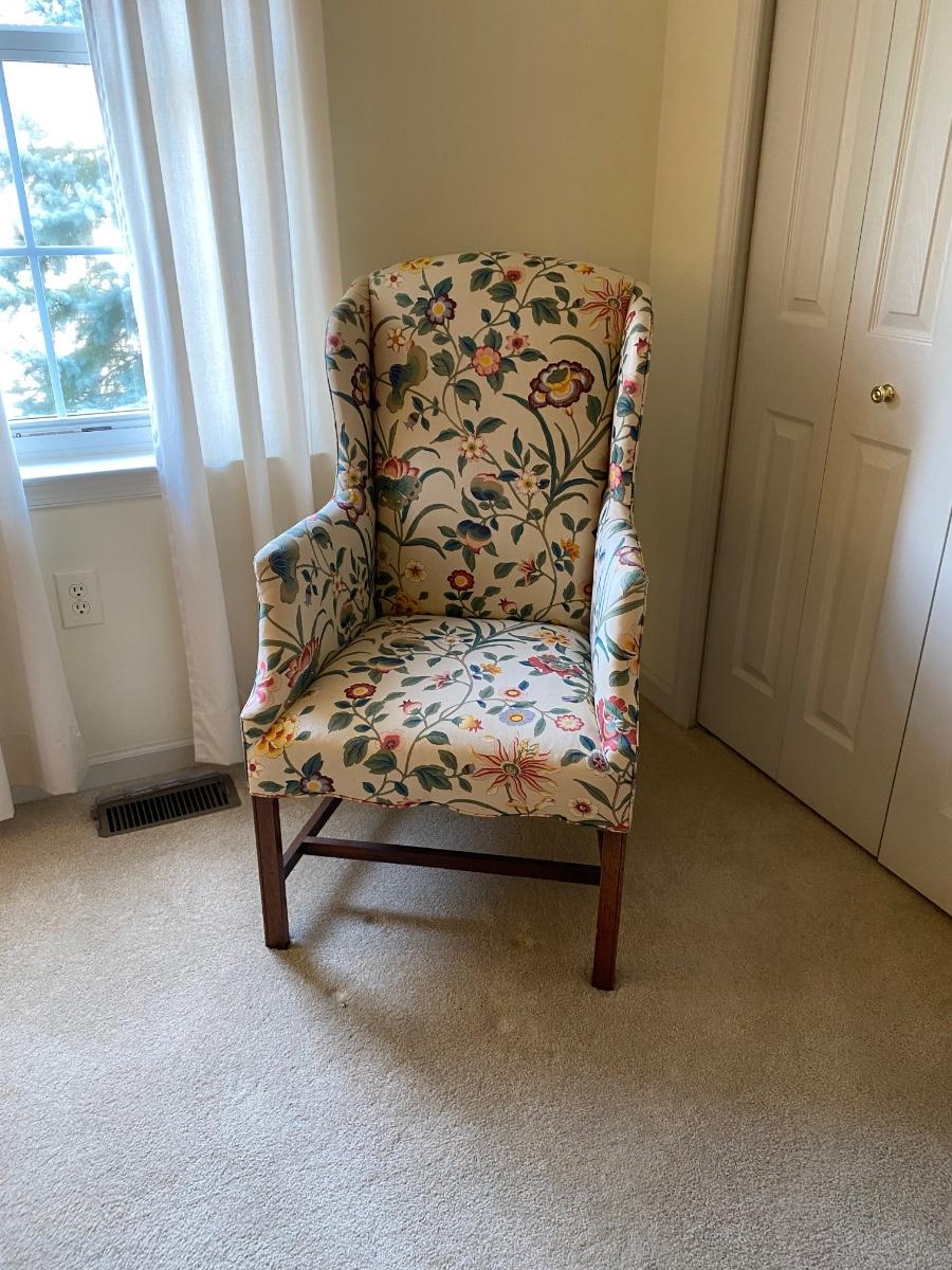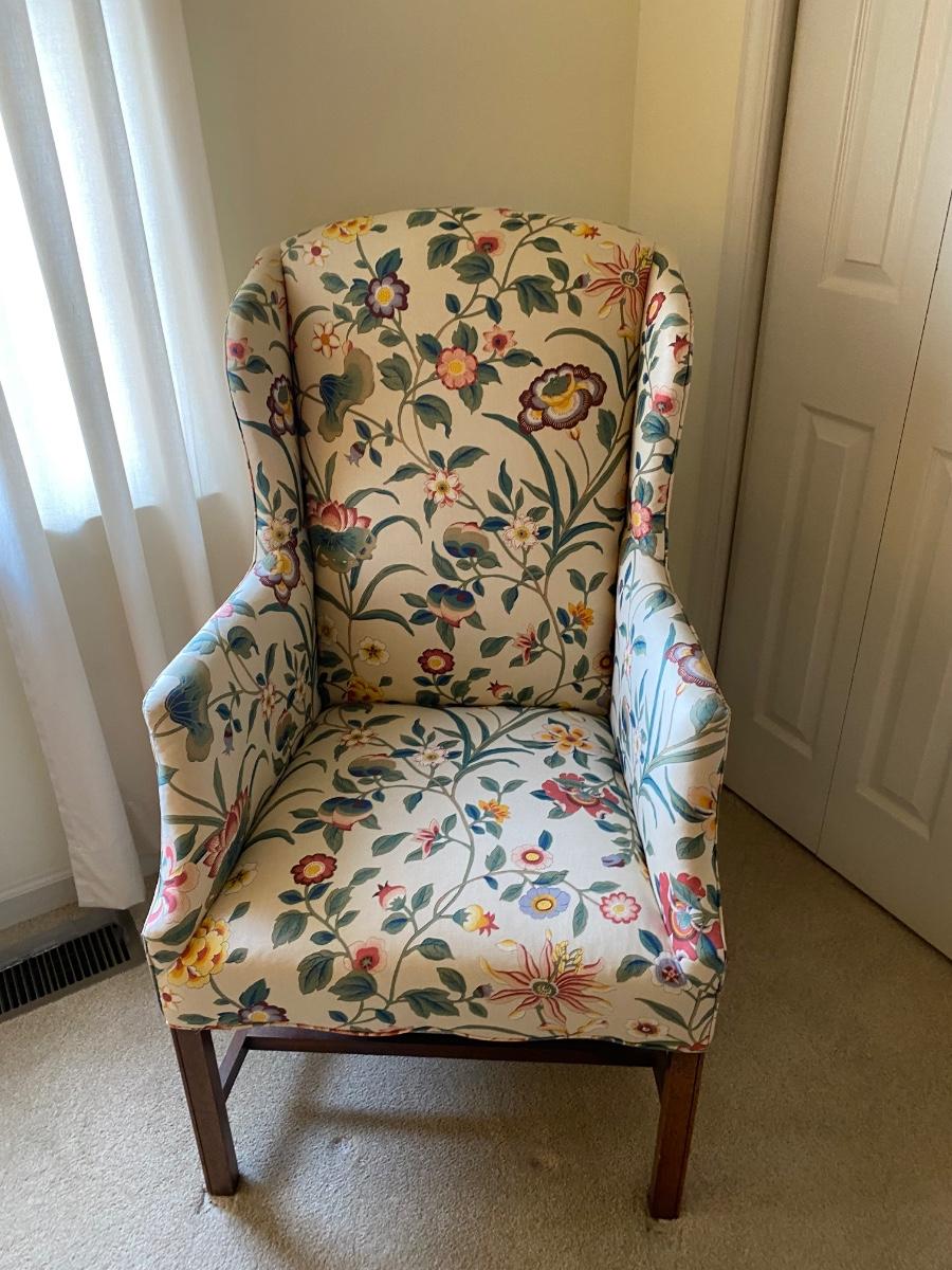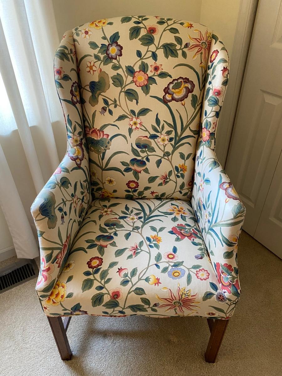 Classic style, eclectic print chair has bright vibrant colors. Chair is in great used condition with no marks or stains. Chair comes from a smoke free pet free home. Please see all pictures as they are the best representation of the items. The pictures show condition, measurements if taken, and what is included in the lot. Due to the large amount that we photograph and the time frame, we are not always able to take measurements. All items unless noted, are pre-owned and have been used. If you purchased furniture, you must bring help. We do not allow one person to carry large furniture out on their own. Bring help, tools and a truck for the safety of our client’s homes, and your personal safety. Any damages that result to the property including walls, and floors due to moving of the furniture will be charged to the buyer. Company policy. Thank you.