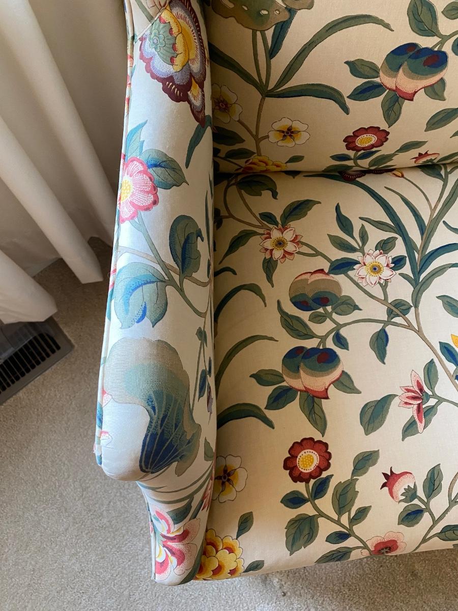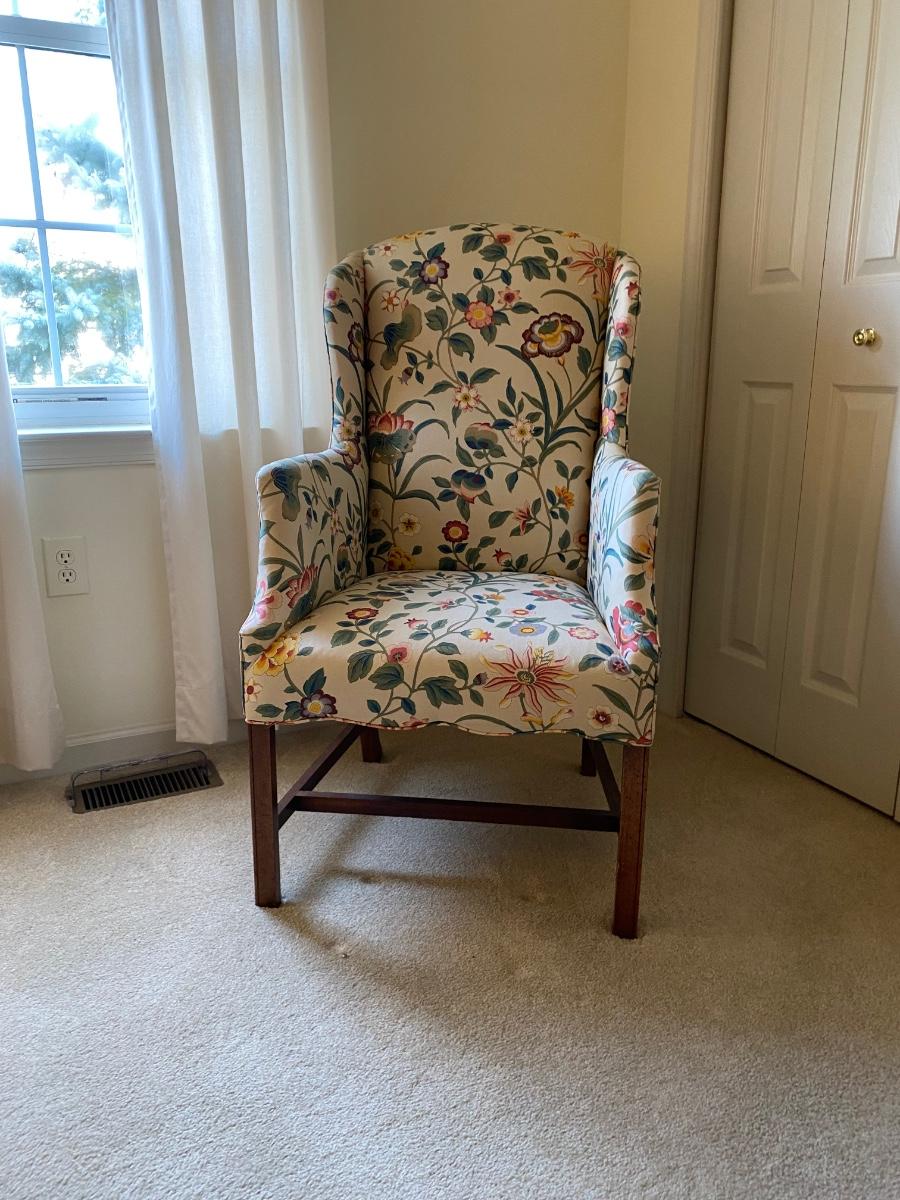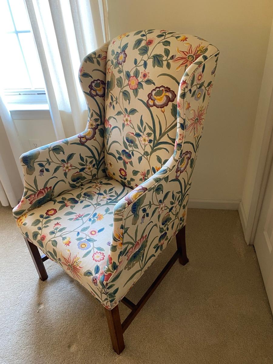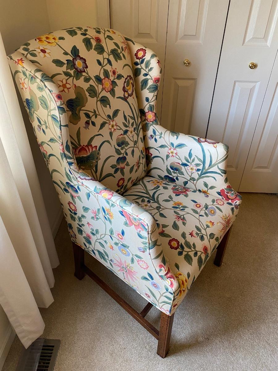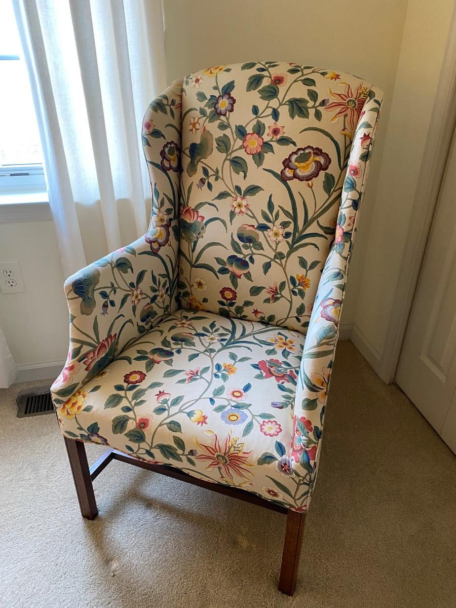Classic style, eclectic print chair has bright vibrant colors. Chair is in great used condition with no marks or stains. Chair comes from a smoke free pet free home. Please see all pictures as they are the best representation of the items. The pictures show condition, measurements if taken, and what is included in the lot. Due to the large amount that we photograph and the time frame, we are not always able to take measurements. All items unless noted, are pre-owned and have been used. If you purchased furniture, you must bring help. We do not allow one person to carry large furniture out on their own. Bring help, tools and a truck for the safety of our client’s homes, and your personal safety. Any damages that result to the property including walls, and floors due to moving of the furniture will be charged to the buyer. Company policy. Thank you.