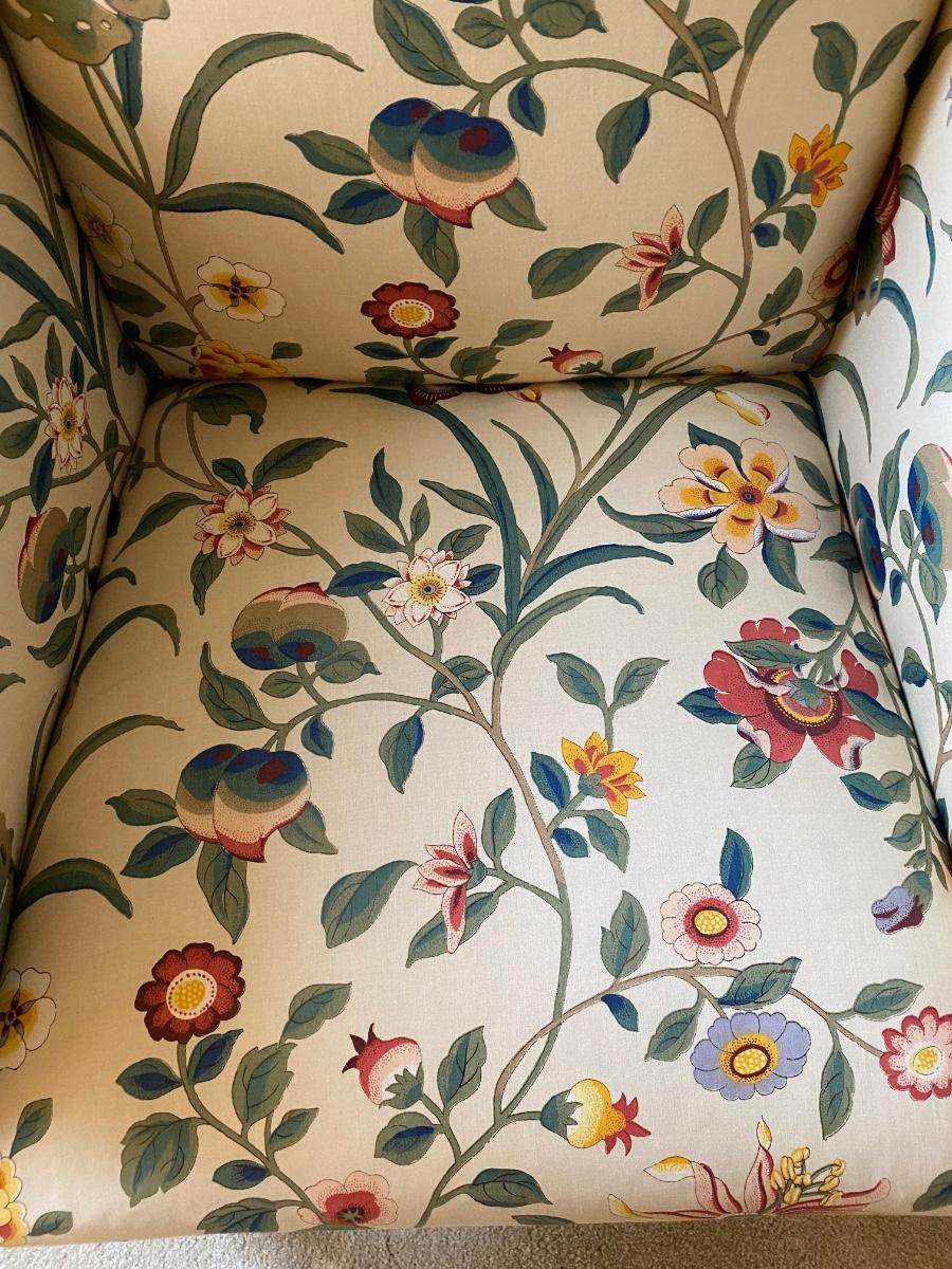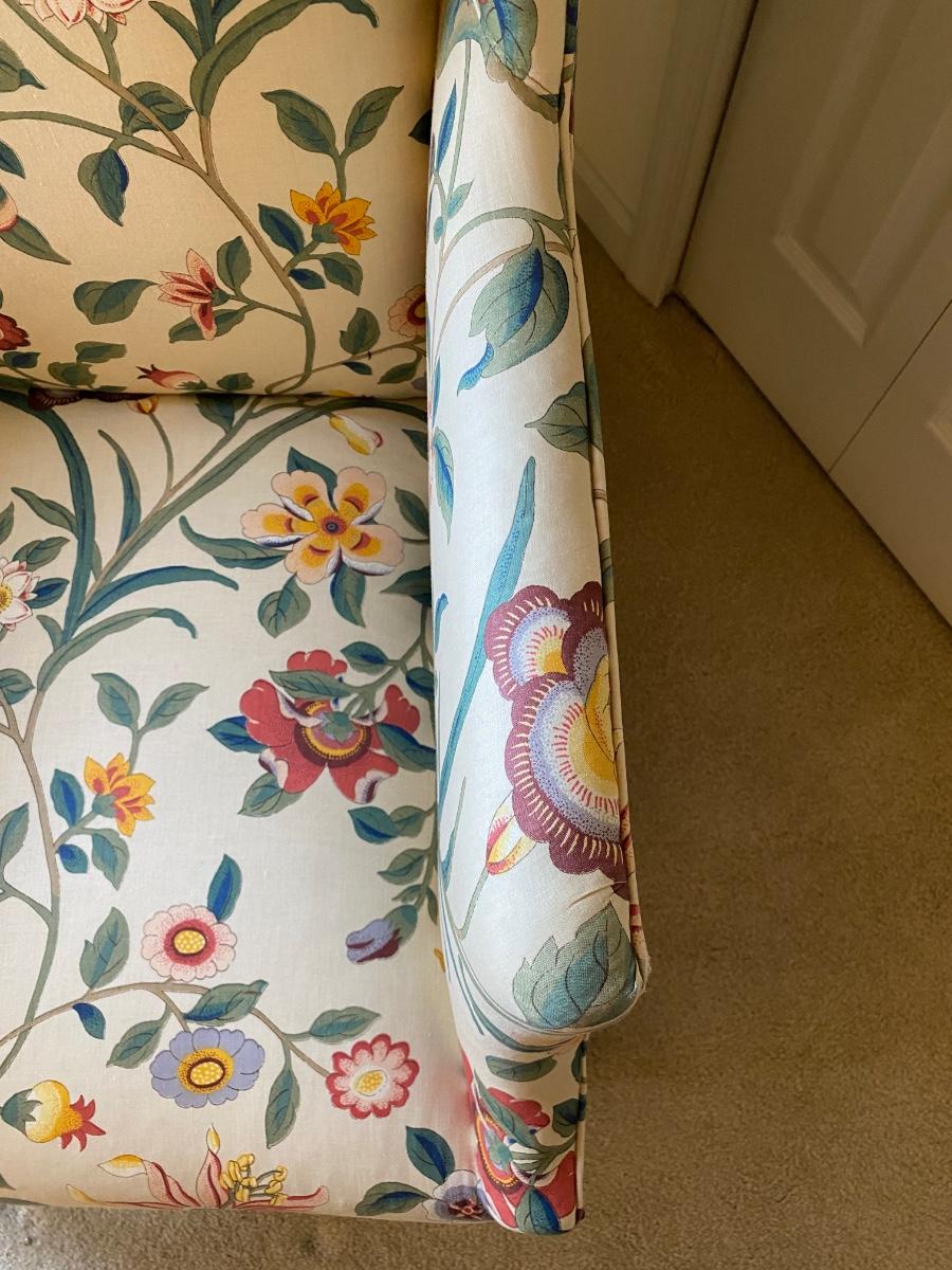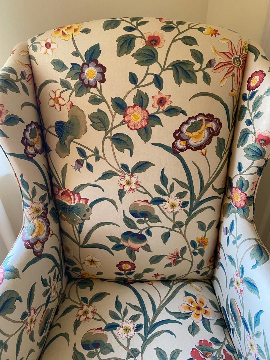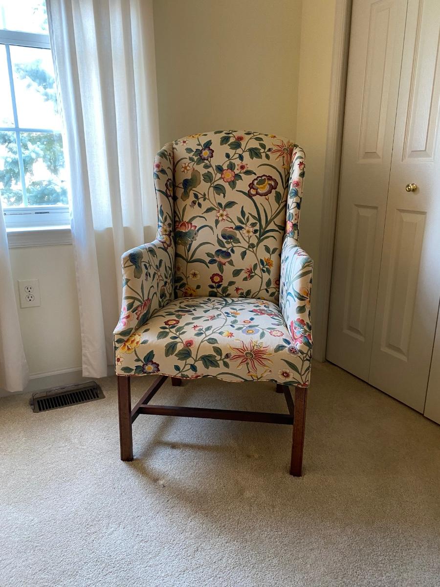 Classic style, eclectic print chair has bright vibrant colors. Chair is in great used condition with no marks or stains. Chair comes from a smoke free pet free home. Please see all pictures as they are the best representation of the items. The pictures show condition, measurements if taken, and what is included in the lot. Due to the large amount that we photograph and the time frame, we are not always able to take measurements. All items unless noted, are pre-owned and have been used. If you purchased furniture, you must bring help. We do not allow one person to carry large furniture out on their own. Bring help, tools and a truck for the safety of our client’s homes, and your personal safety. Any damages that result to the property including walls, and floors due to moving of the furniture will be charged to the buyer. Company policy. Thank you.
