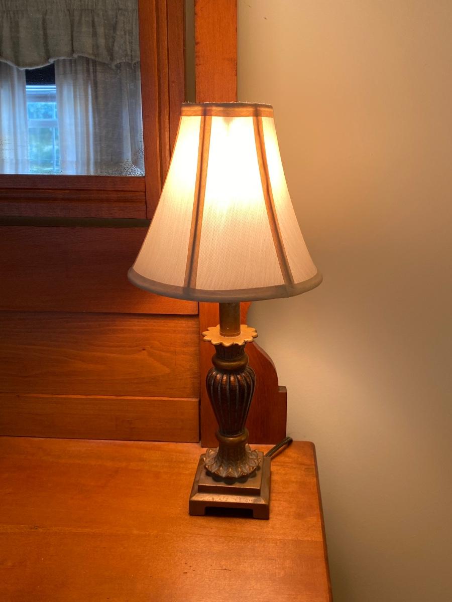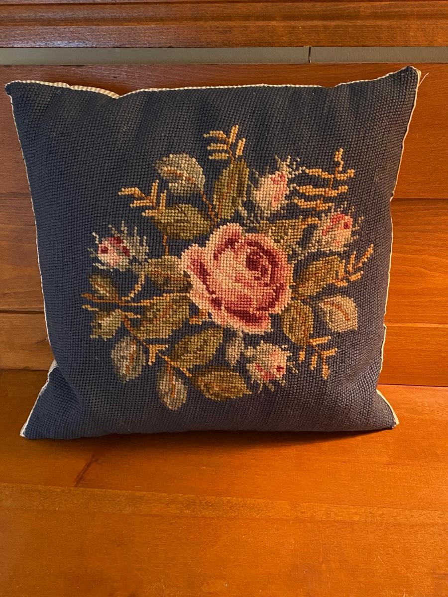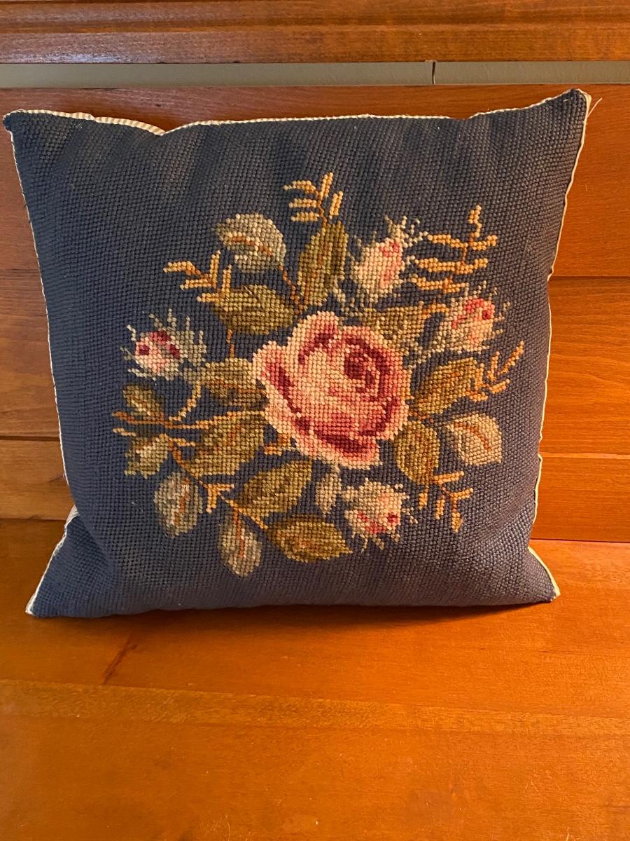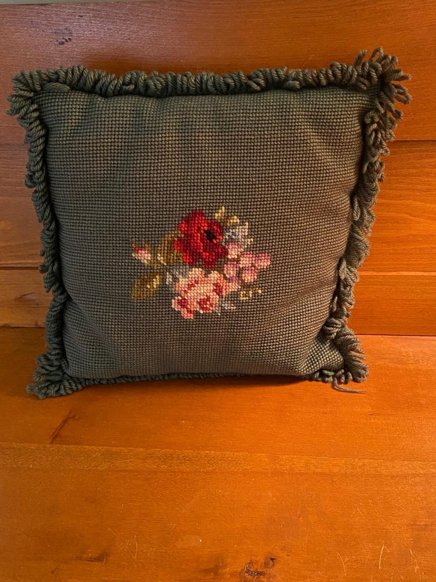 LOT 51C: Three Cross Stitched Pillows and Table Lamp