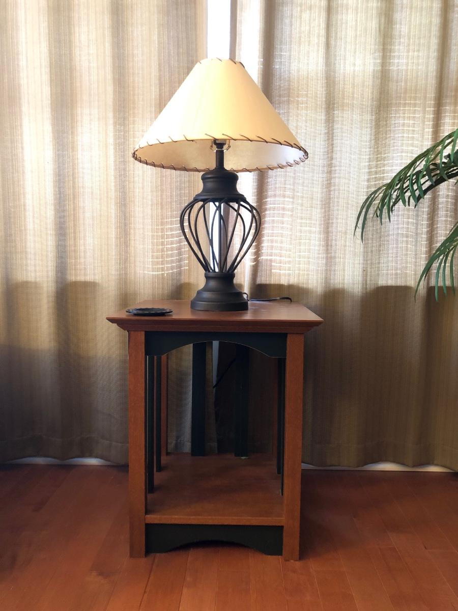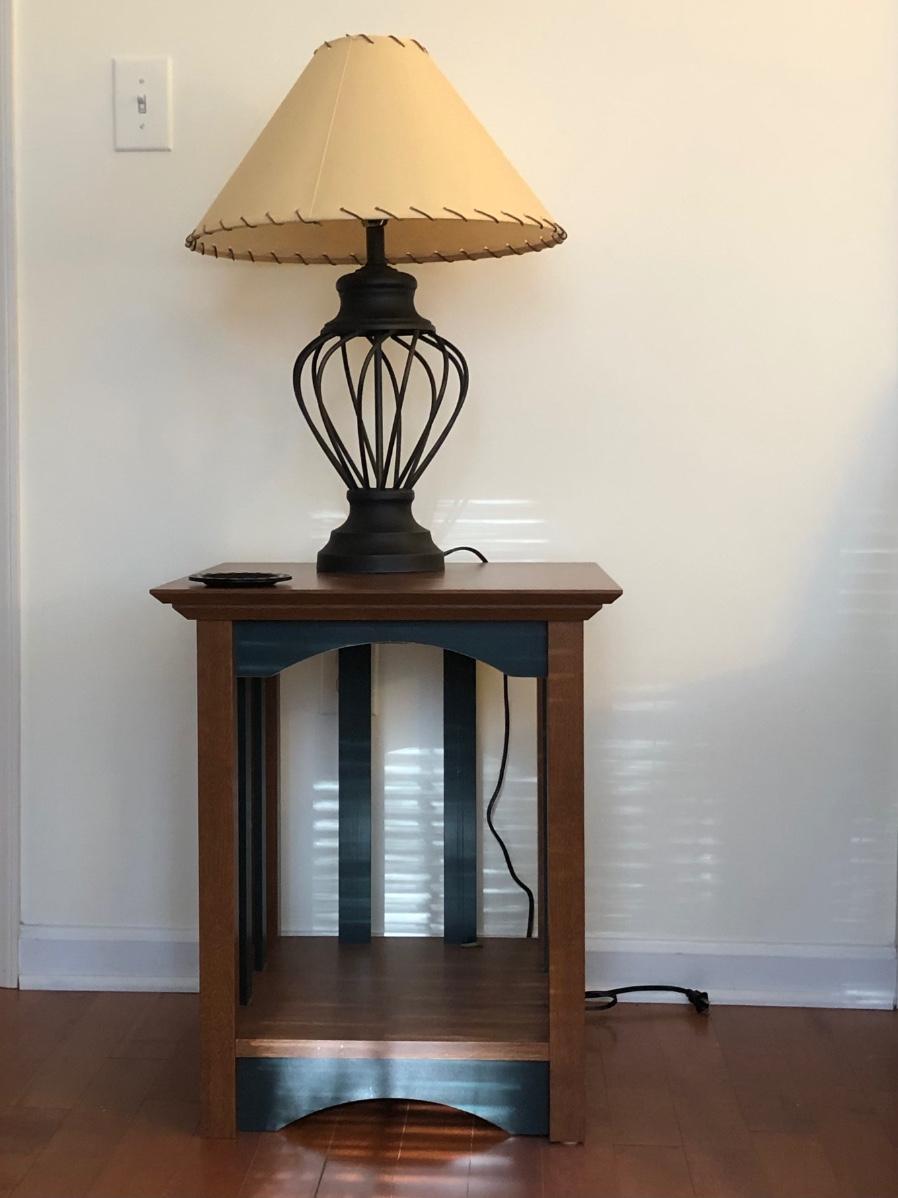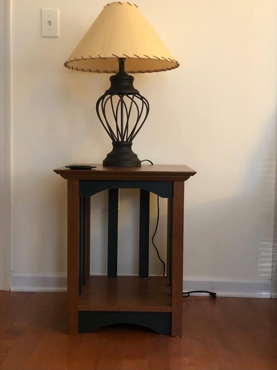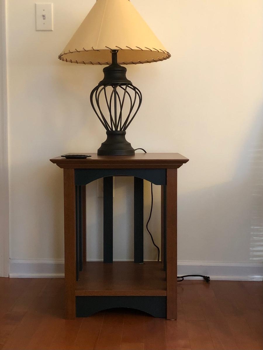 LOT67M: Wooden End Table w/ Metal Lamp