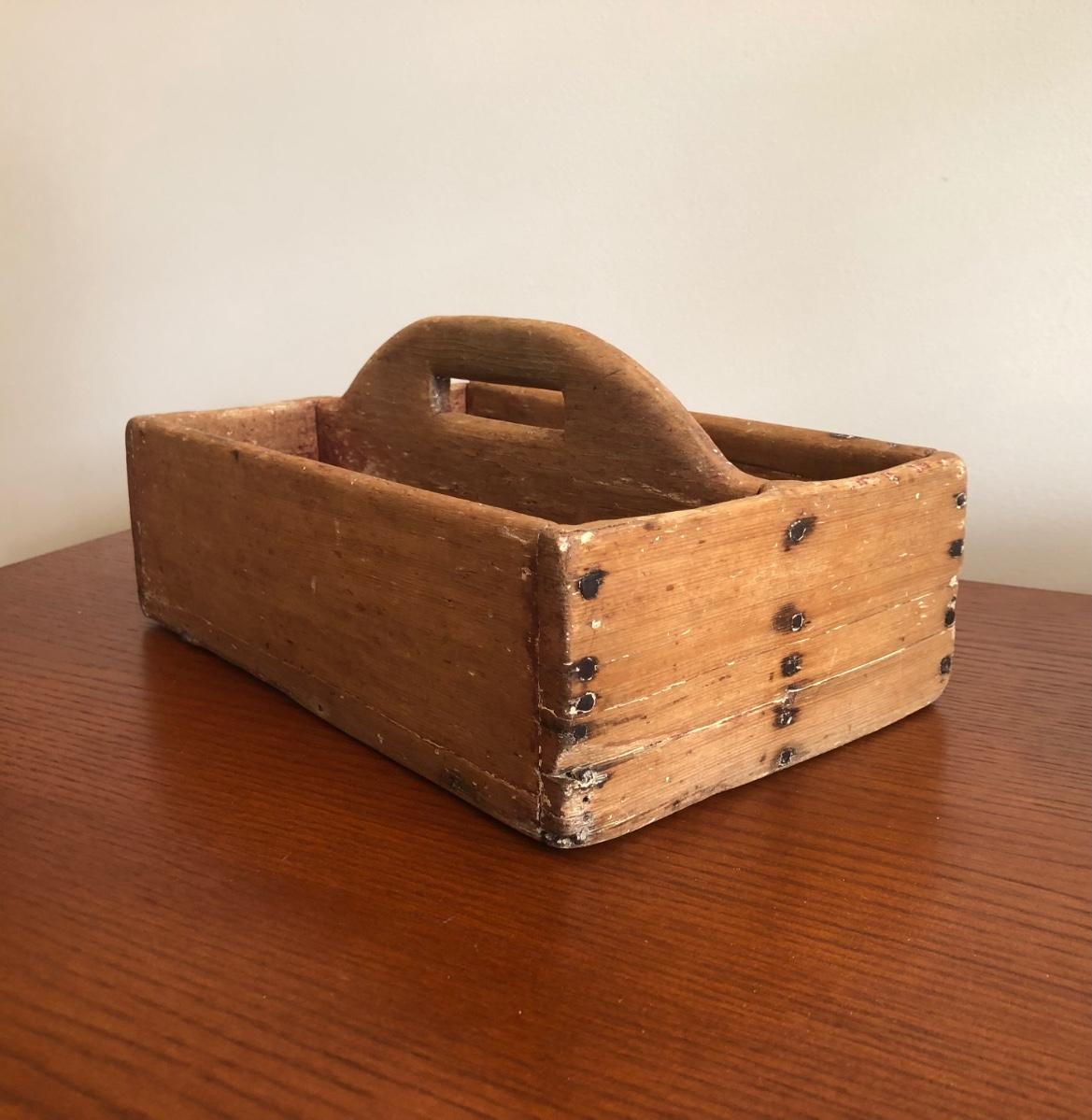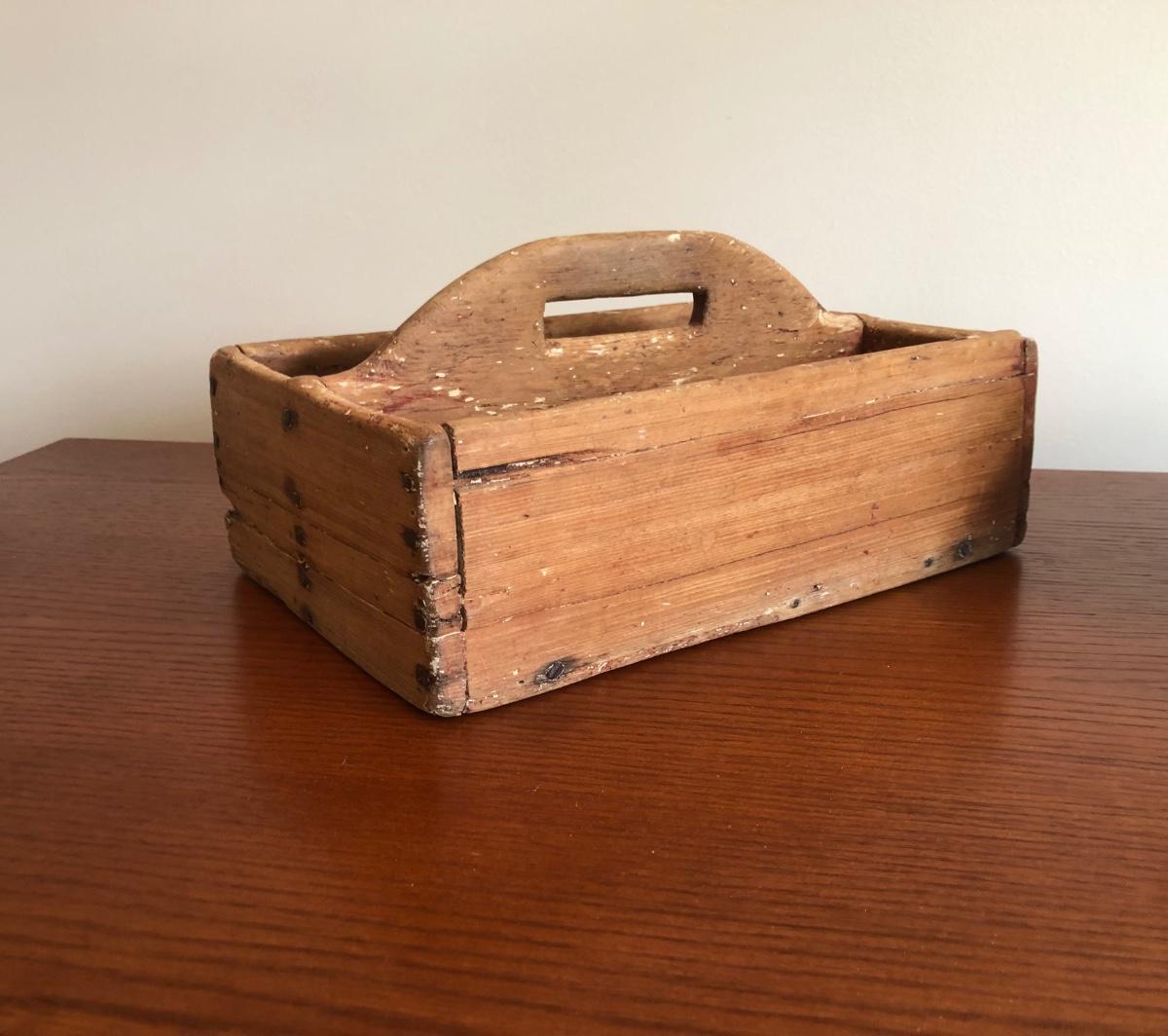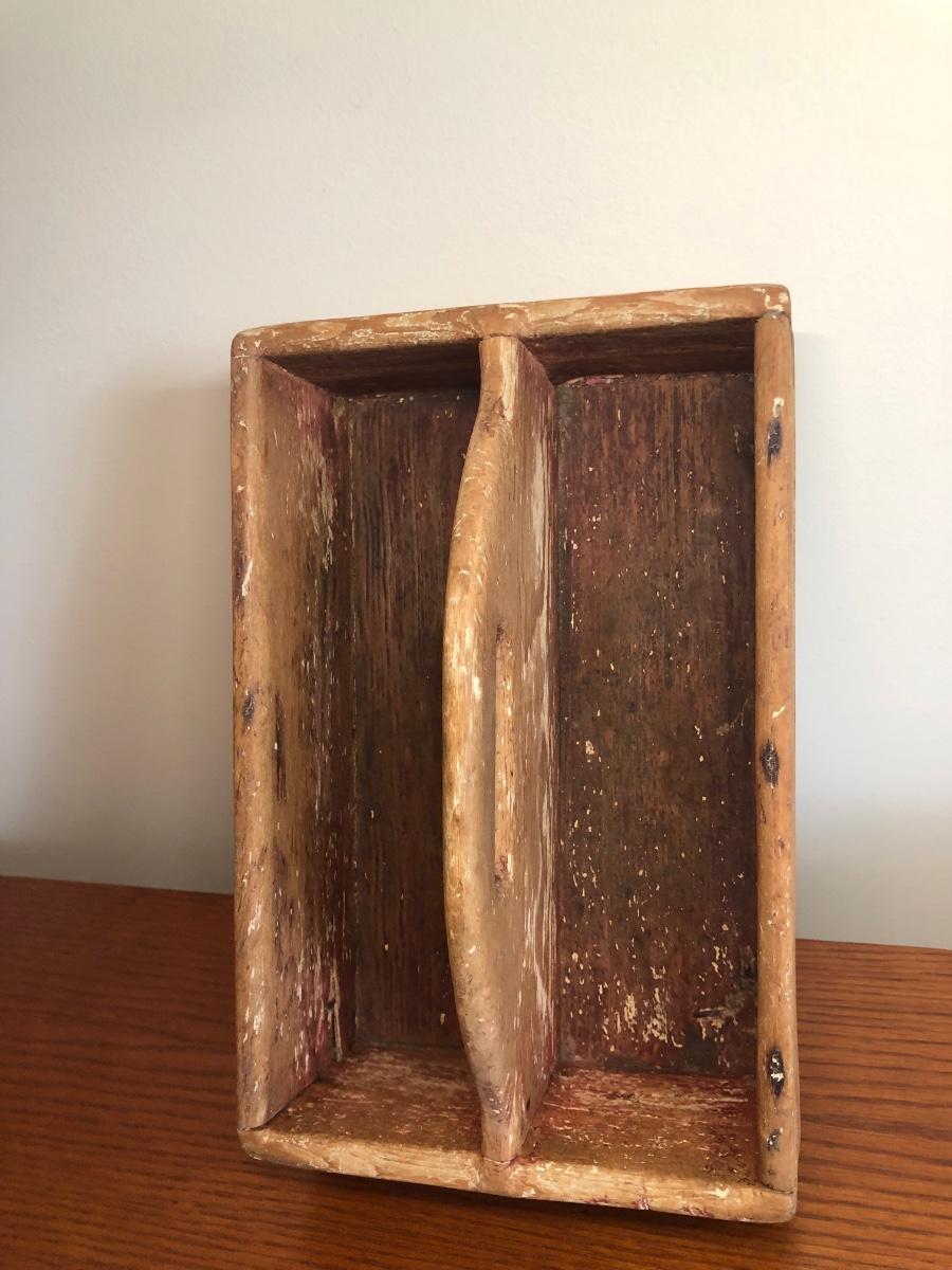 LOT74M: Handmade, Signed Pottery Bowl & Vintage Primitive Caddy