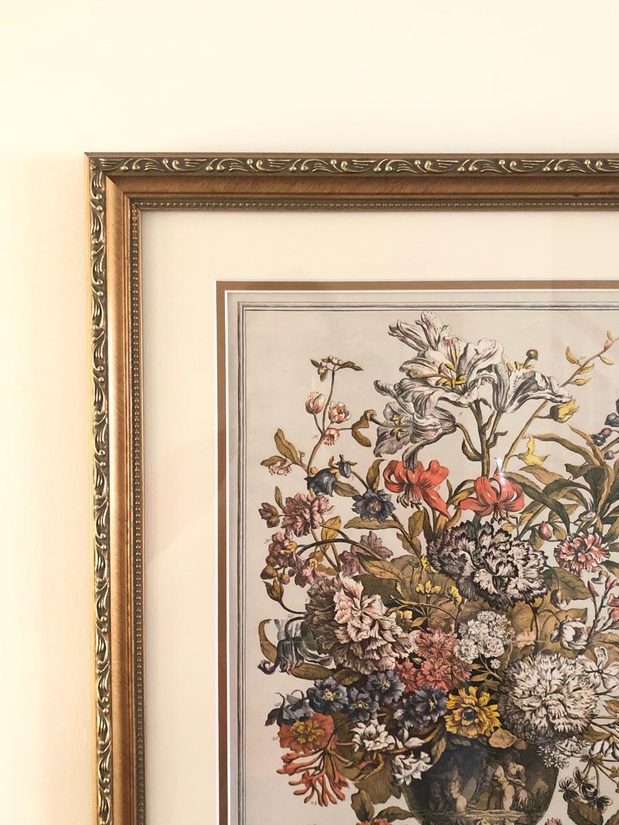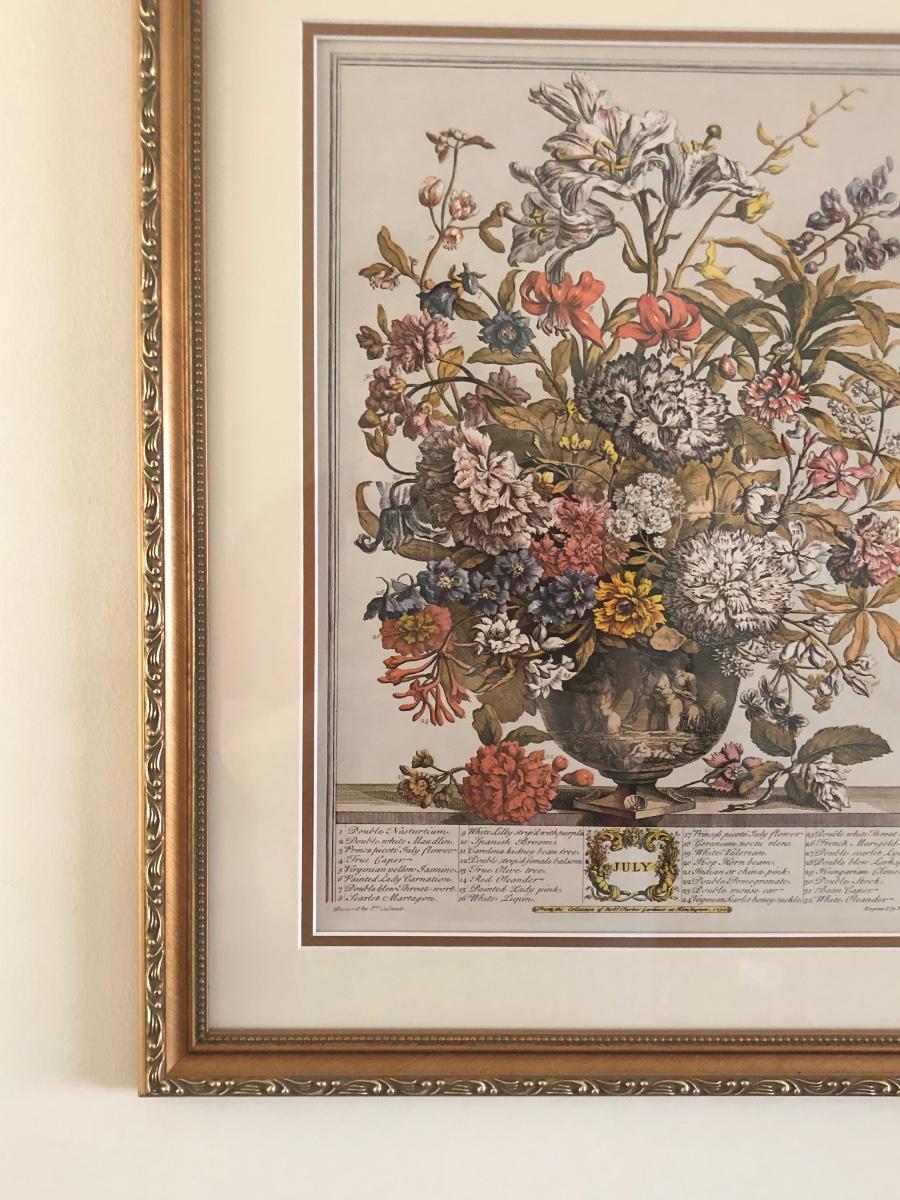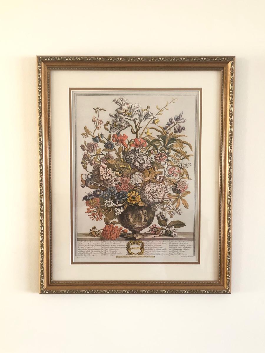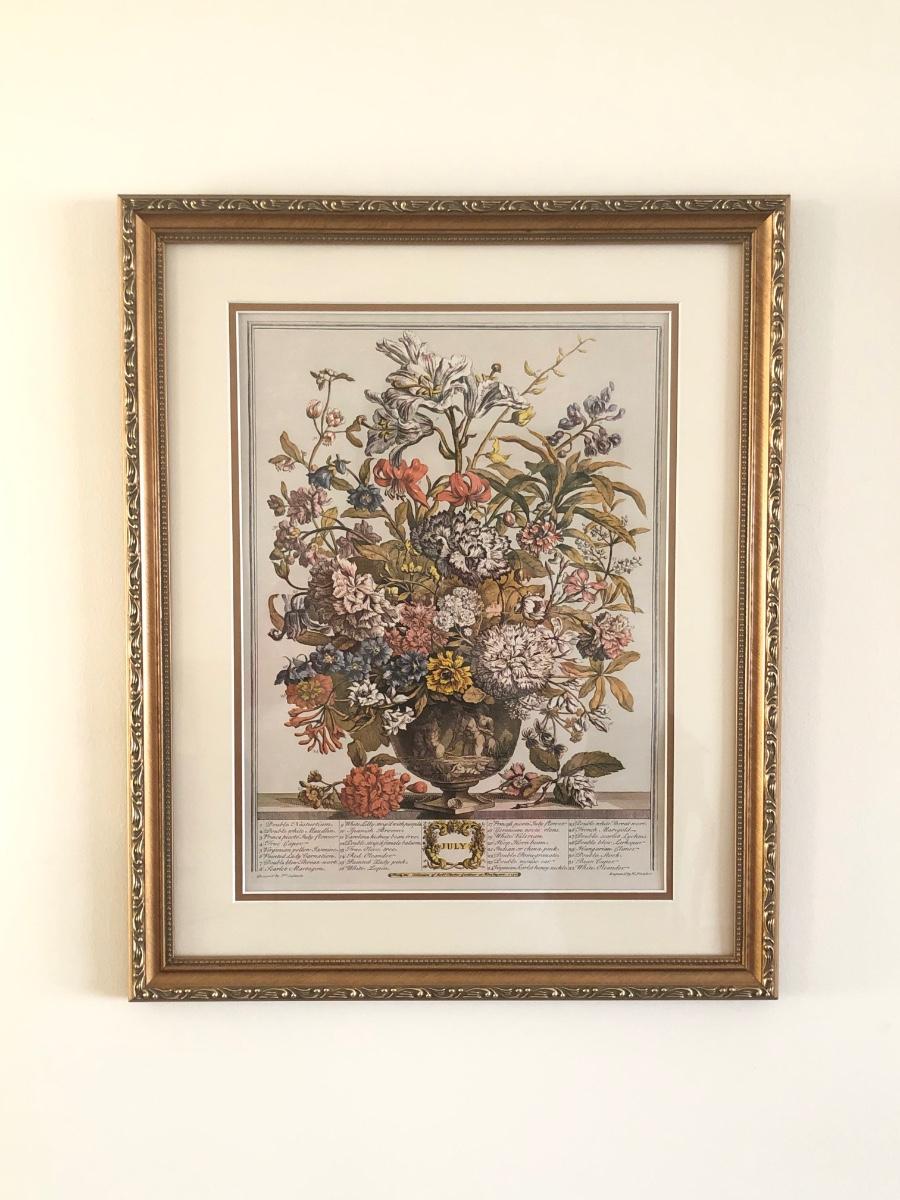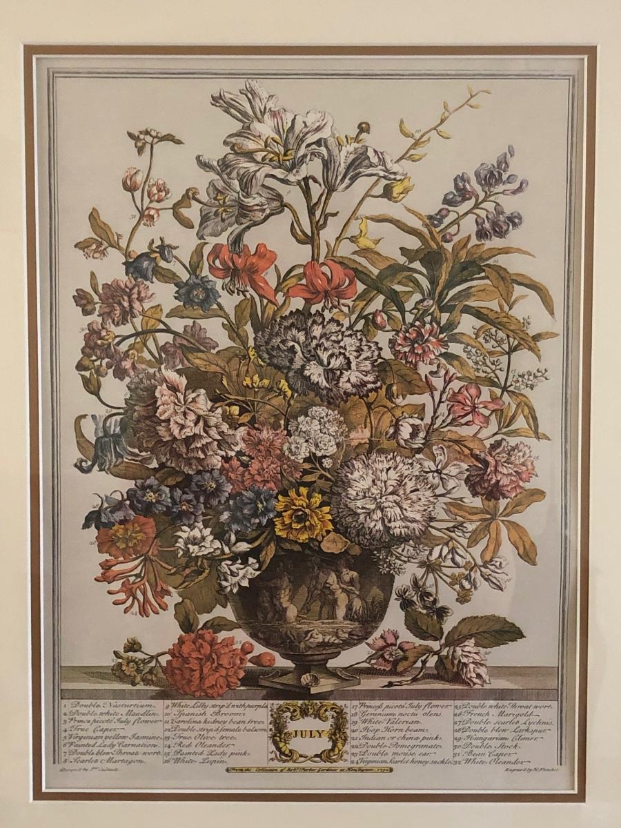 This print is matted and framed. Originally by Robert Furber as part of his "12 Months of Flowers" series. Frame is included.