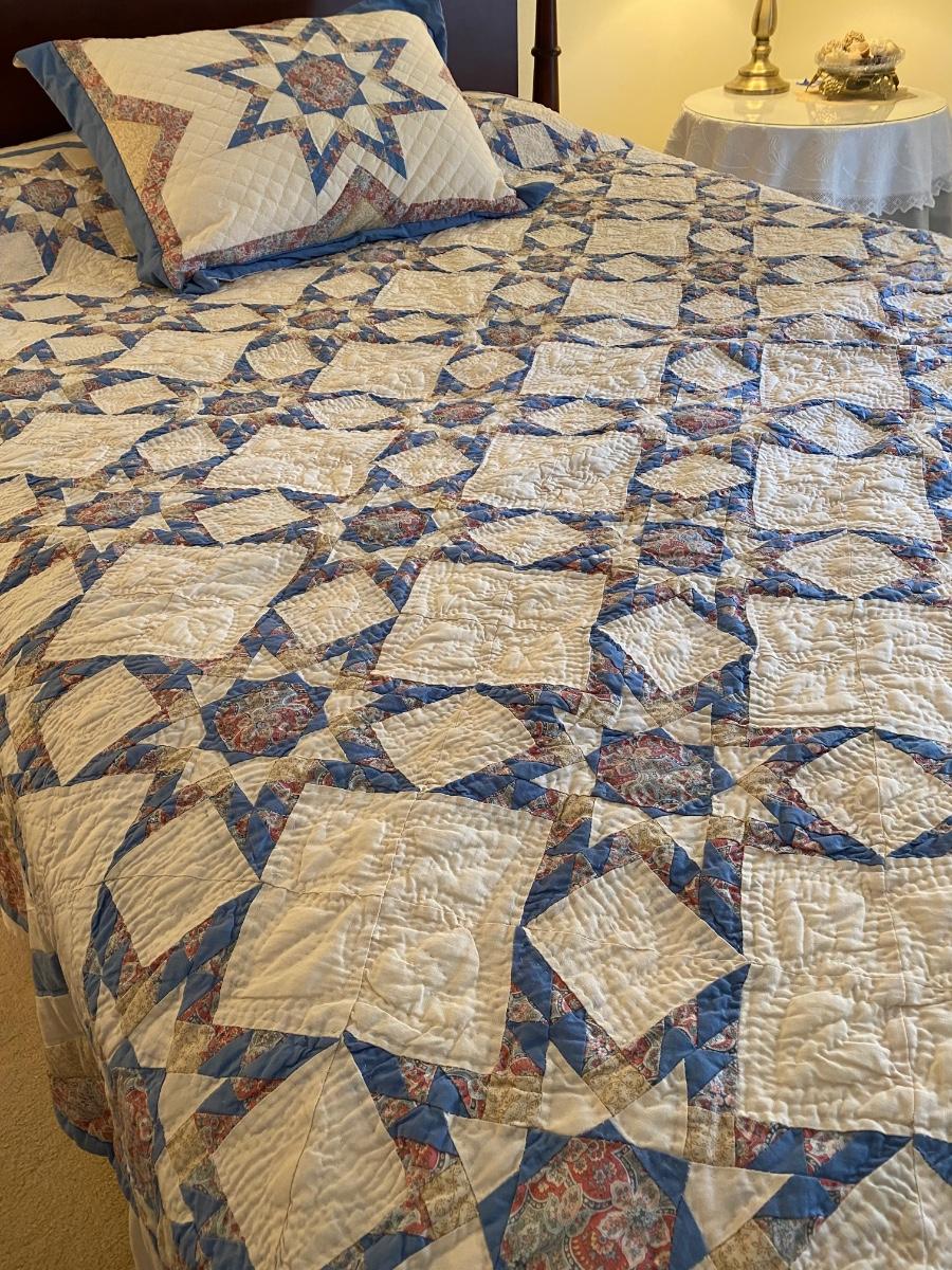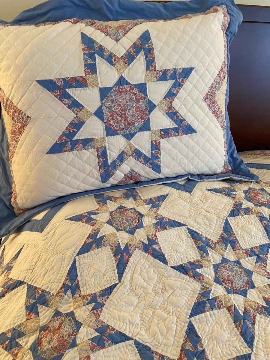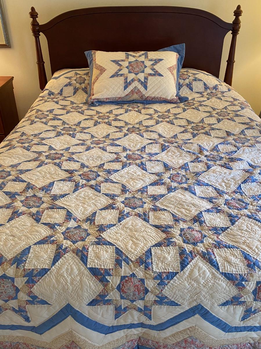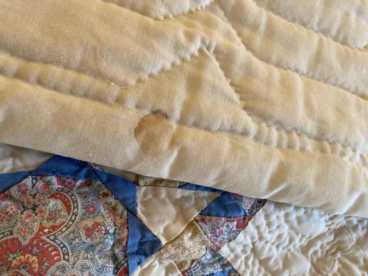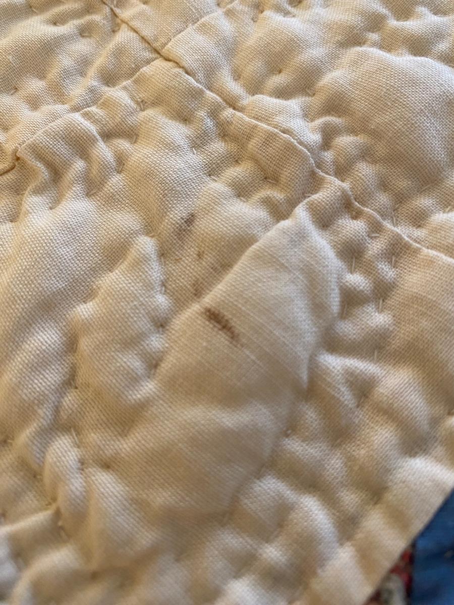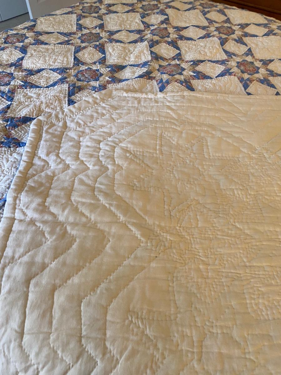Quilt is in used pre- loved condition. Quilt has marks as pictured. Please see all pictures as they are the best representation of the items. The pictures show condition, measurements if taken, and what is included in the lot. Due to the large amount that we photograph and the time frame, we are not always able to take measurements. All items unless noted, are pre-owned and have been used. If you purchased furniture, you must bring help. We do not allow one person to carry large furniture out on their own. Bring help, tools and a truck for the safety of our client’s homes, and your personal safety. Any damages that result to the property including walls, and floors due to moving of the furniture will be charged to the buyer. Company policy. Thank you.