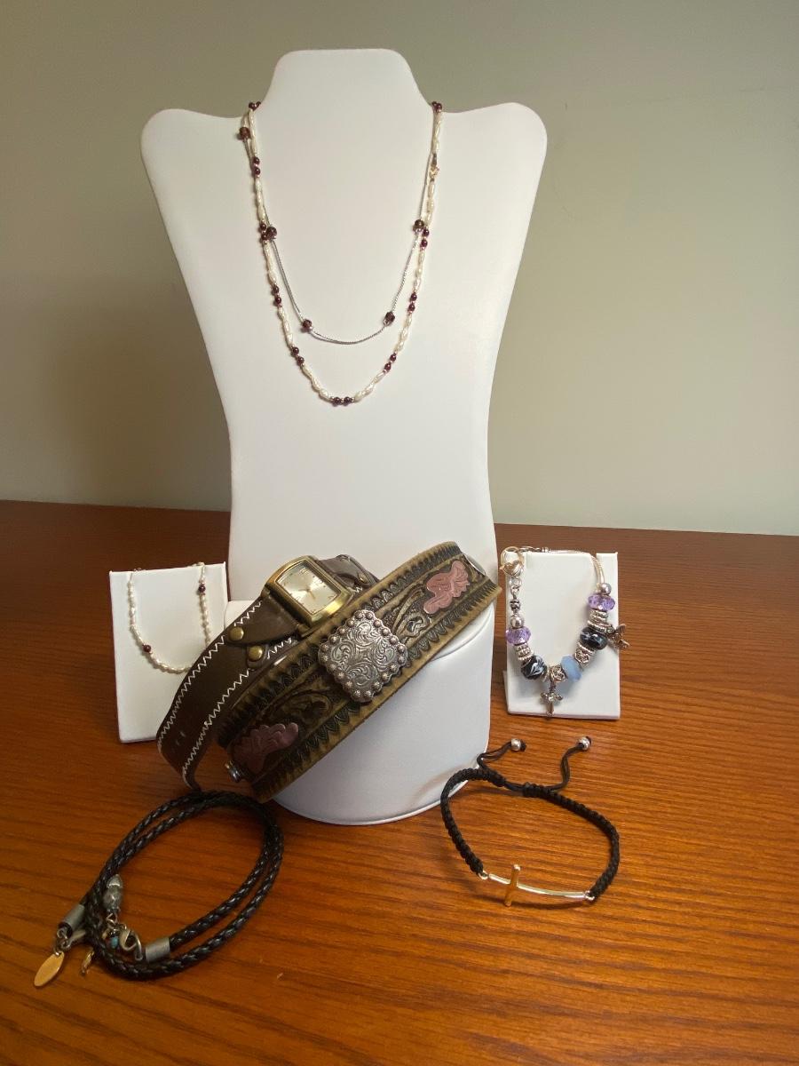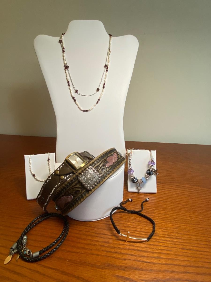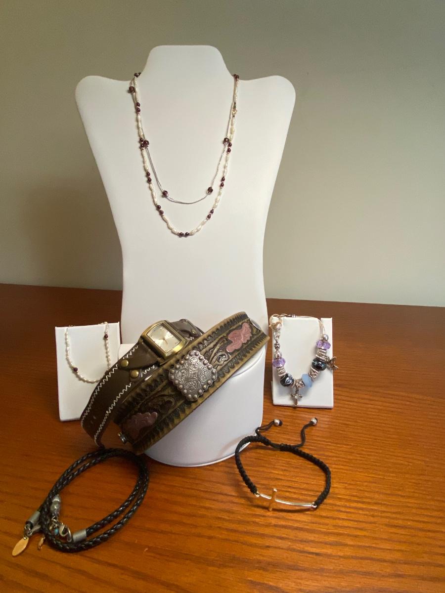Leather cuff bracelet & watch, Charm bracelet, matching bracelet & necklace and more. Please see all pictures as they are the best representation of the items. The pictures show condition, measurements if taken, and what is included in the lot. Due to the large amount that we photograph and the time frame, we are not always able to take measurements. All items unless noted, are pre-owned and have been used. If you purchased furniture, you must bring help. We do not allow one person to carry large furniture out on their own. Bring help, tools and a truck for the safety of our client’s homes, and your personal safety. Any damages that result to the property including walls, and floors due to moving of the furniture will be charged to the buyer. Company policy. Thank you.