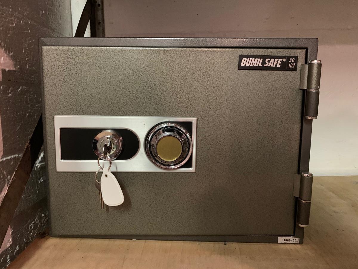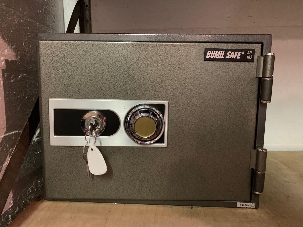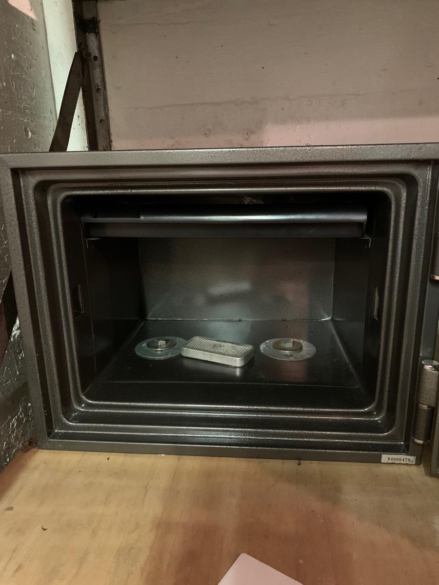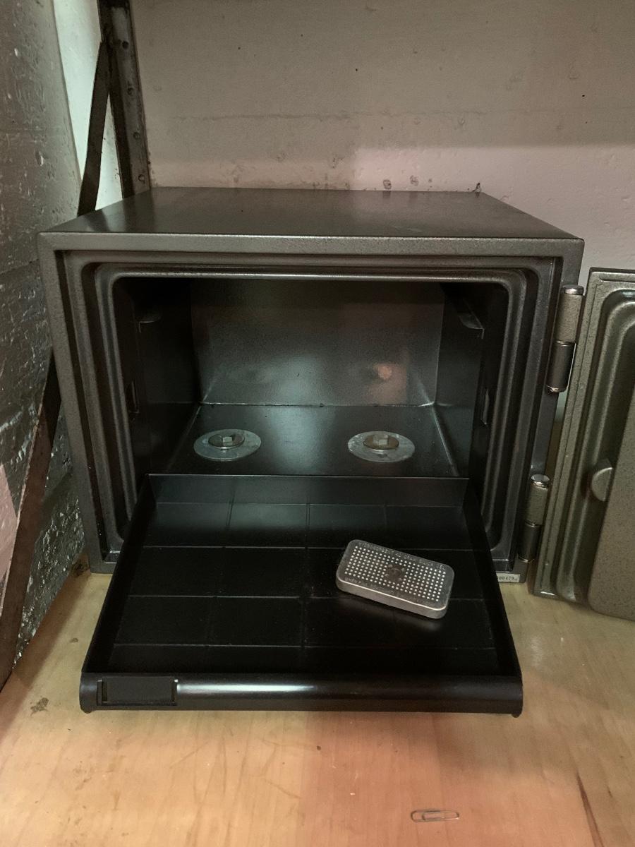 Safe is located in the basement and will have to be carried up steps. It has been unbolted from the floor.