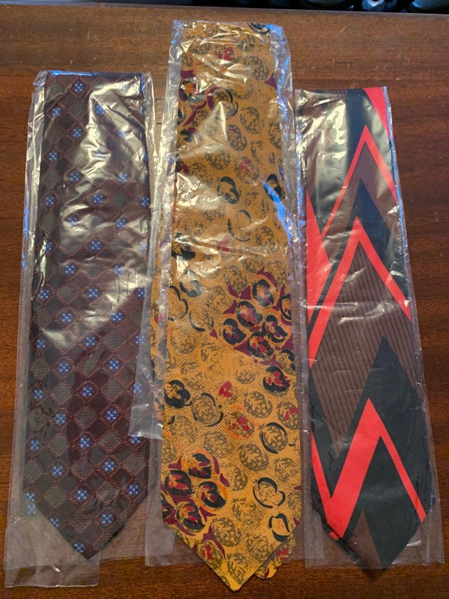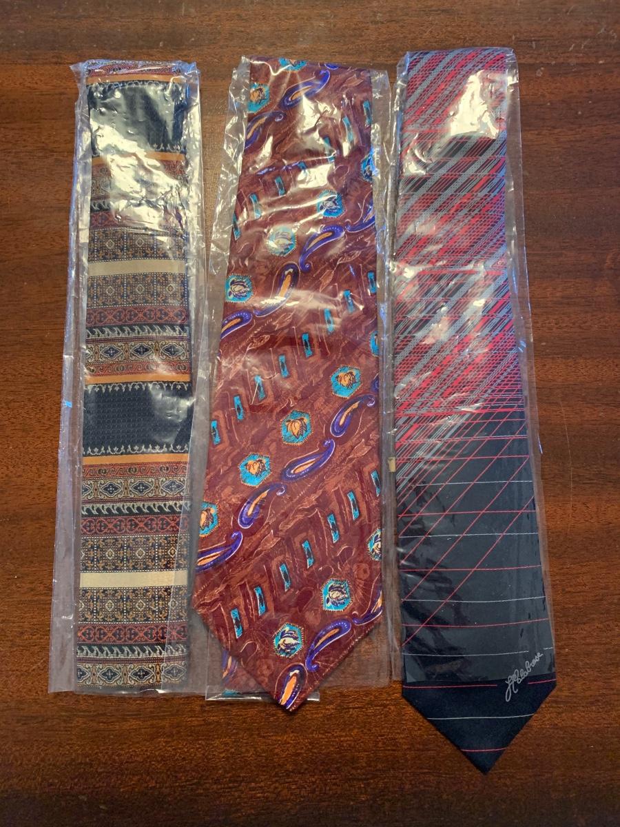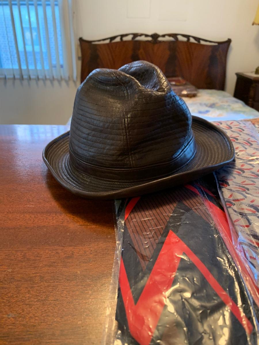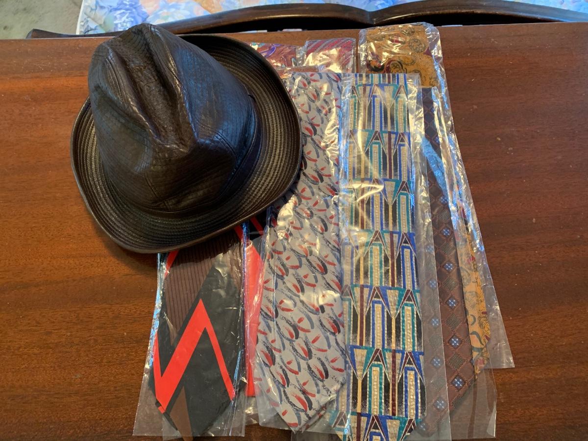 Ties appear to be unworn. Hat is a small size.