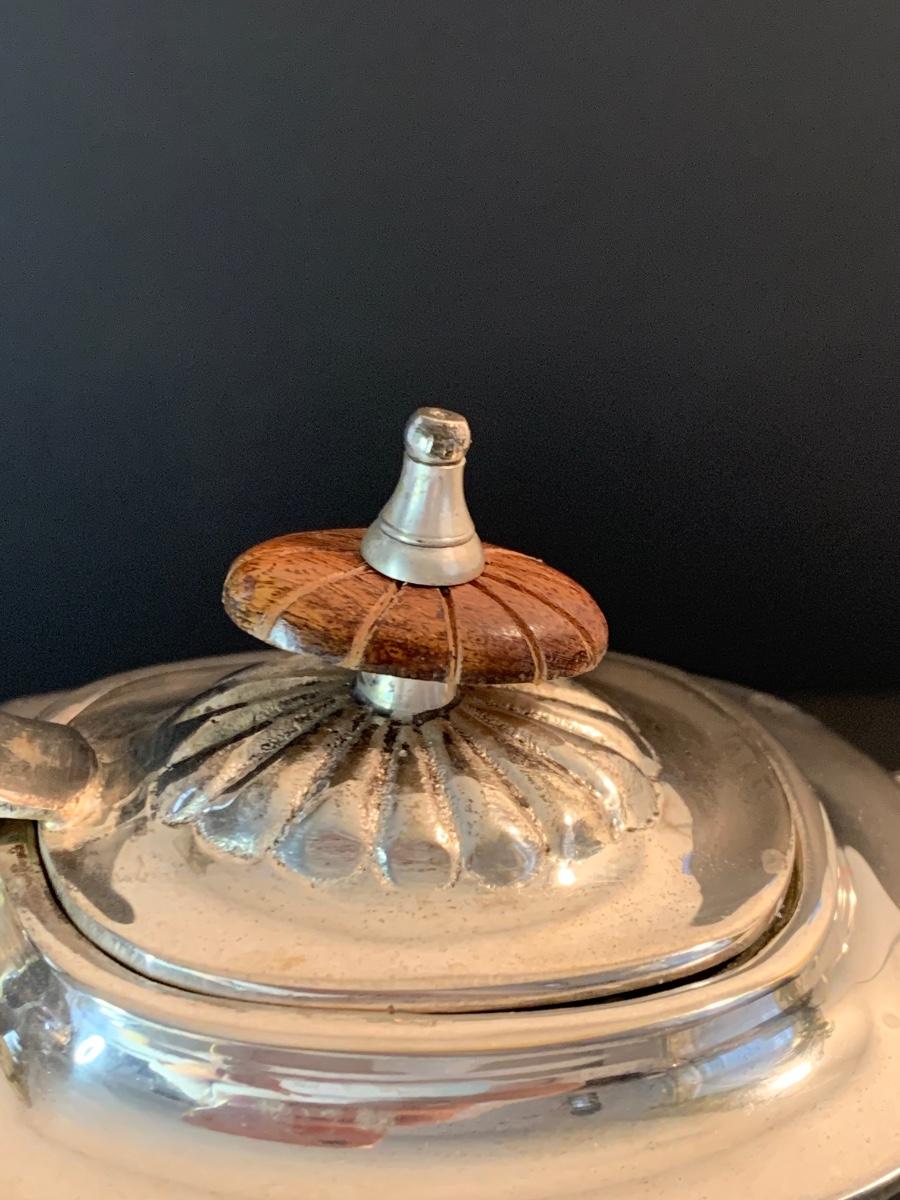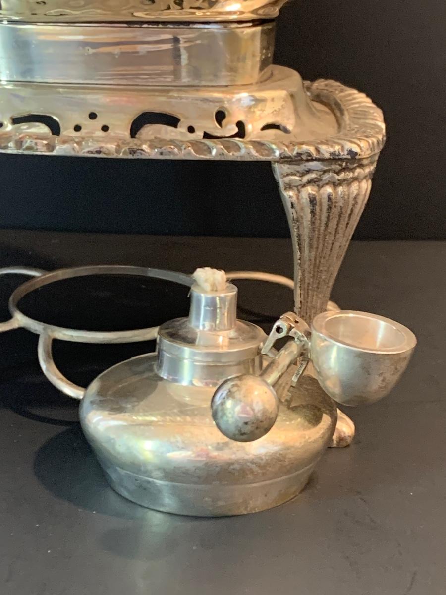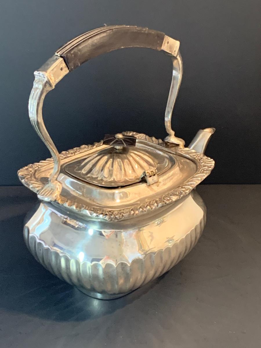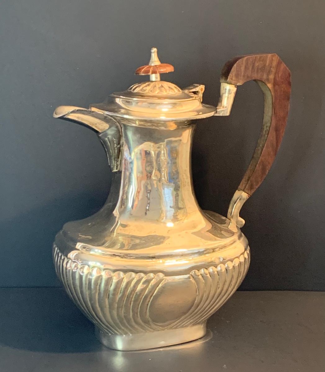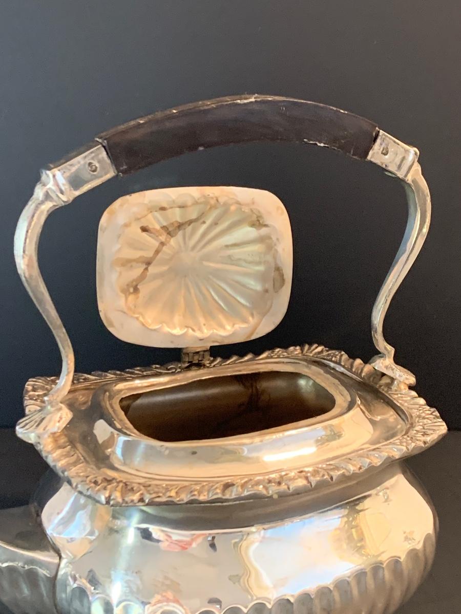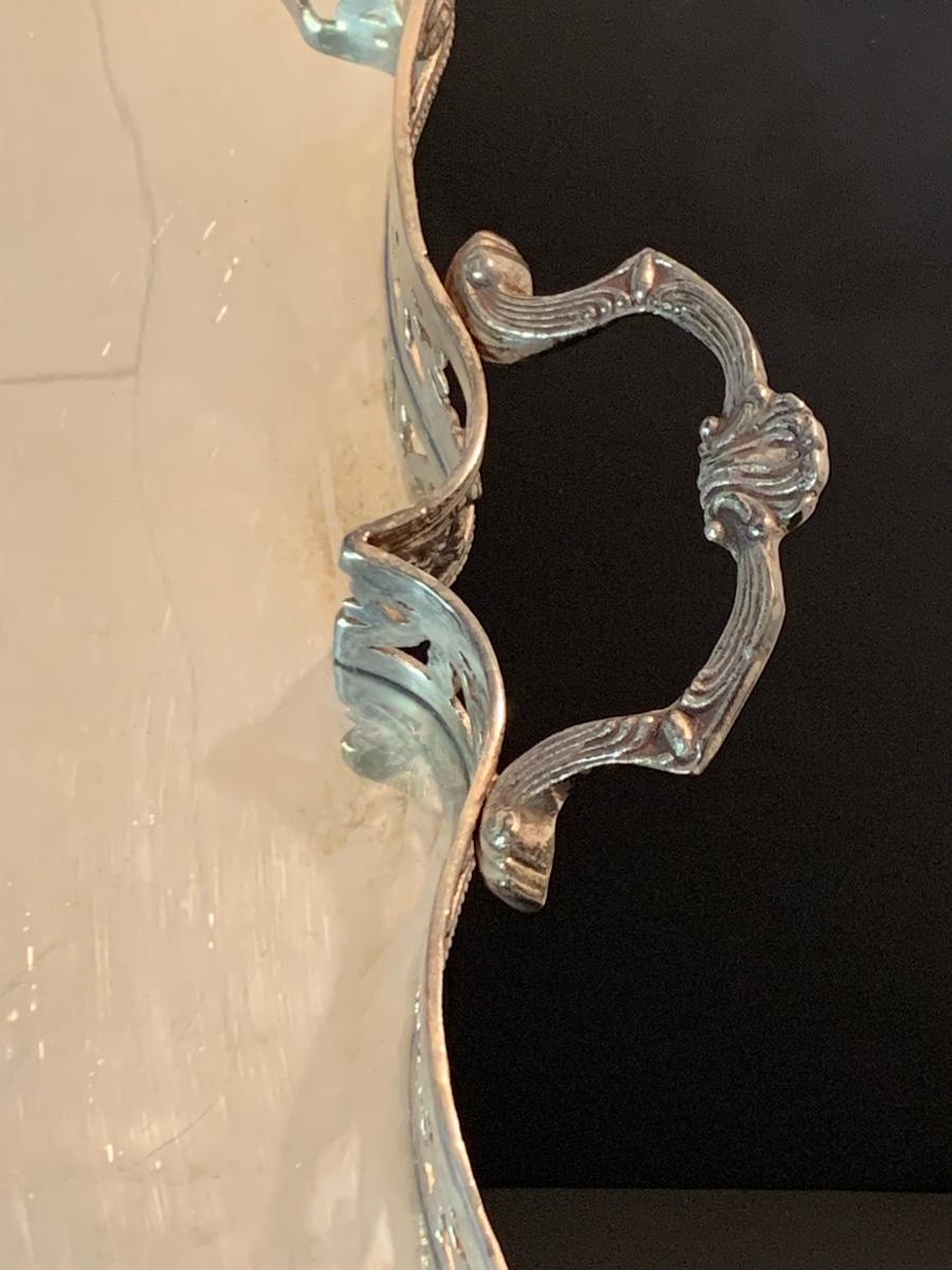 Absolutely stunning silver plate tray, teapot, coffee pot, sugar bowl and creamers. This is not a matching set.
