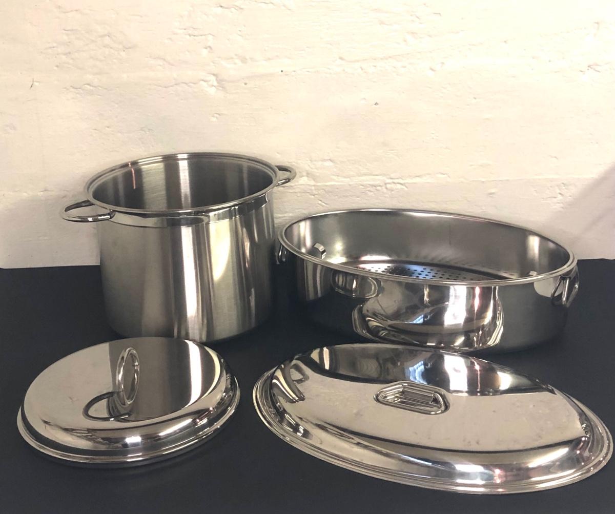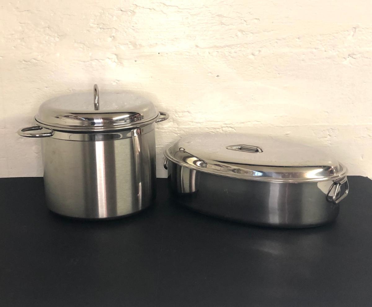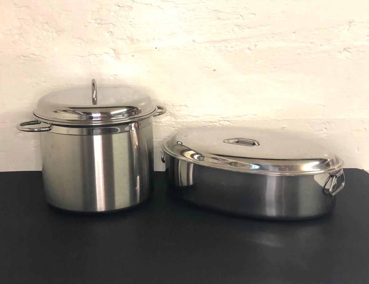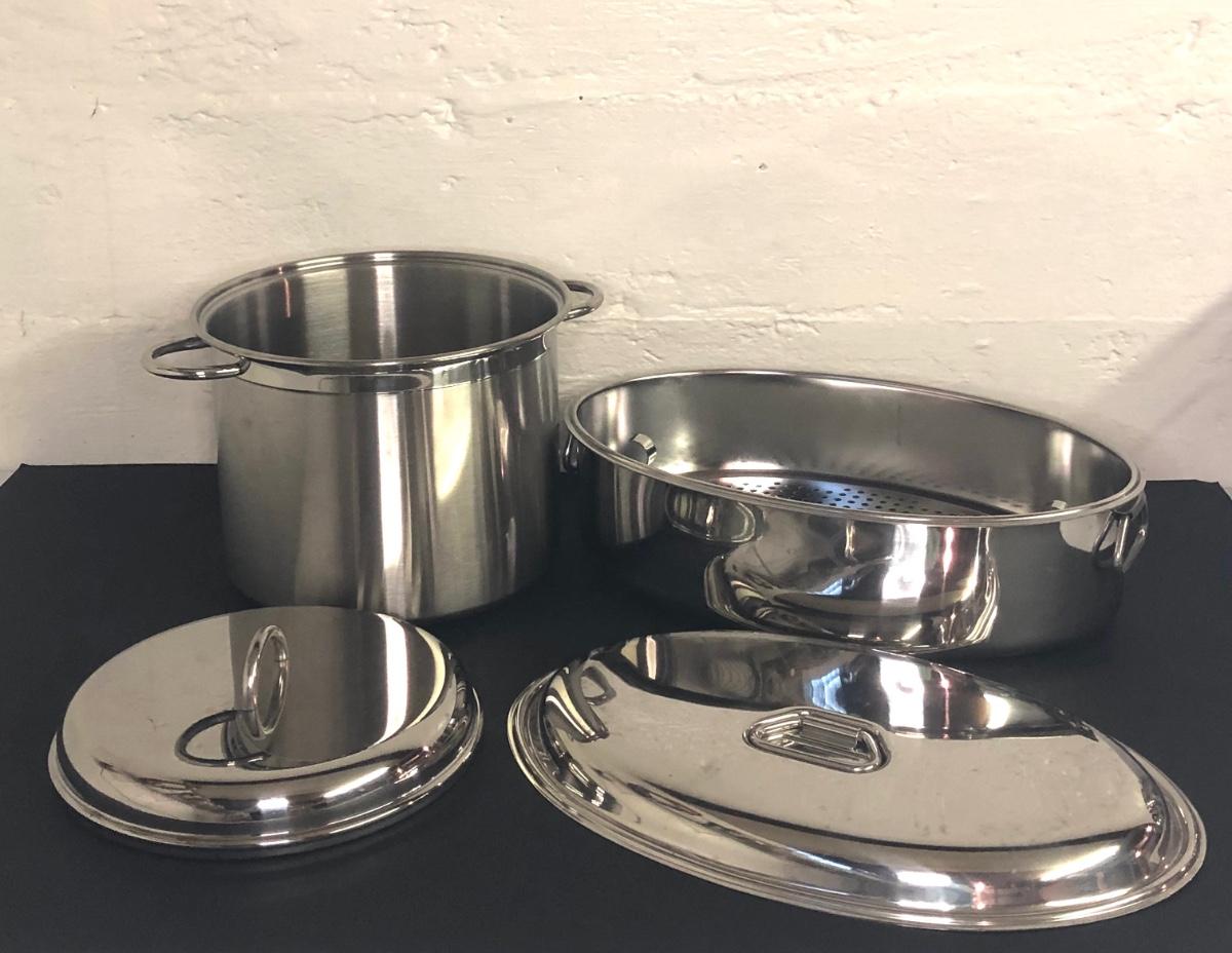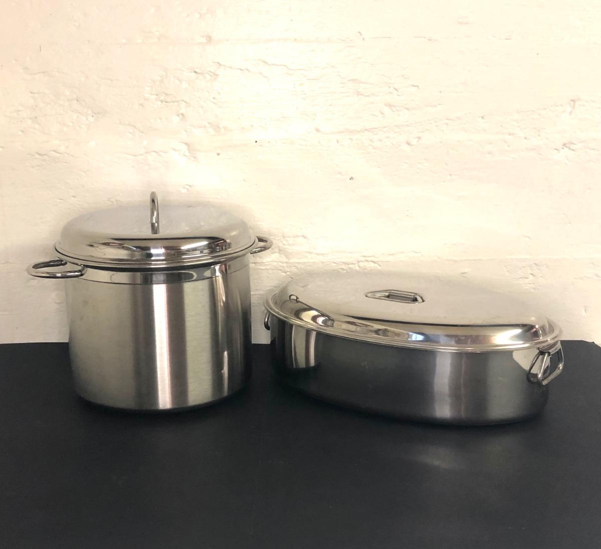 LOT34M: Vintage ICM Inox Stainless Steel Pot & Oval Pan