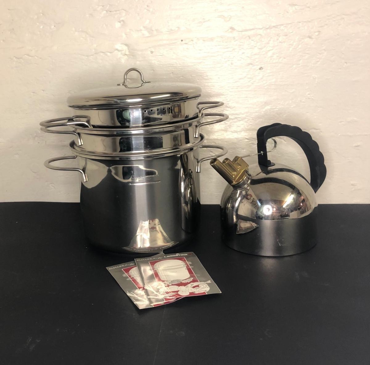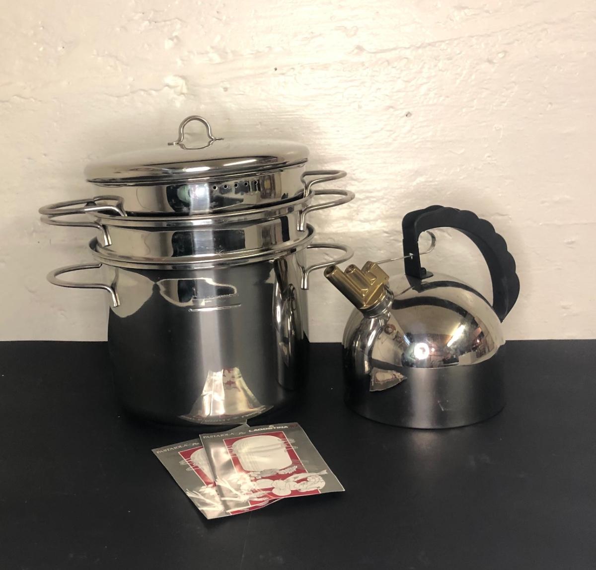 LOT35M: Pastaiola Plus Pots & Alessi Whistling Tea Kettle